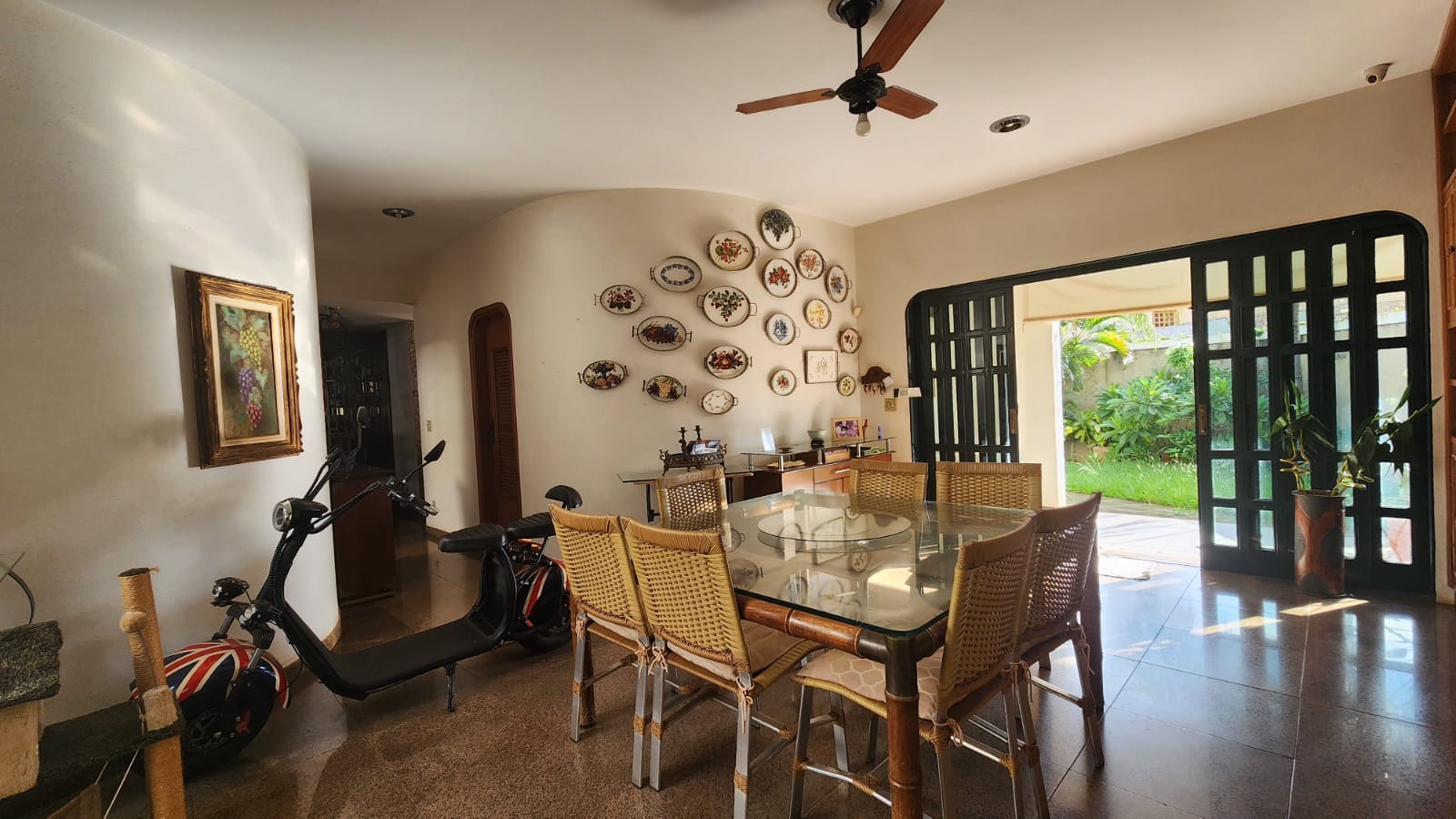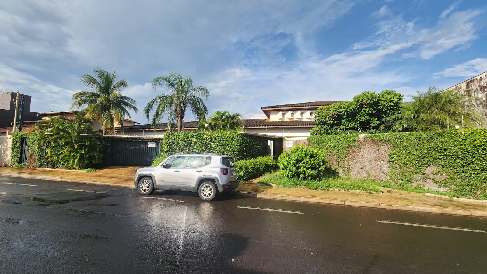 Parte Externa: Churrasqueira c/ varanda ampla, lavanderia, despejo, piscina, sauna, chuveirão, bar na área de lazer, garagem 05 carros, portão eletrônico, piso granito na entrada.