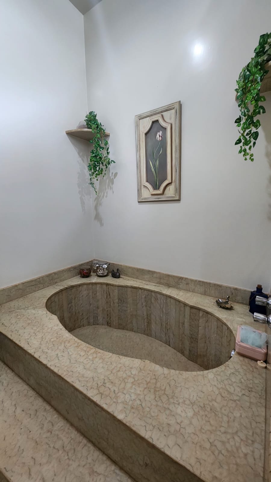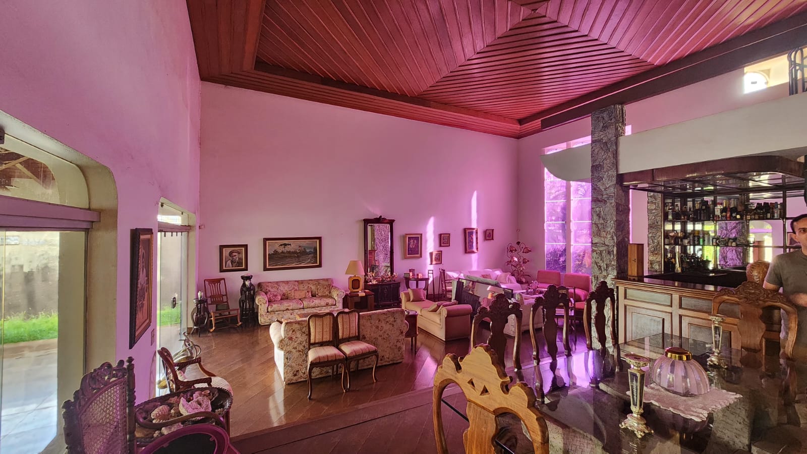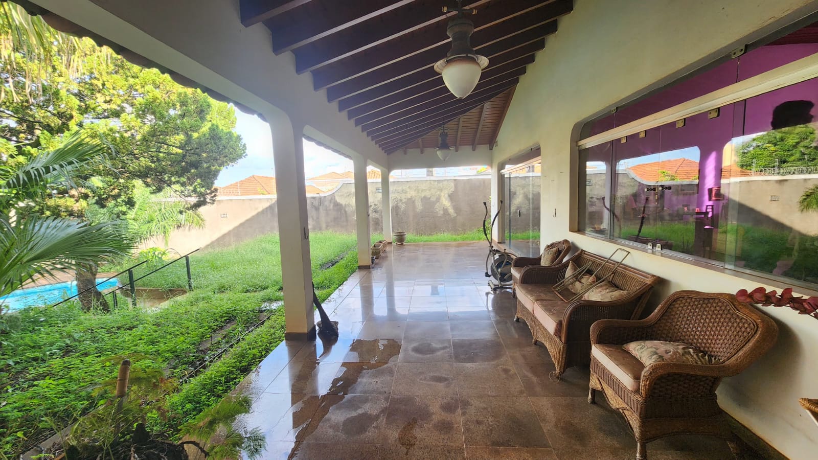Parte Externa: Churrasqueira c/ varanda ampla, lavanderia, despejo, piscina, sauna, chuveirão, bar na área de lazer, garagem 05 carros, portão eletrônico, piso granito na entrada.
