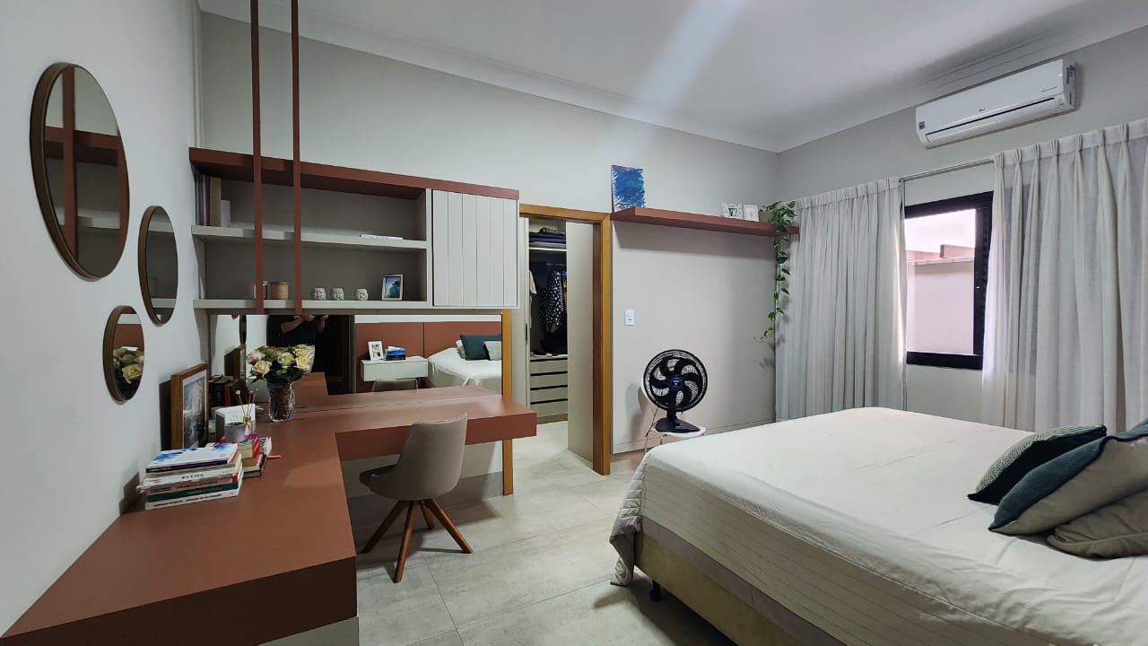 Imóvel residencial no condomínio Campos do Conde, disponível para venda, contando com: 01 suíte c/ closet c/ ar, 02 suítes c/ ar, haal de entrada, sala TV, cozinha ampla c/ ilha, armários cooktop, churrasqueira,01 wc social, área de lazer c/ piscina, área de serviço coberta, quintal c/ pedra, chuveirão, dispensa, laje, porcelanato, garagem.