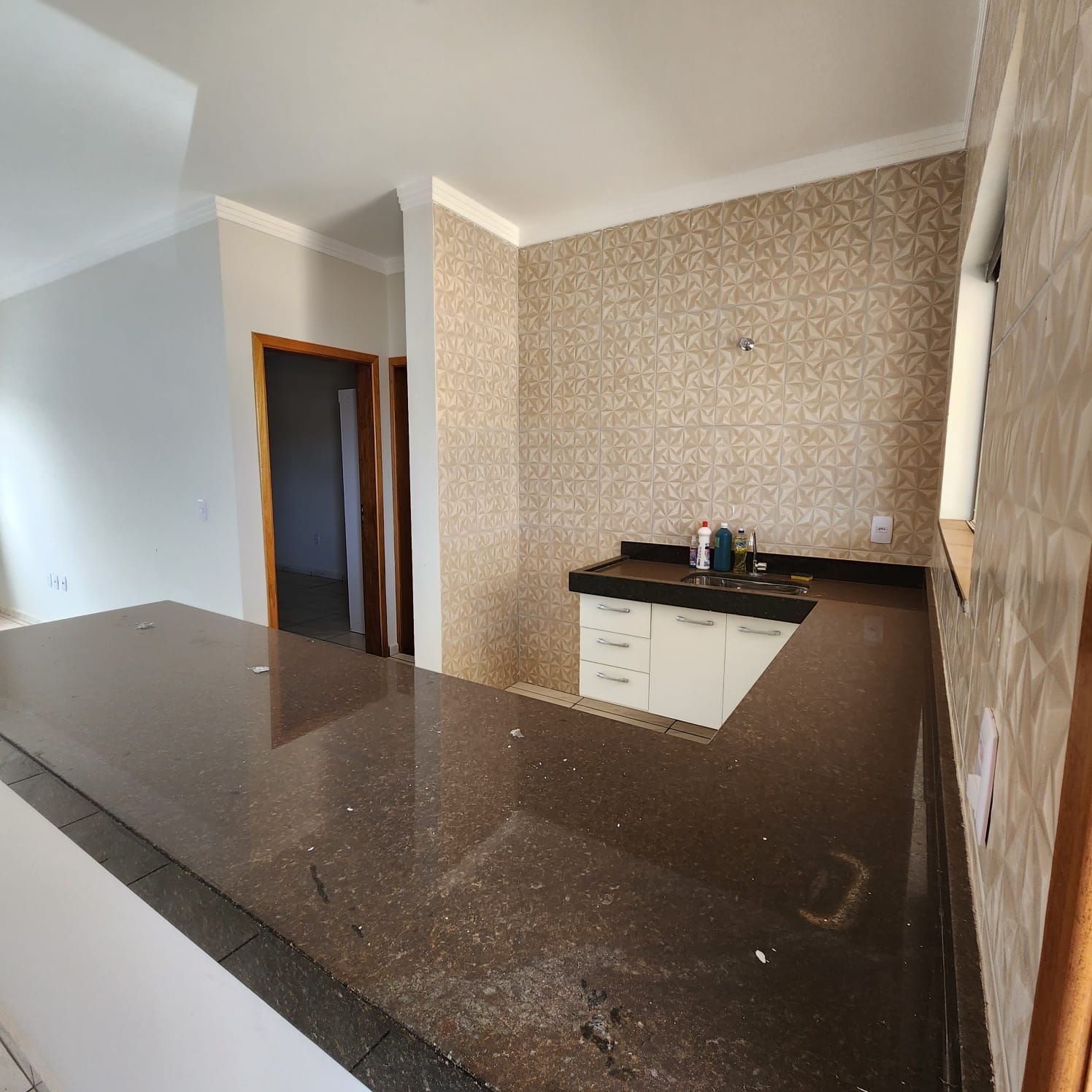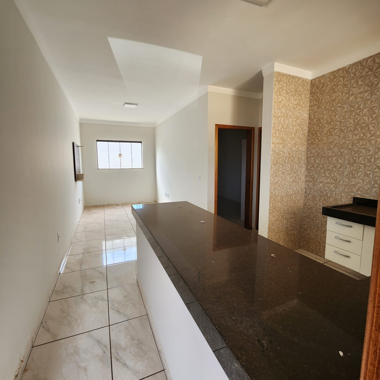 Descrição: 01 dormitório, 01 w.c. social, sala, cozinha com balcão, laje, porcelanato, garagem para 01 carro.