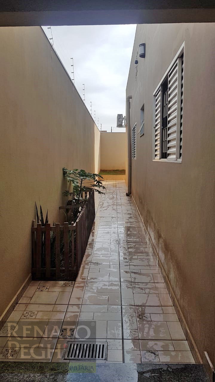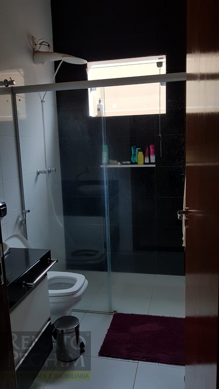 01 suíte com closet, 02 dormitórios, 01 wc social, sala conjugada, sala de TV, cozinha com planejados, área de serviço coberta, laje, porcelanato, portão eletrônico, cerca elétrica e garagem para 02 carros.