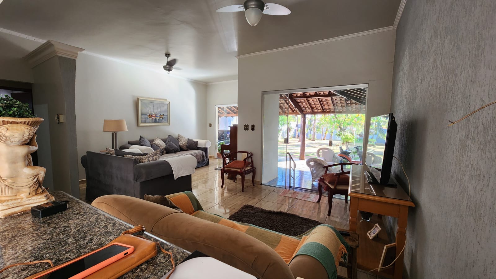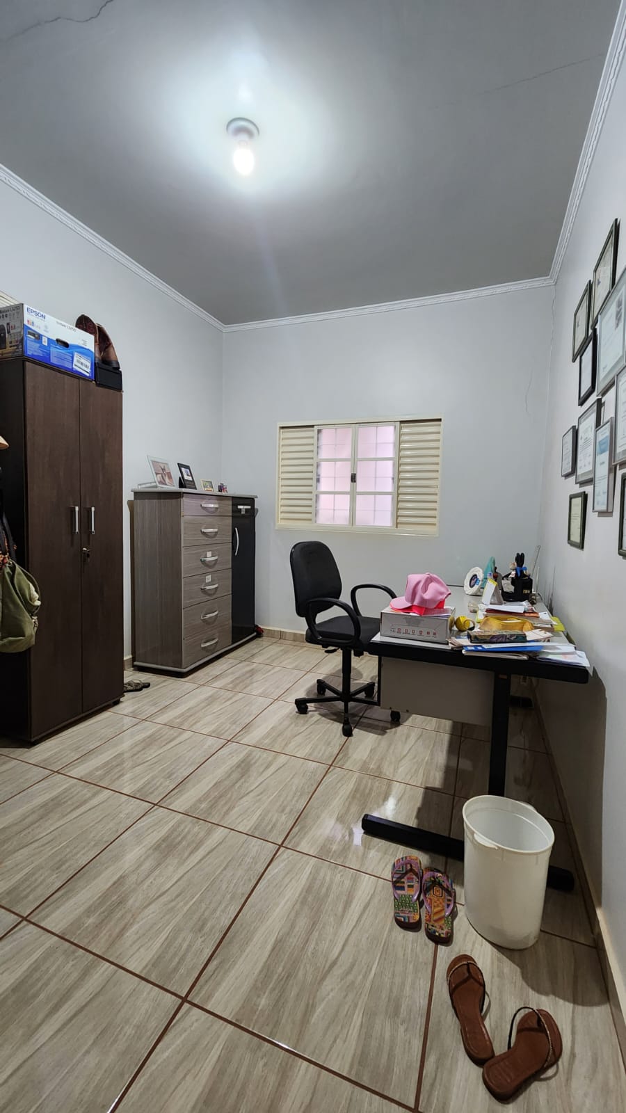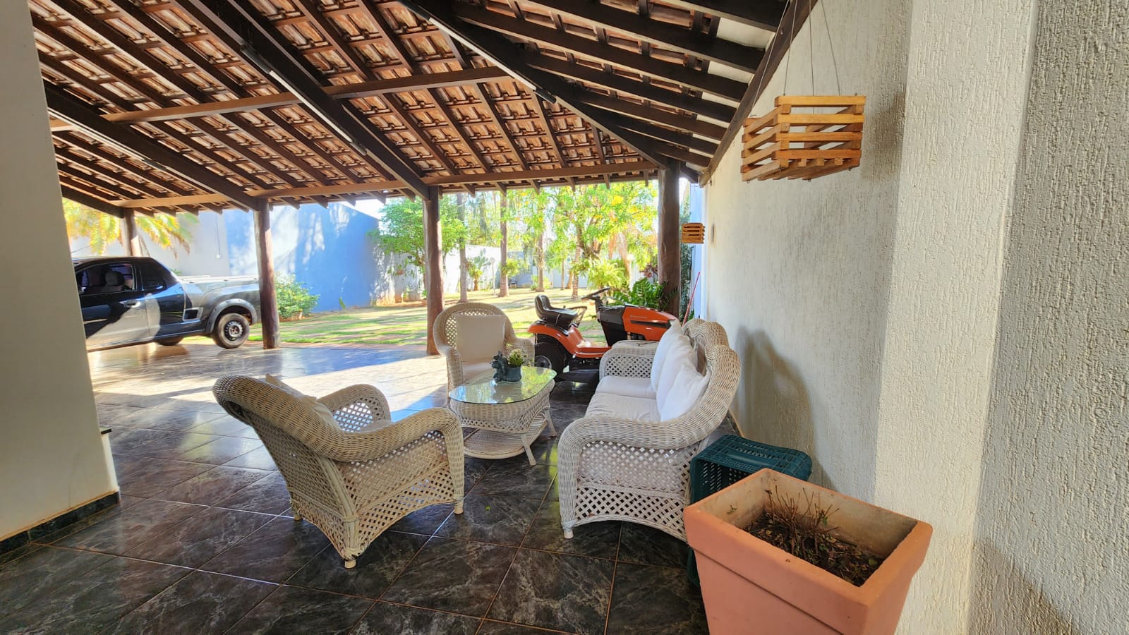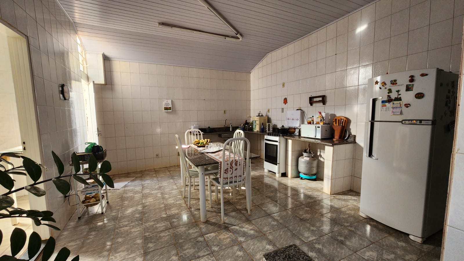 Descrição: 01 suíte c/ jardim, 02 dormitórios, 01 wc social c/ armários, sala de TV, sala de jantar, laje, piso frio, cozinha c/ piso e forro PVC, área de serviço coberta, corredor lateral, área lazer c/ piscina, churrasqueira, jardins, galpão, despejo.