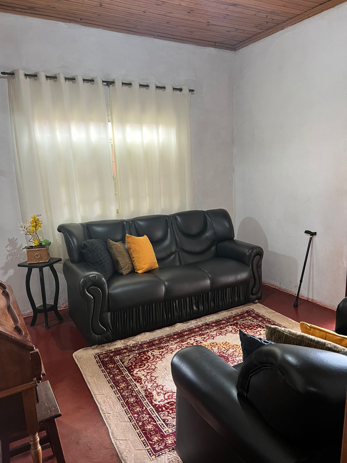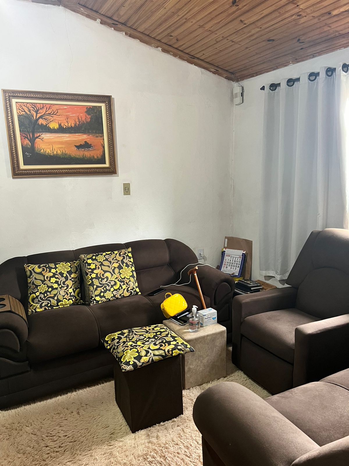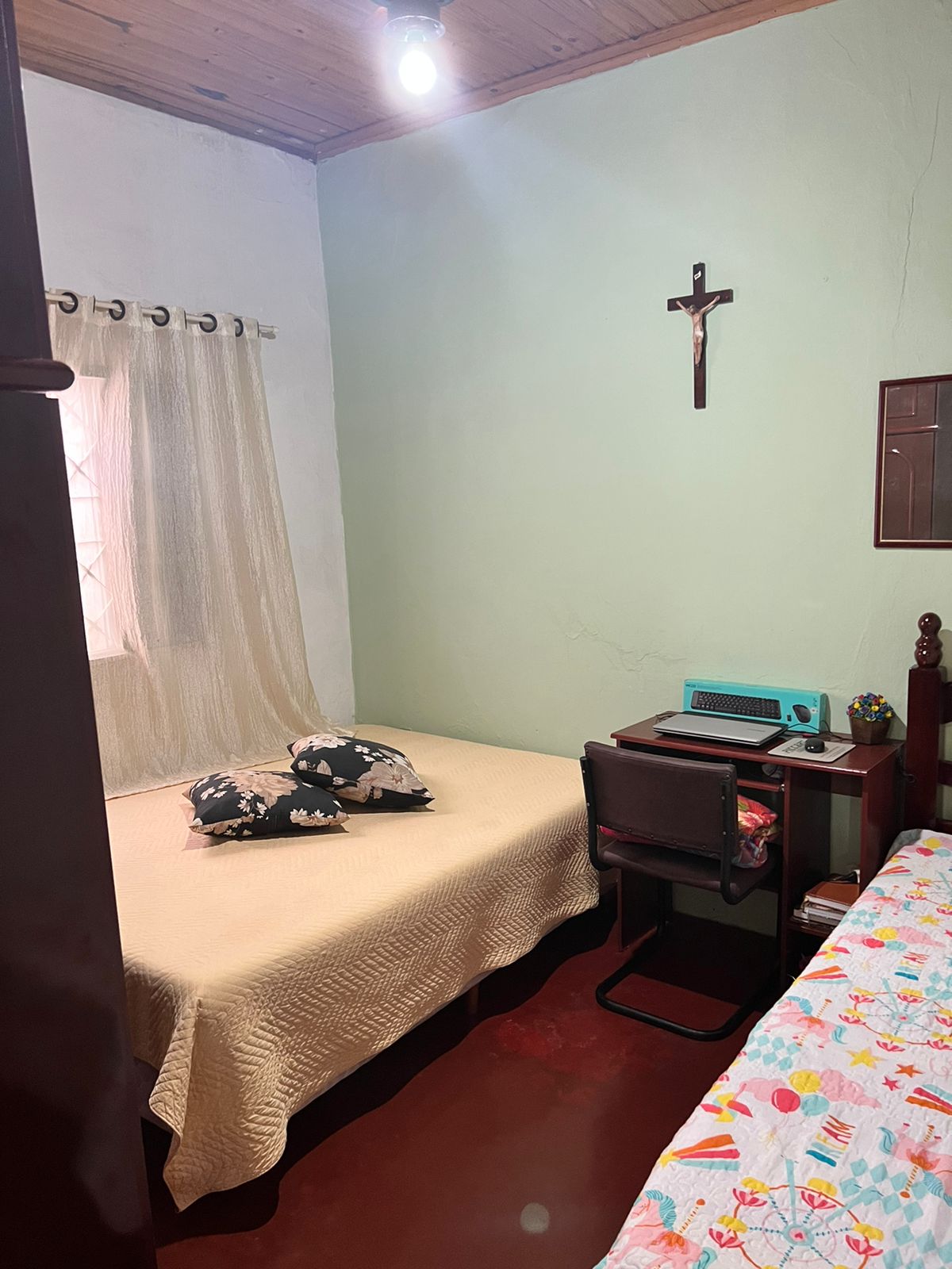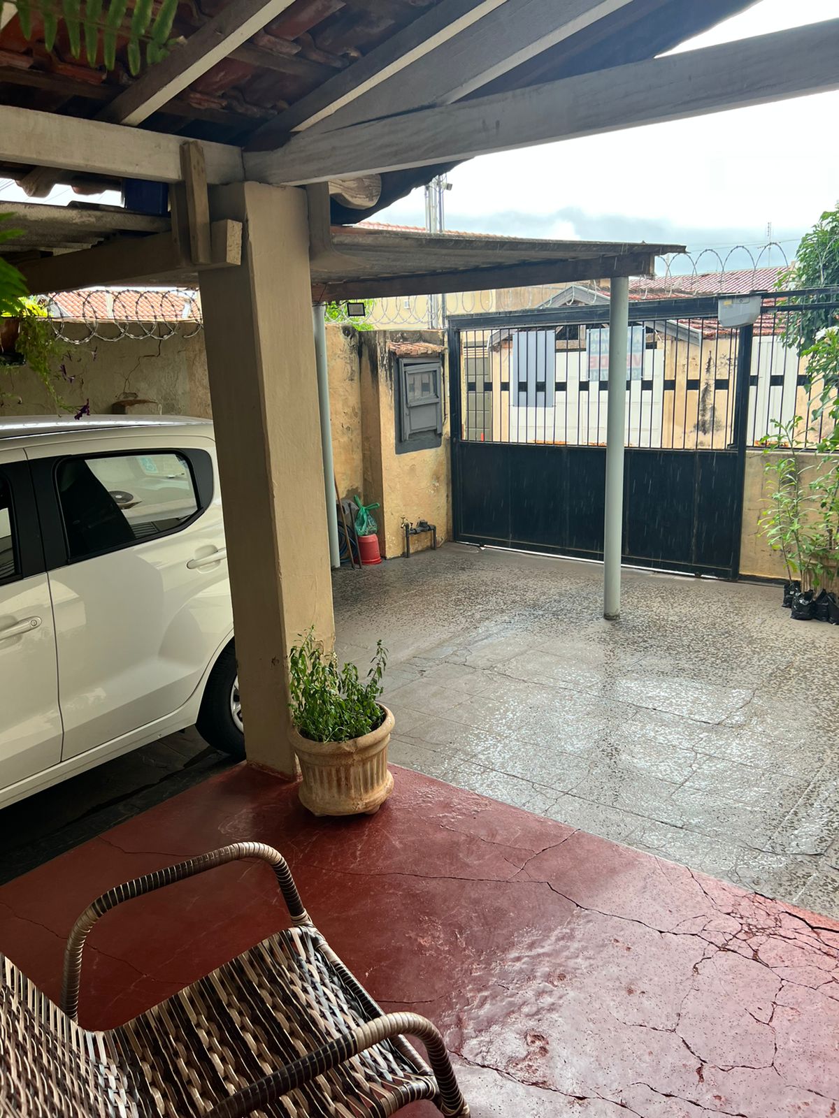 Descrição: 01 suite, 02 dormitórios, 01 wc social, sala, sala de visita, sala de tv, cozinha, forro de madeira, piso vermelão, area de serviço coberta e garagem pra 02 carros, concertina, 3 câmeras, sensores, portão eletrônico, ventilador de teto e antena parabólica.