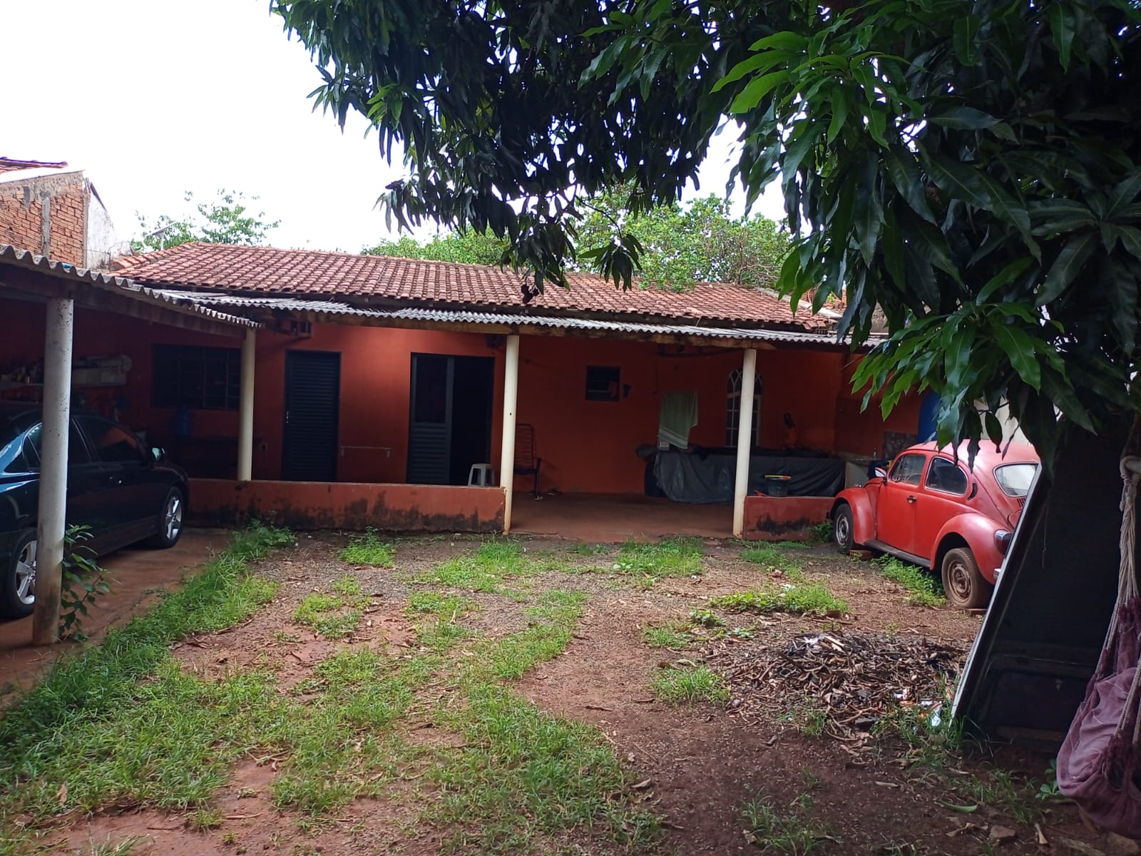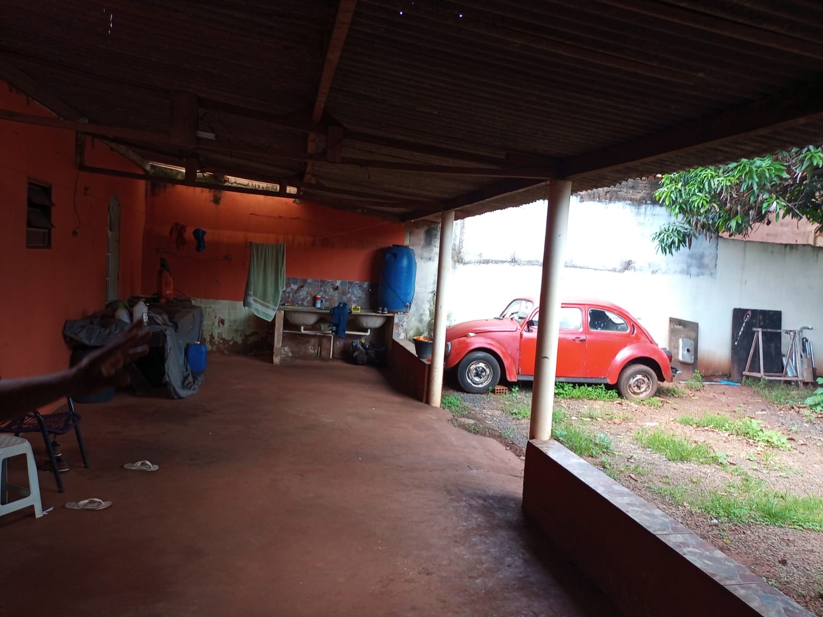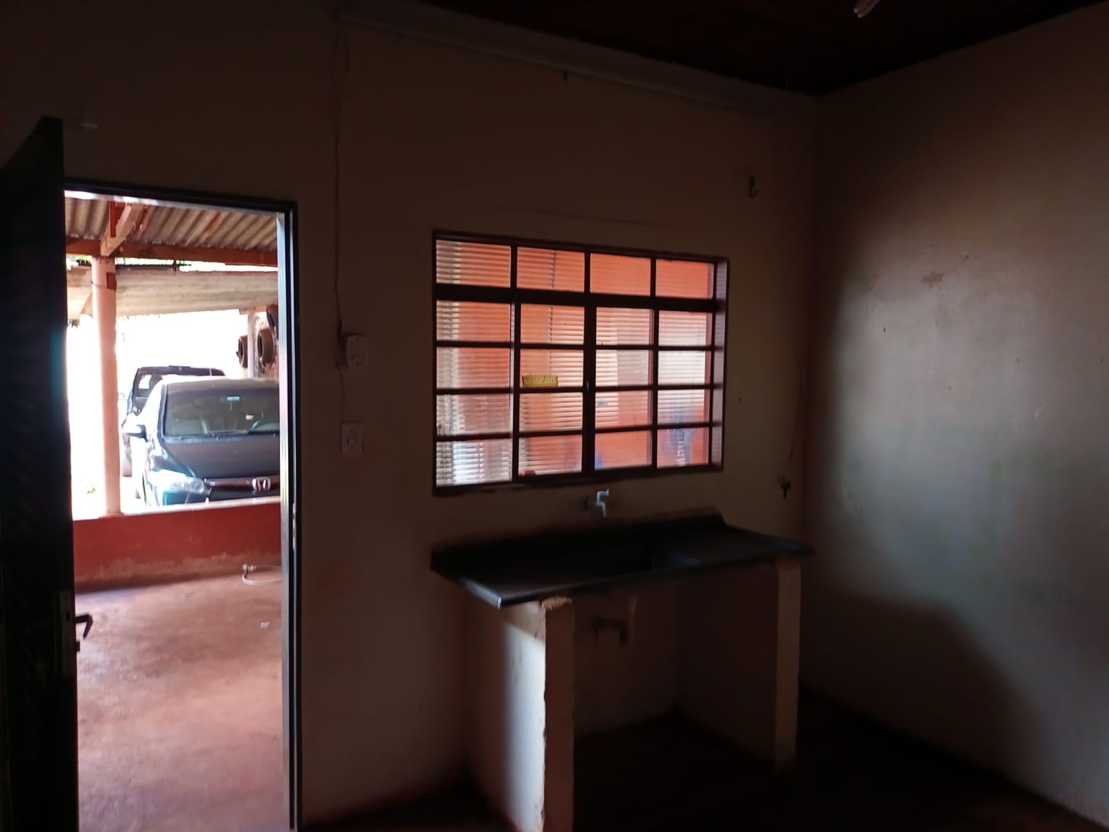 Fundos: 01 imóvel com sala, cozinha, w.c social, 01 dormitório, área de serviço coberta, quintal e garagem para vários carros.
