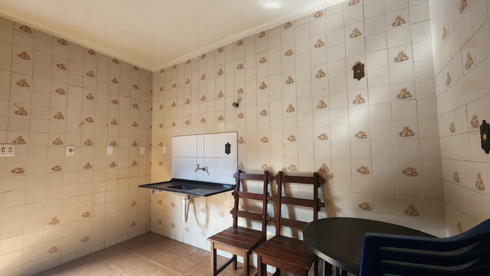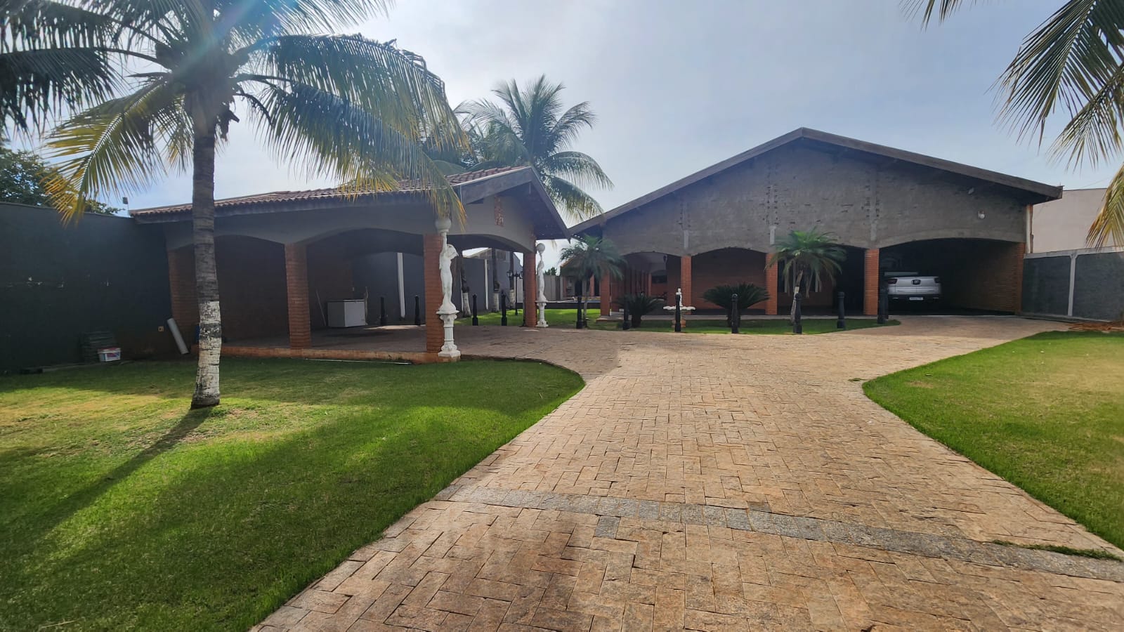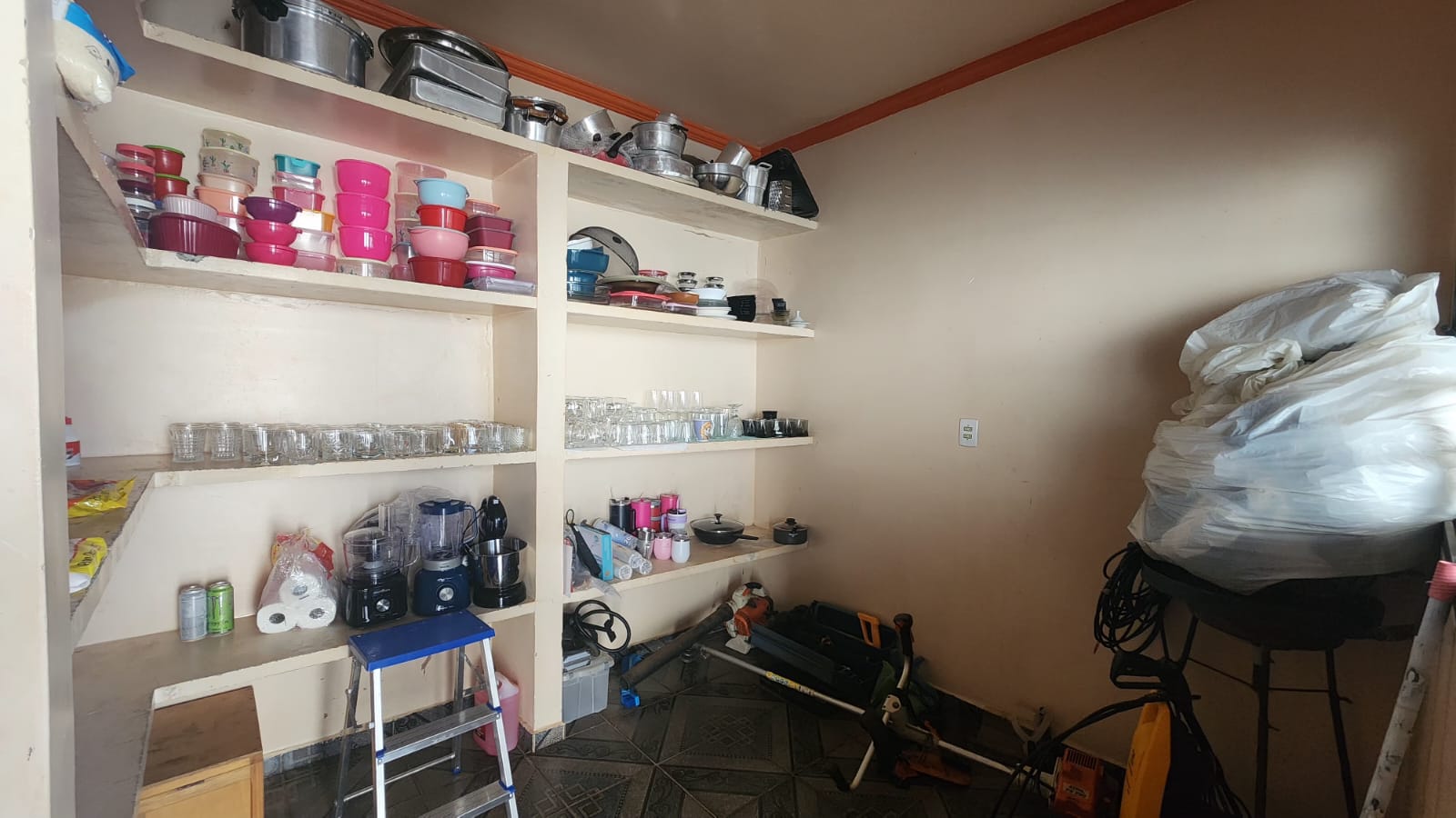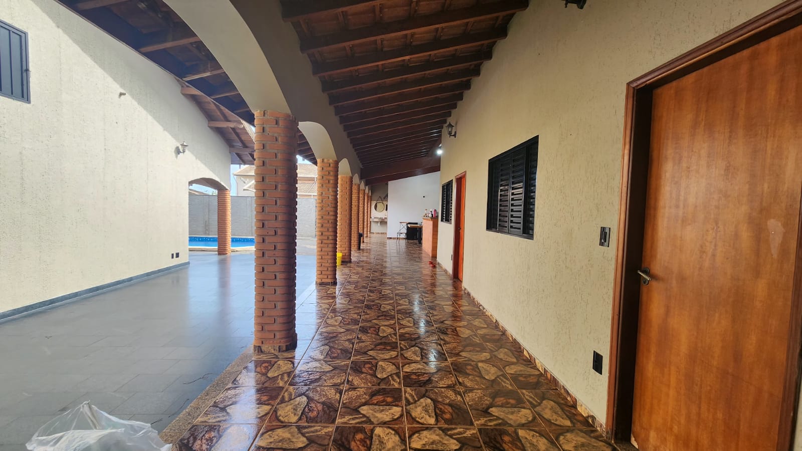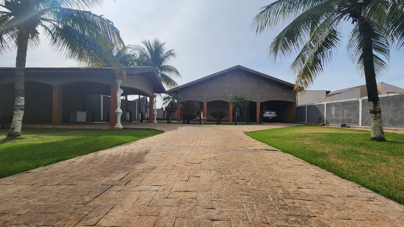 Fundos: 03 dormitórios, wc social, área de lazer c/ piscina, garagem para vários carros, piso frio, laje.