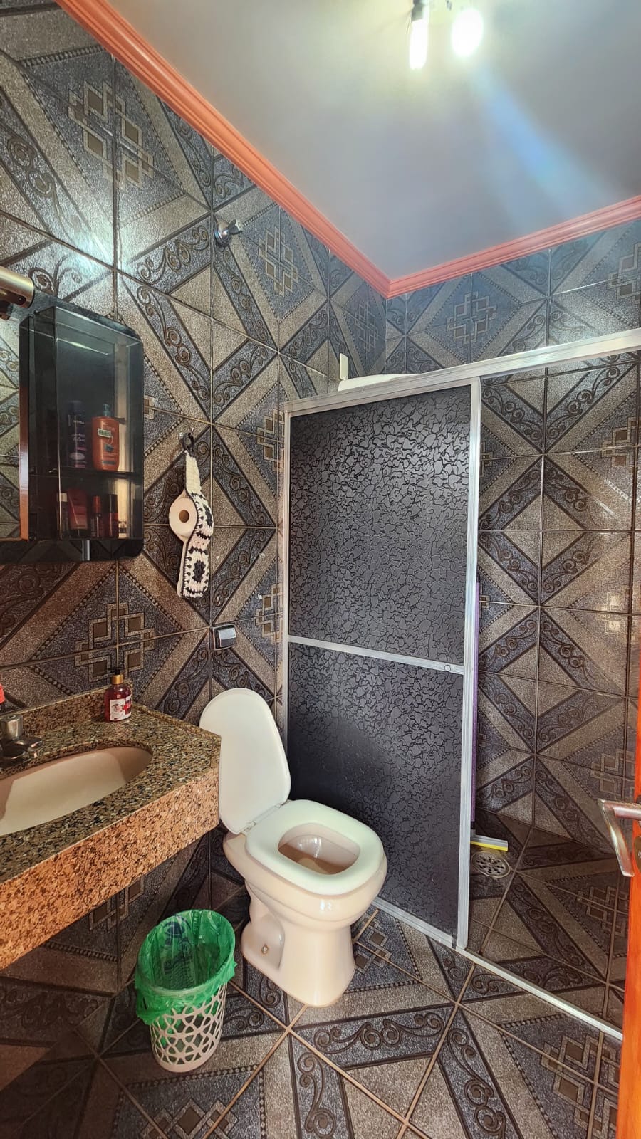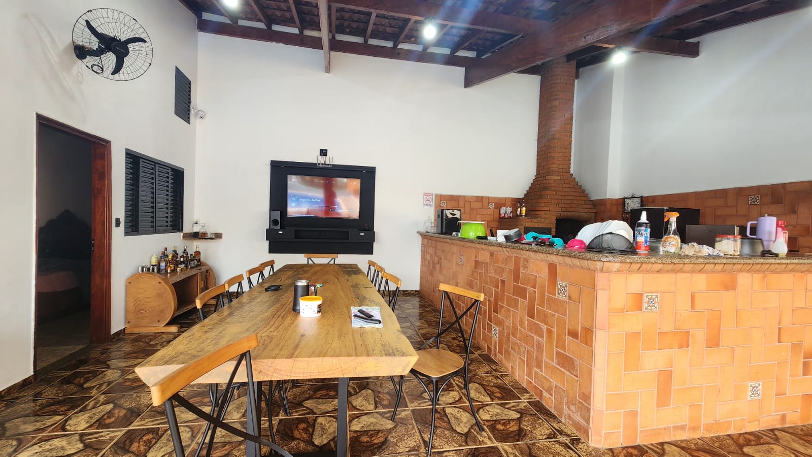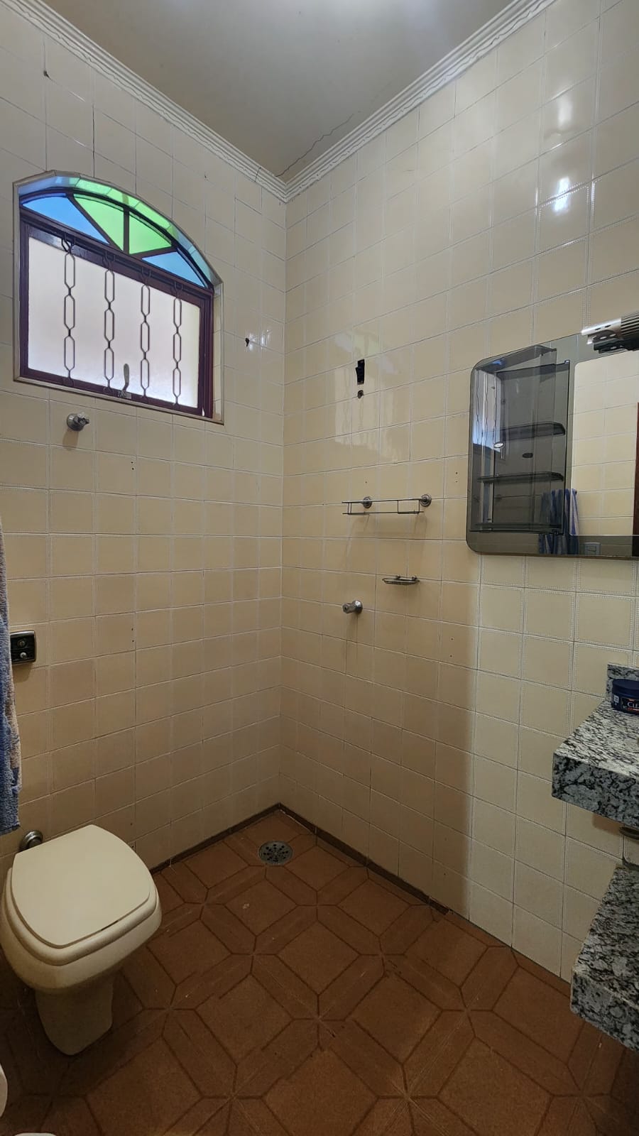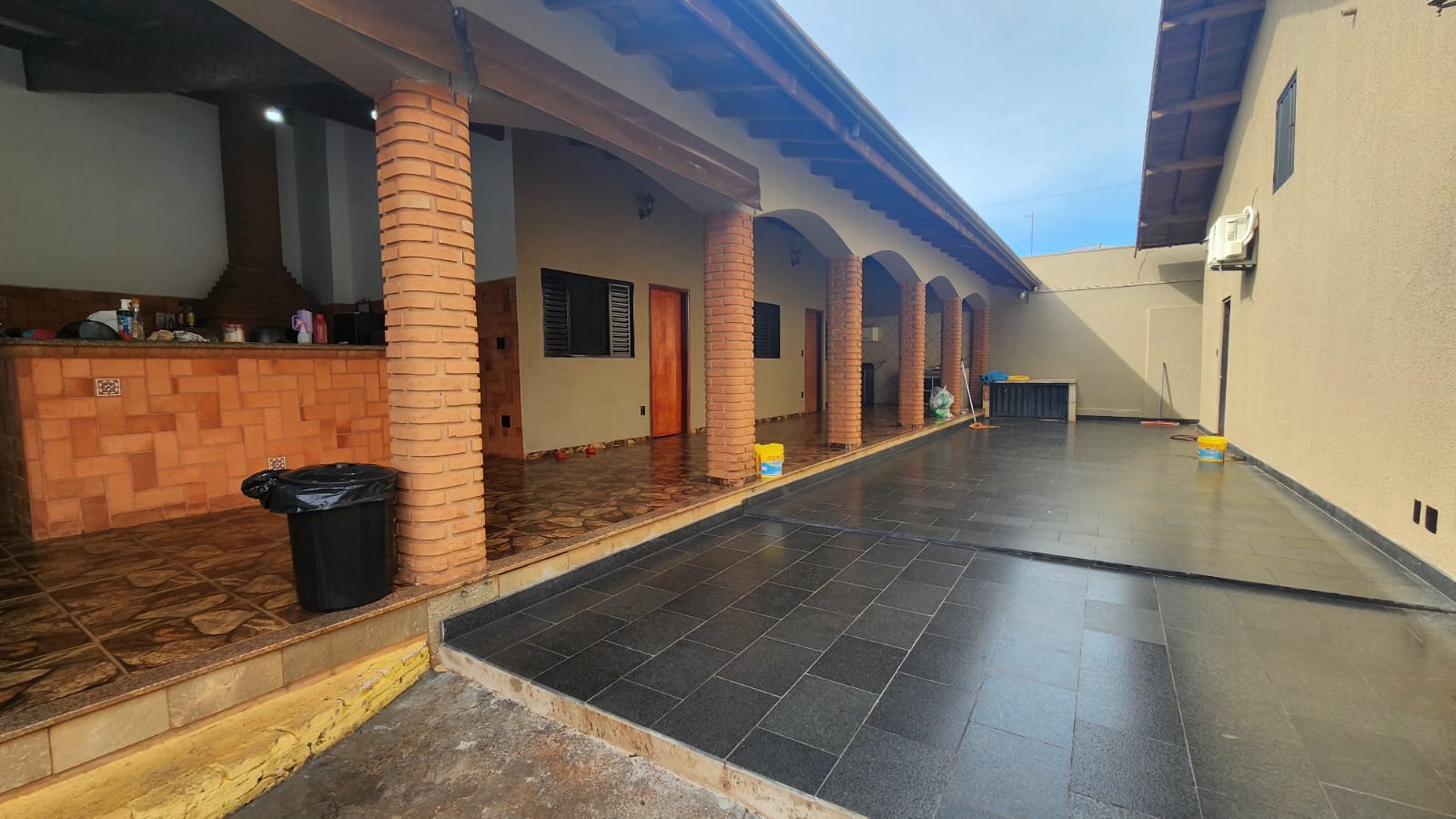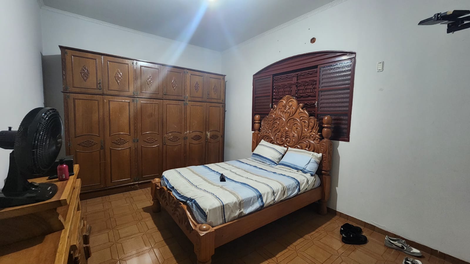 Fundos: 03 dormitórios, wc social, área de lazer c/ piscina, garagem para vários carros, piso frio, laje.