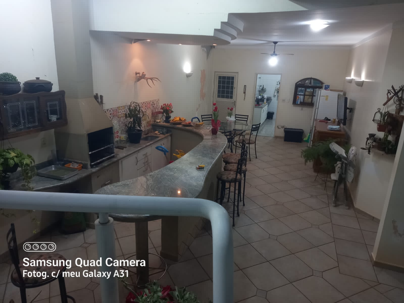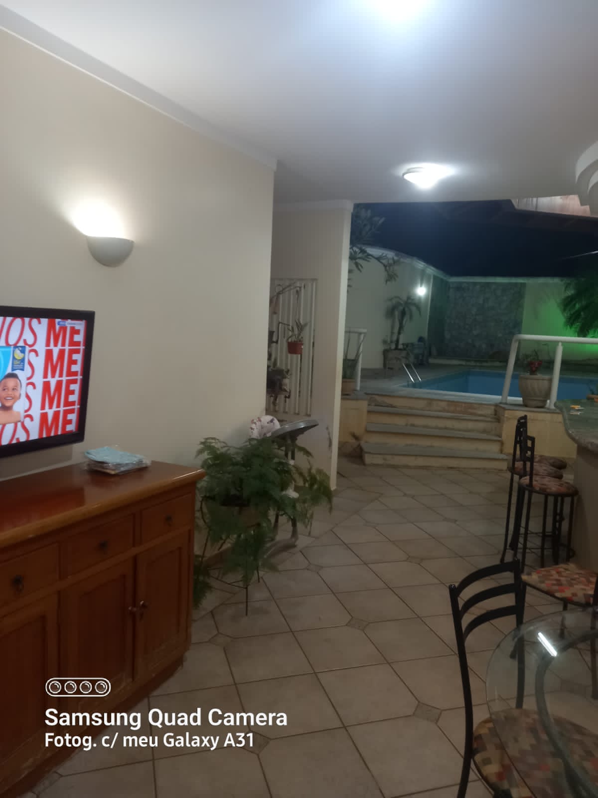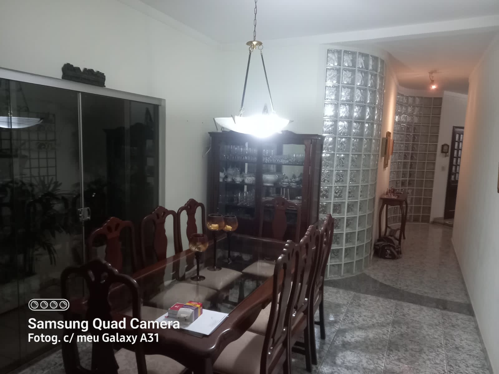 Descrição: 01 suíte com closet, 02 dormitórios, 01 w.c. social, sala ampla, escritório, lavabo, sala de jantar com jardim de inverno, cozinha com armário, laje, piso frio, área de lazer com balcão, churrasqueira, pia, 01 dormitório, 01 w.c. social, piscina, corredor lateral, área de serviço, despejo, quintal com piso, garagem para 03 carros, portão eletrônico.