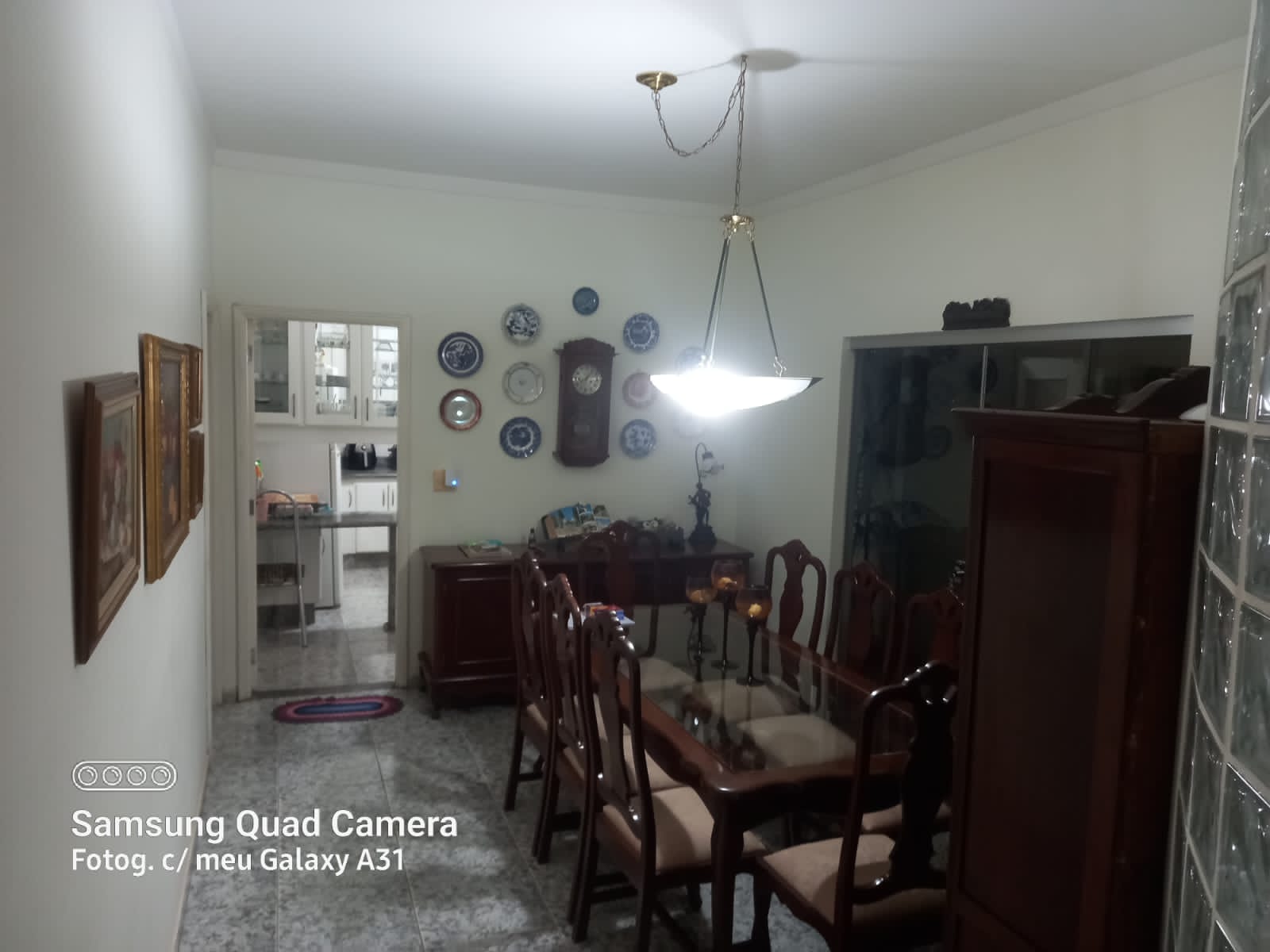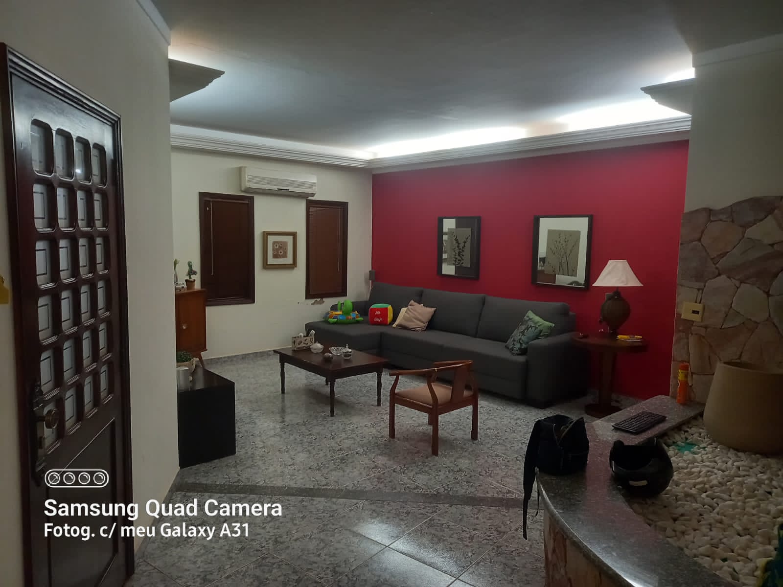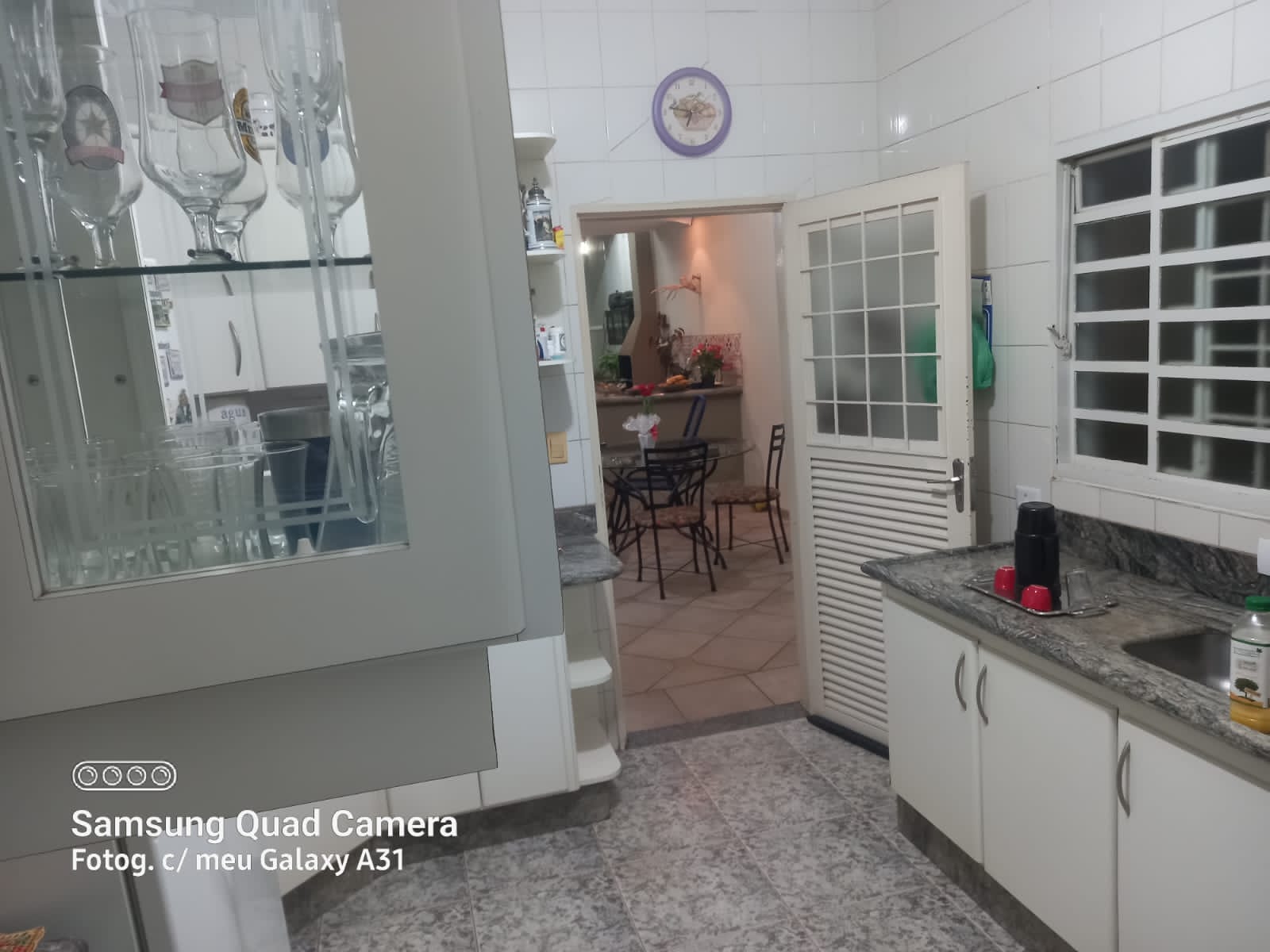 Descrição: 01 suíte com closet, 02 dormitórios, 01 w.c. social, sala ampla, escritório, lavabo, sala de jantar com jardim de inverno, cozinha com armário, laje, piso frio, área de lazer com balcão, churrasqueira, pia, 01 dormitório, 01 w.c. social, piscina, corredor lateral, área de serviço, despejo, quintal com piso, garagem para 03 carros, portão eletrônico.