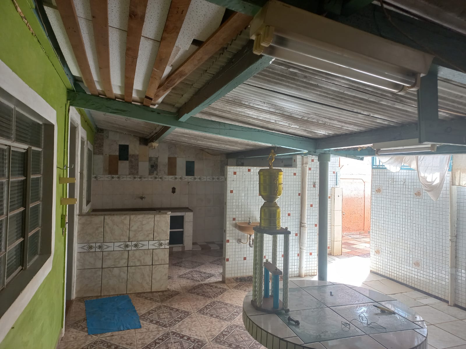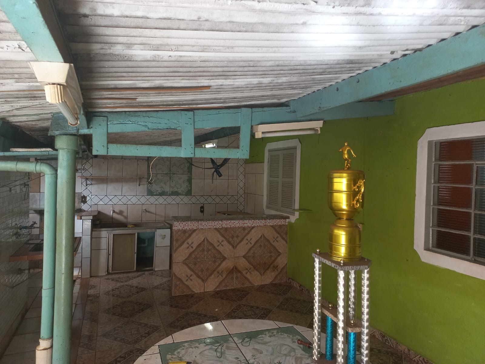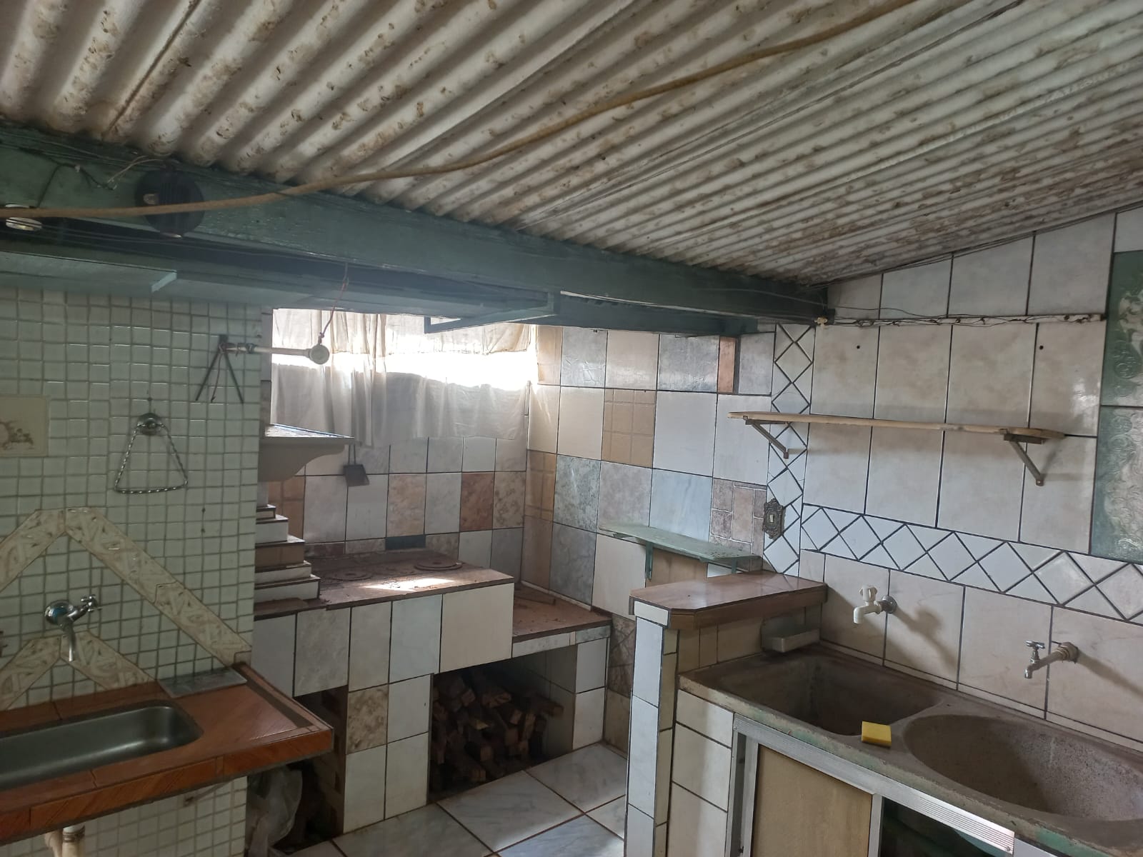 Descrição: Frente: 02 dormitórios, sala, copa, cozinha, garagem, sem forro, piso vermelhão. Fundos: 02 dormitórios, 01 w.c. social, sala. Parte externa: cozinha, área de serviço coberta, fogão a lenha, despejo, corredor.