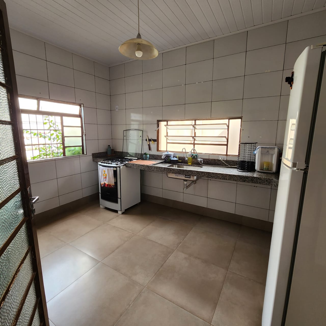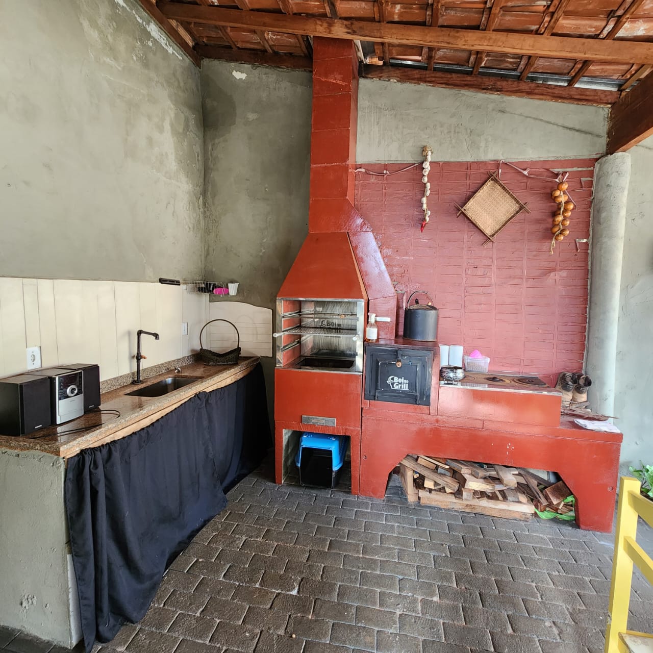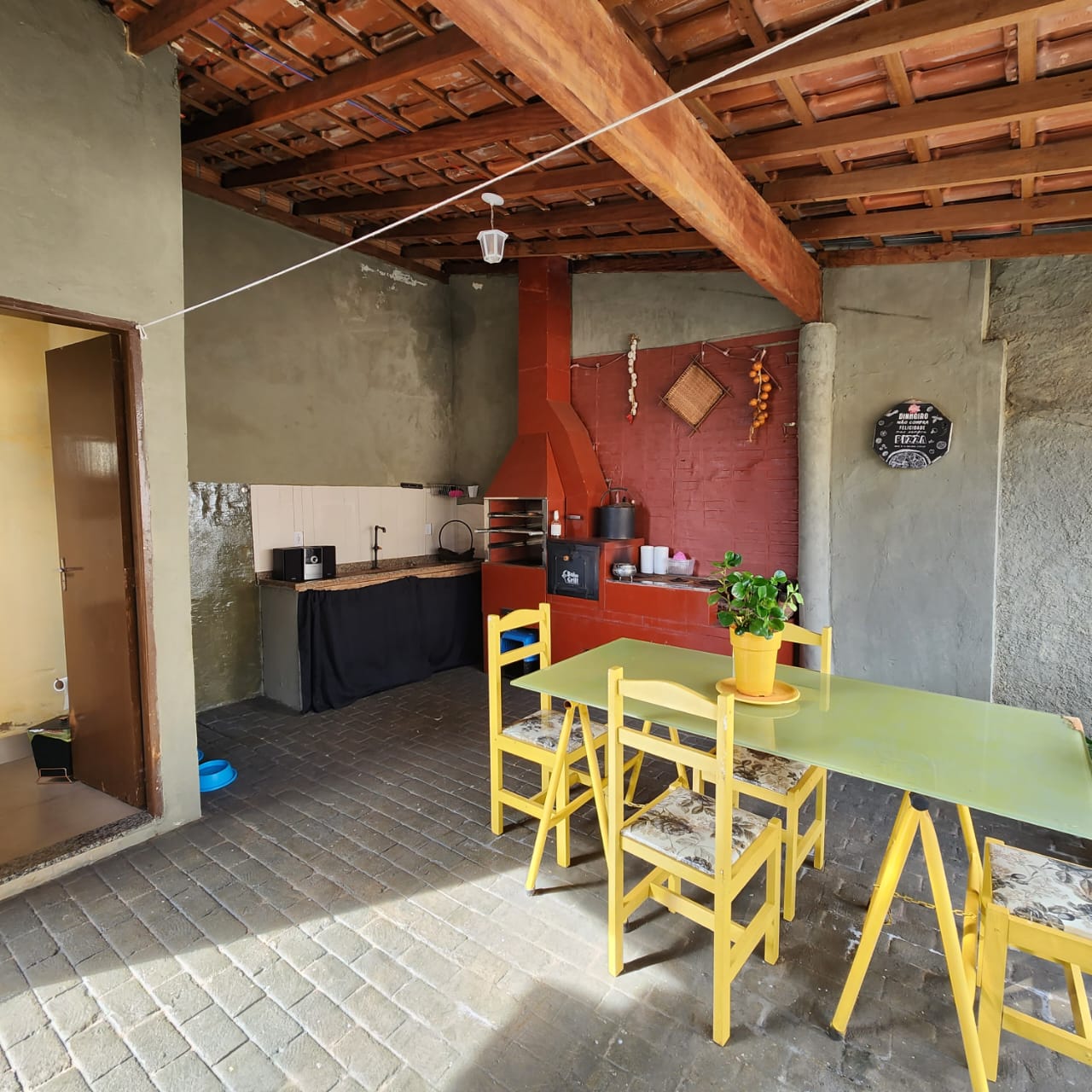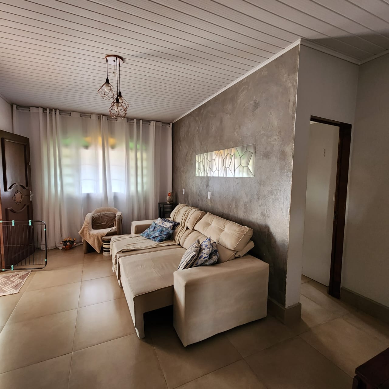 Descrição: 01 suíte, 02 dormitórios, 01 w.c. social, sala de TV, sala de jantar, cozinha, parte PVC, parte laje, área de serviço coberta, porcelanato, área de lazer com pia, fogão a lenha, churrasqueira, 01 w.c. social, quintal com jardim, corredor lateral, garagem para 03 carros, concertina.