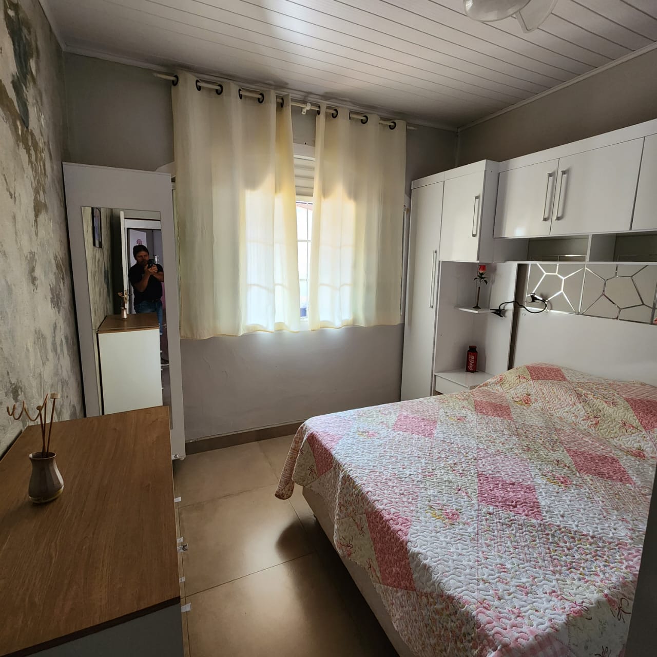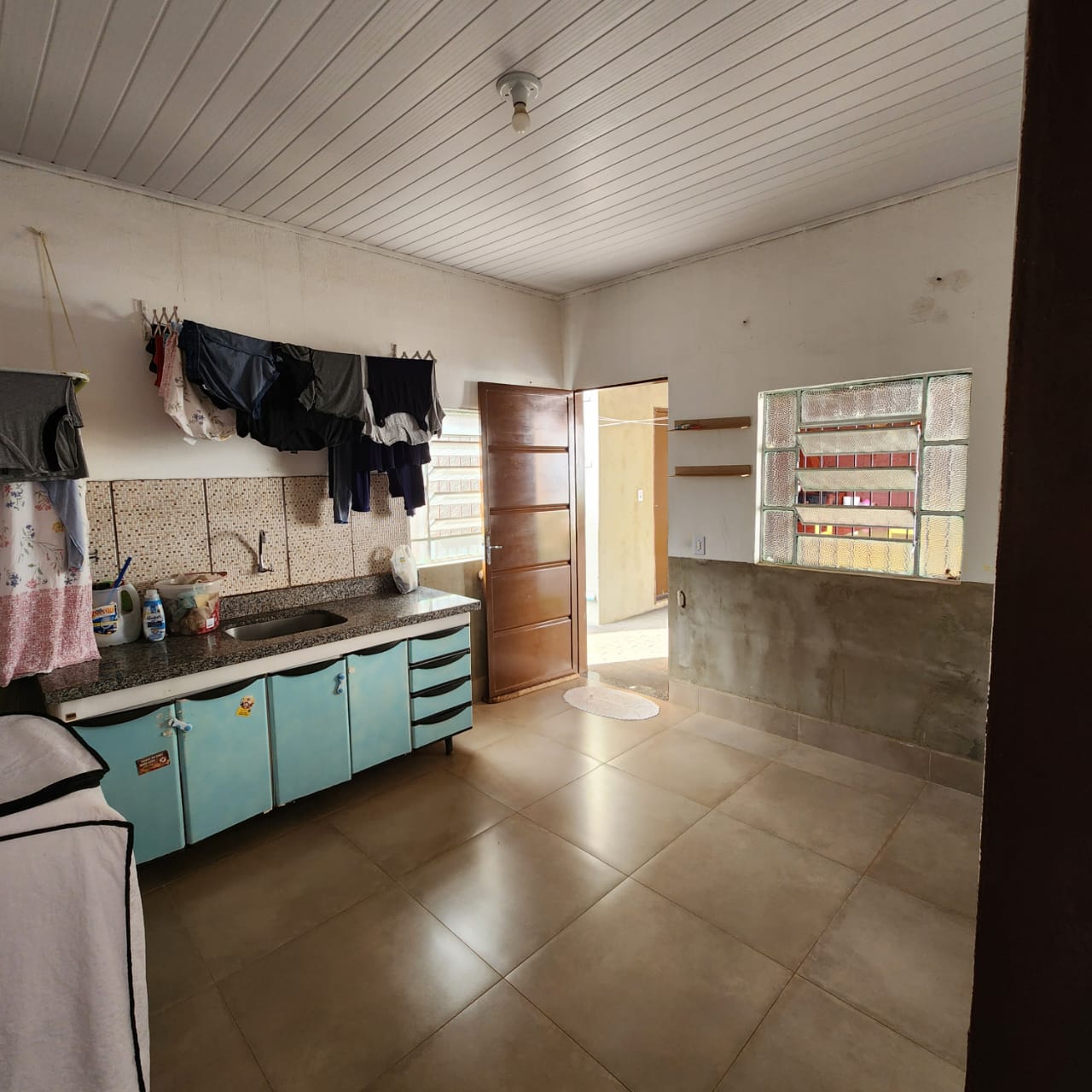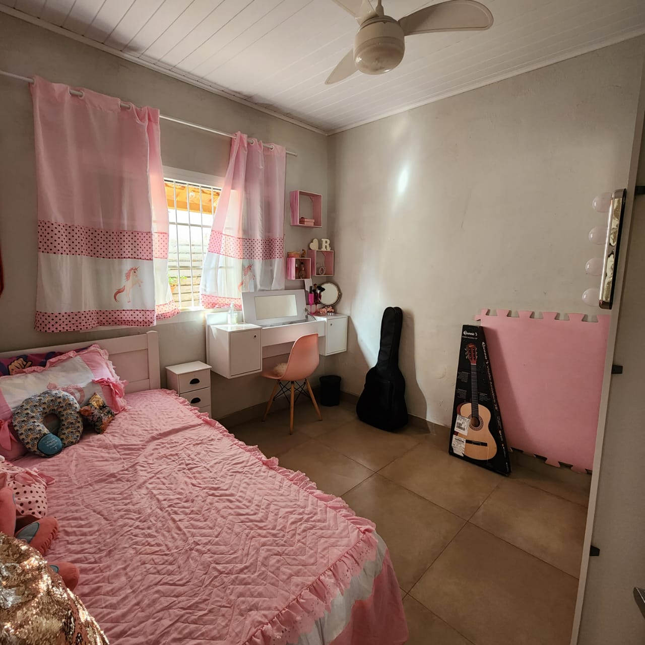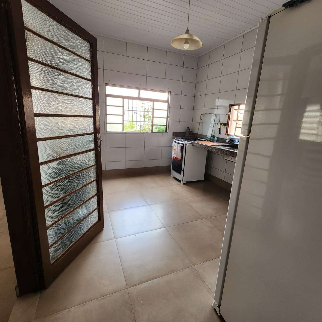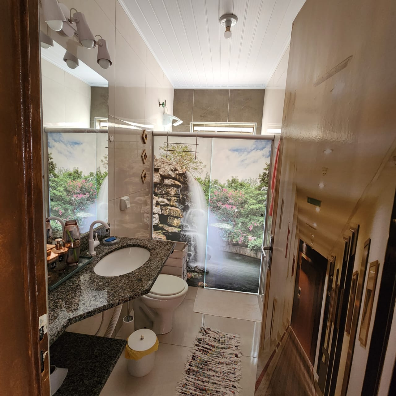 Descrição: 01 suíte, 02 dormitórios, 01 w.c. social, sala de TV, sala de jantar, cozinha, parte PVC, parte laje, área de serviço coberta, porcelanato, área de lazer com pia, fogão a lenha, churrasqueira, 01 w.c. social, quintal com jardim, corredor lateral, garagem para 03 carros, concertina.