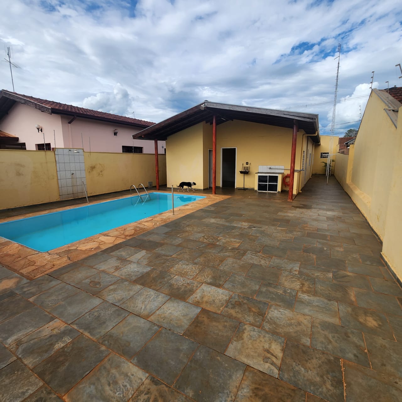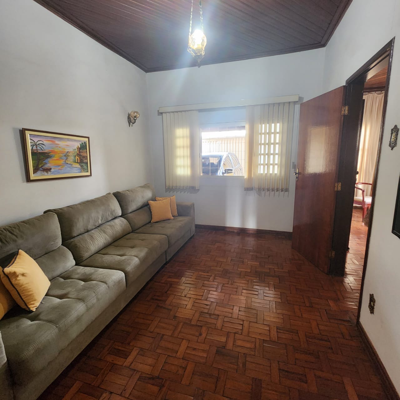 Descrição: 01 suite, 01 dormitório, 01 suite c/armários, sala de visita c/jardim de inverno, sala de estar, sala de jantar, 01 wc social, forro lambril e taco, cozinha c/ piso frio, área de serviço coberta, despejo, área de lazer c/ wc social, pia e piscina, chuveirão, corredor lateral, concertina, cerca elétrica, garagem, quintal ardosia, portão eletrônico.