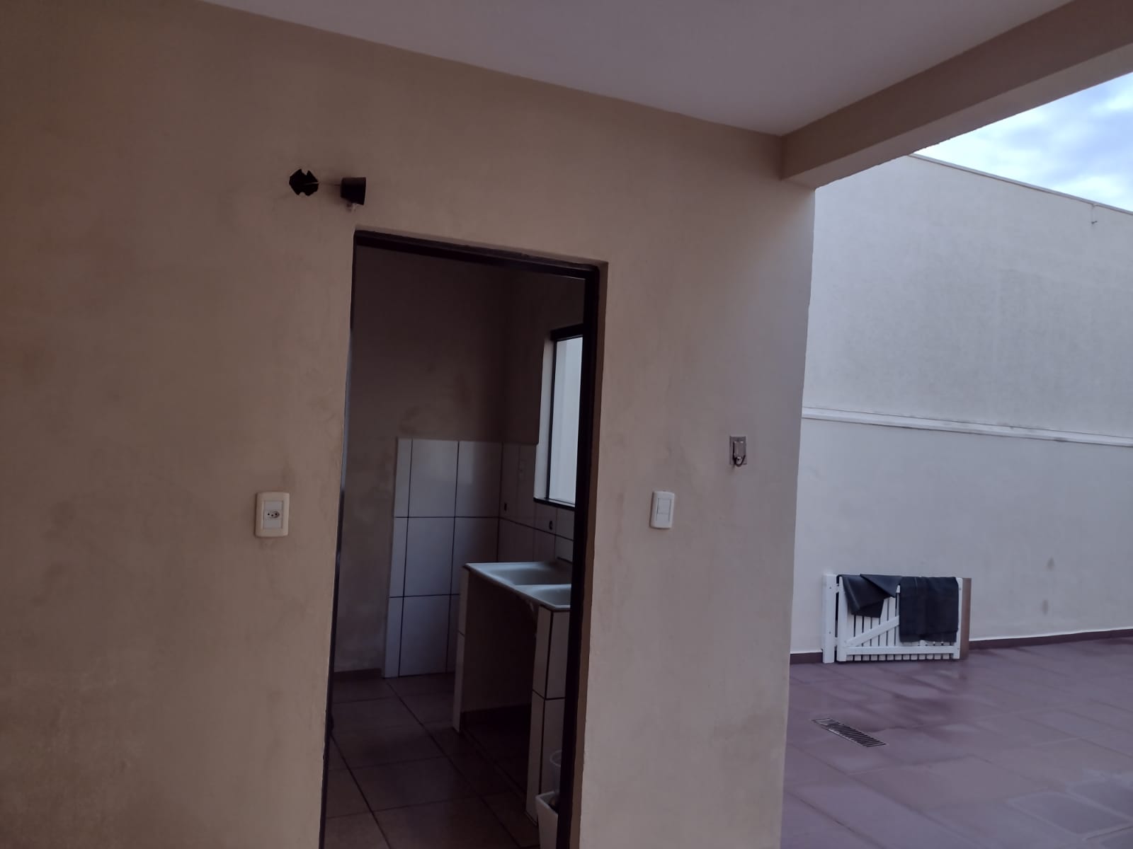 Fundos: 01 suite c/ laje e piso frio, área de serviço coberta, quintal c/ pia.