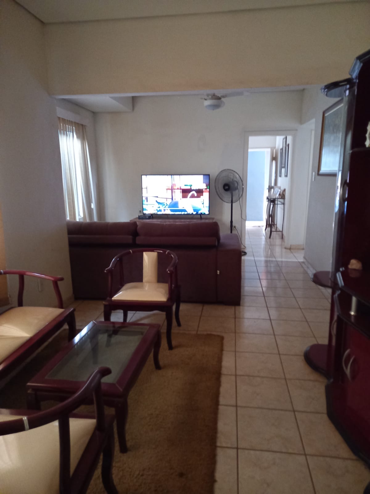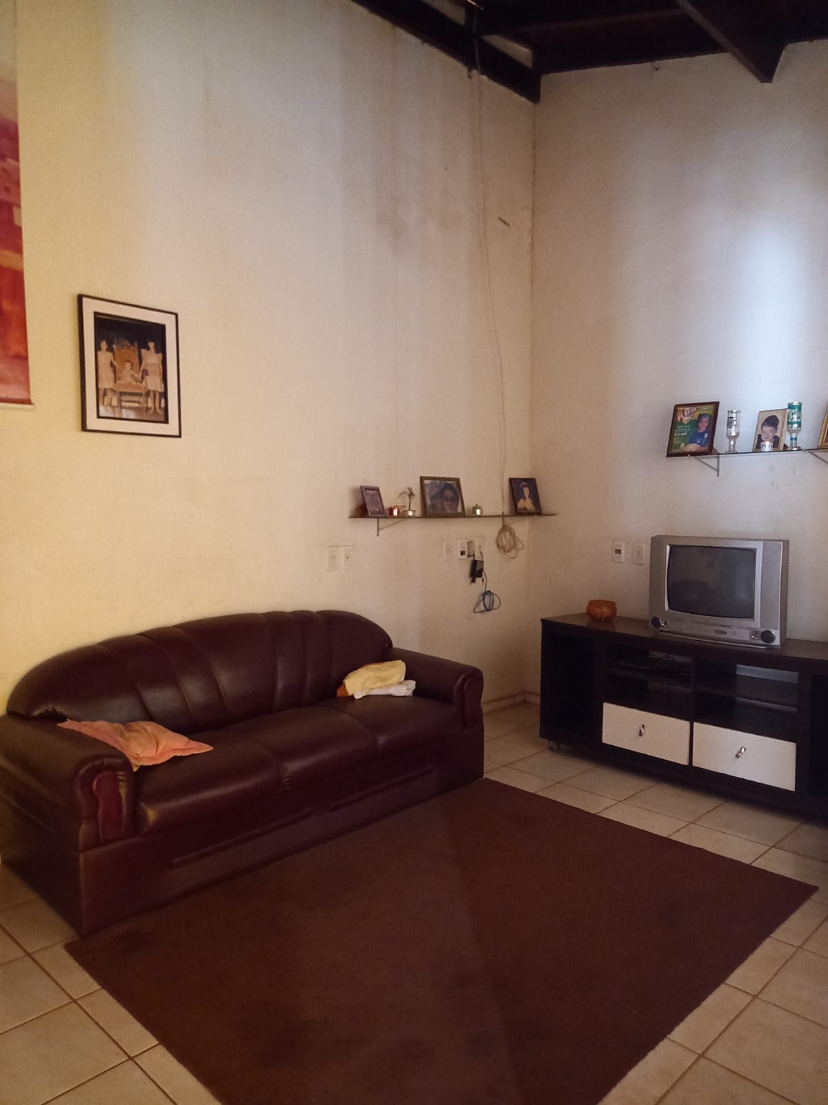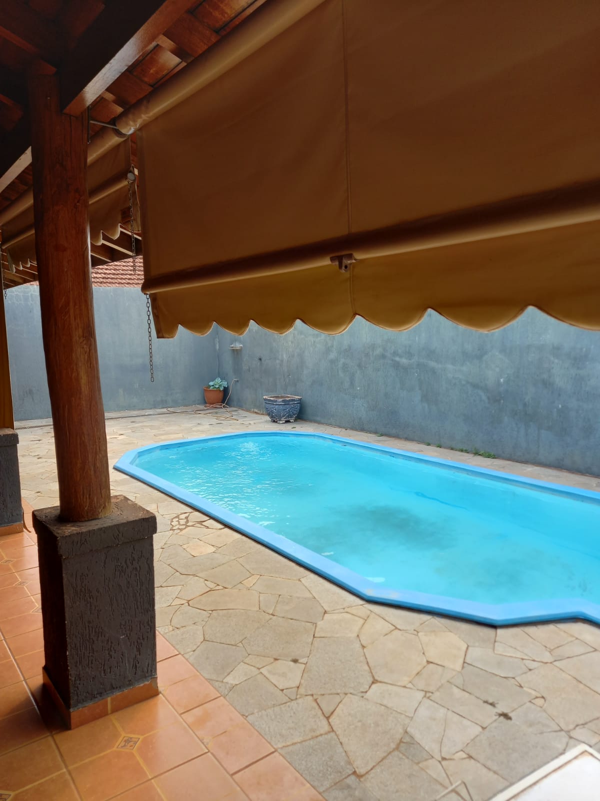 Descrição: 01 suíte, 02 dormitórios, 01 w.c. social, sala de visita, sala de TV, copa, forro de gesso, piso frio, área de serviço coberta, 01 dormitório, despejo, cozinha, despensa, 01 suíte, forro lambril, piso frio, área de lazer com churrasqueira, piscina, chuveirão, cerca elétrica, garagem para 02 carros, portão de correr, interfone.