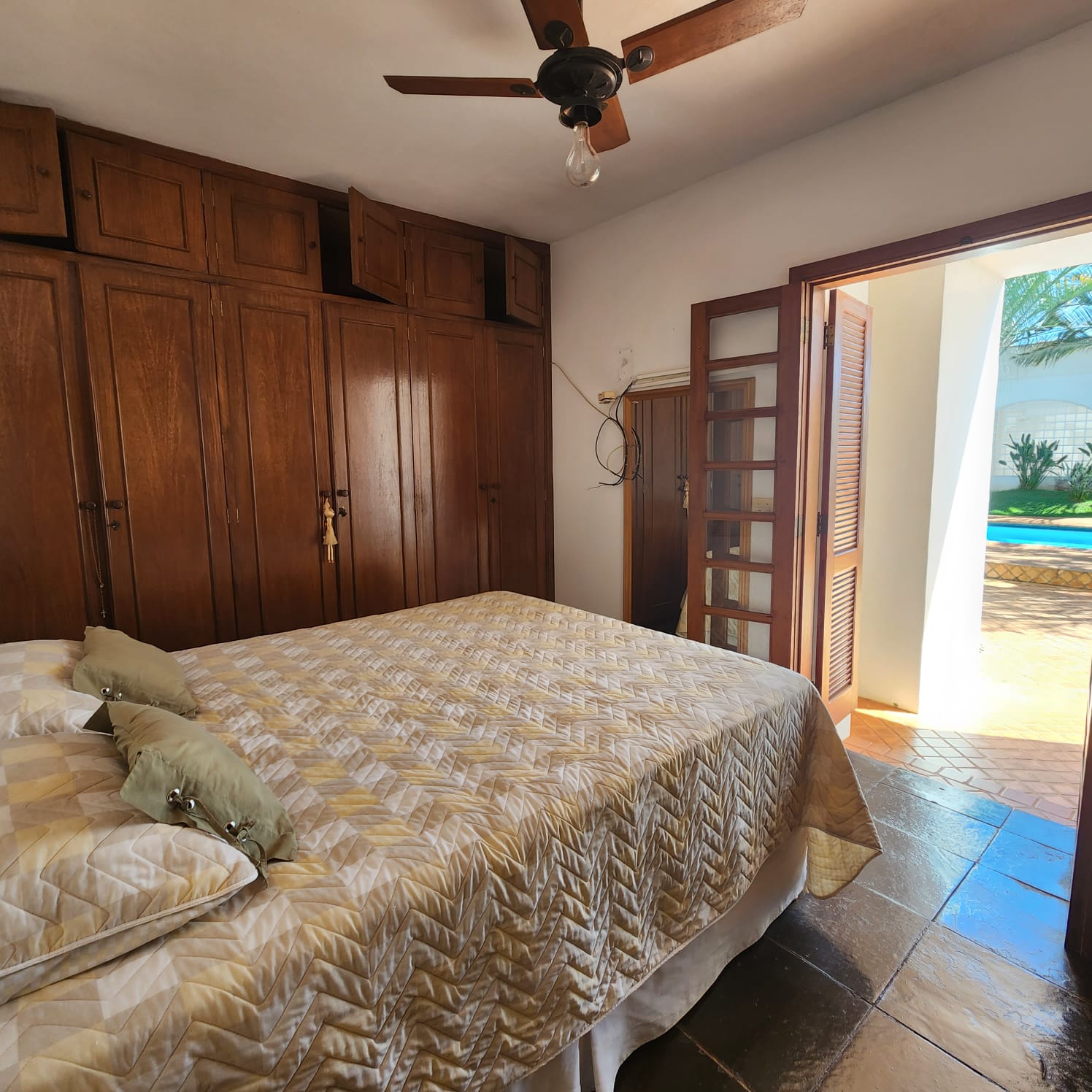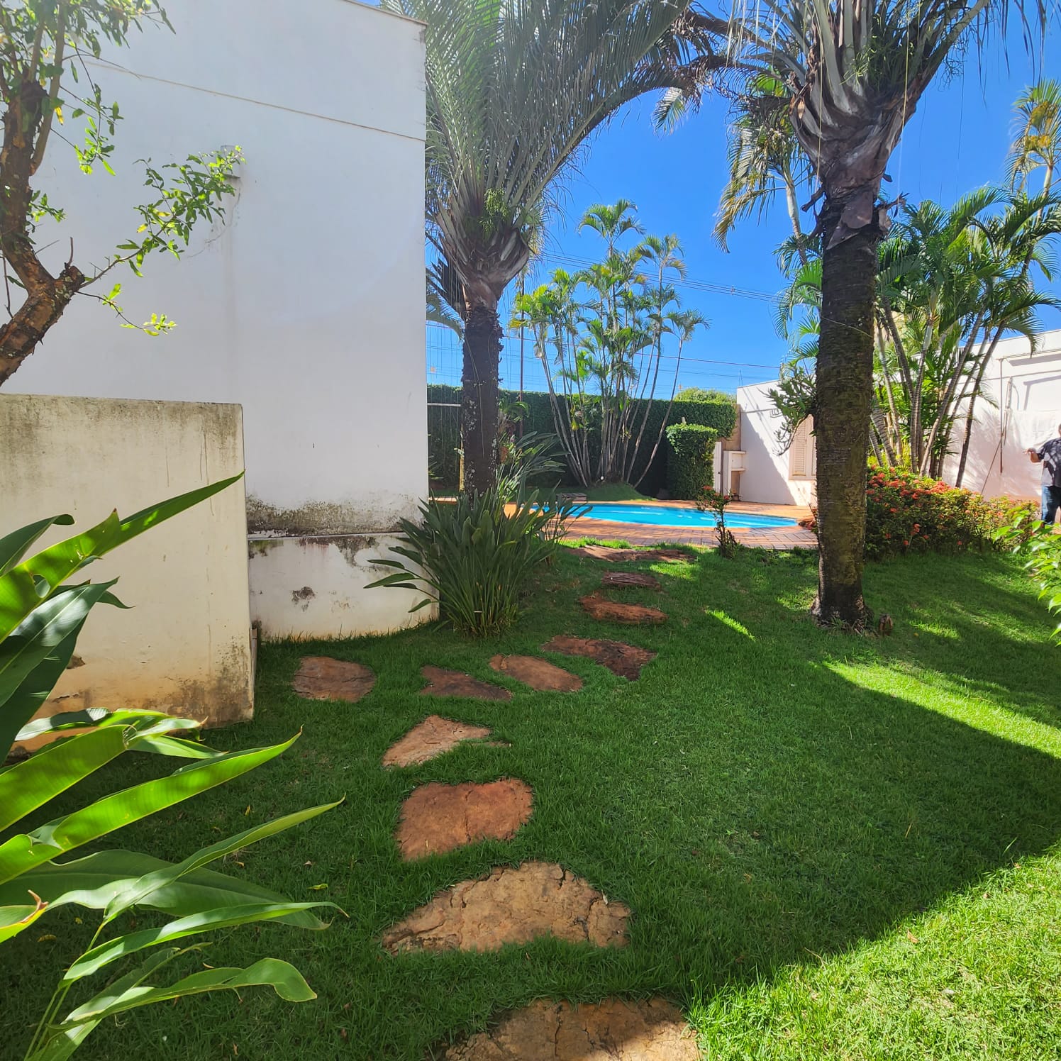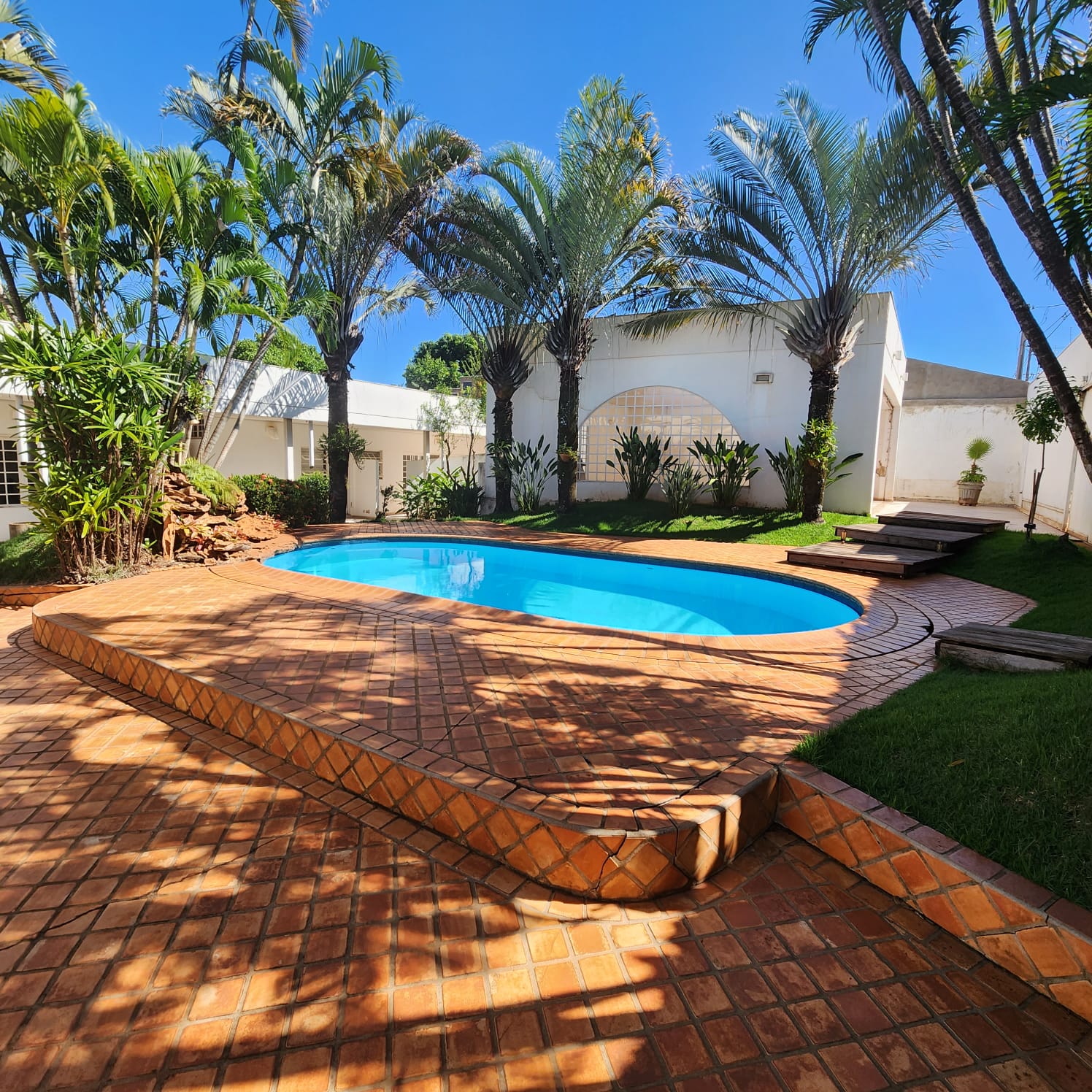 Descrição: 01 suíte com armário, 02 dormitórios, 01 w.c. social, escritório, sala ampla, sala de visita com blindex, sala de TV, área de estar com aquário e plantas, cozinha com armário e balcão, sala de jantar, área de lazer com academia, piscina com jardins. Fundos: 01 suíte com armário, área de serviço coberta com armário, garagem para vários carros, portão eletrônico, cerca elétrica, sauna, 01 w.c. externo.
