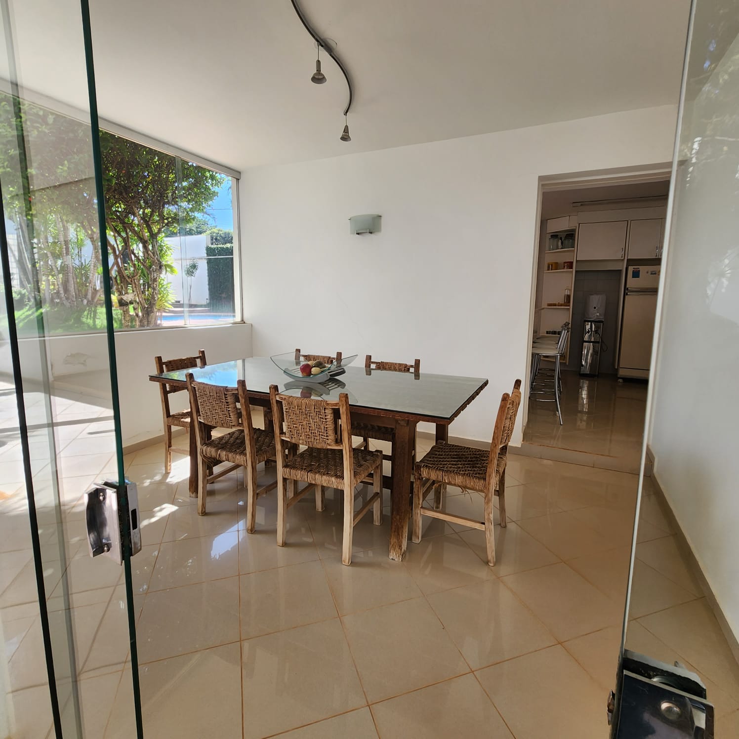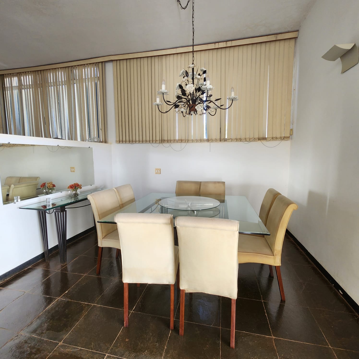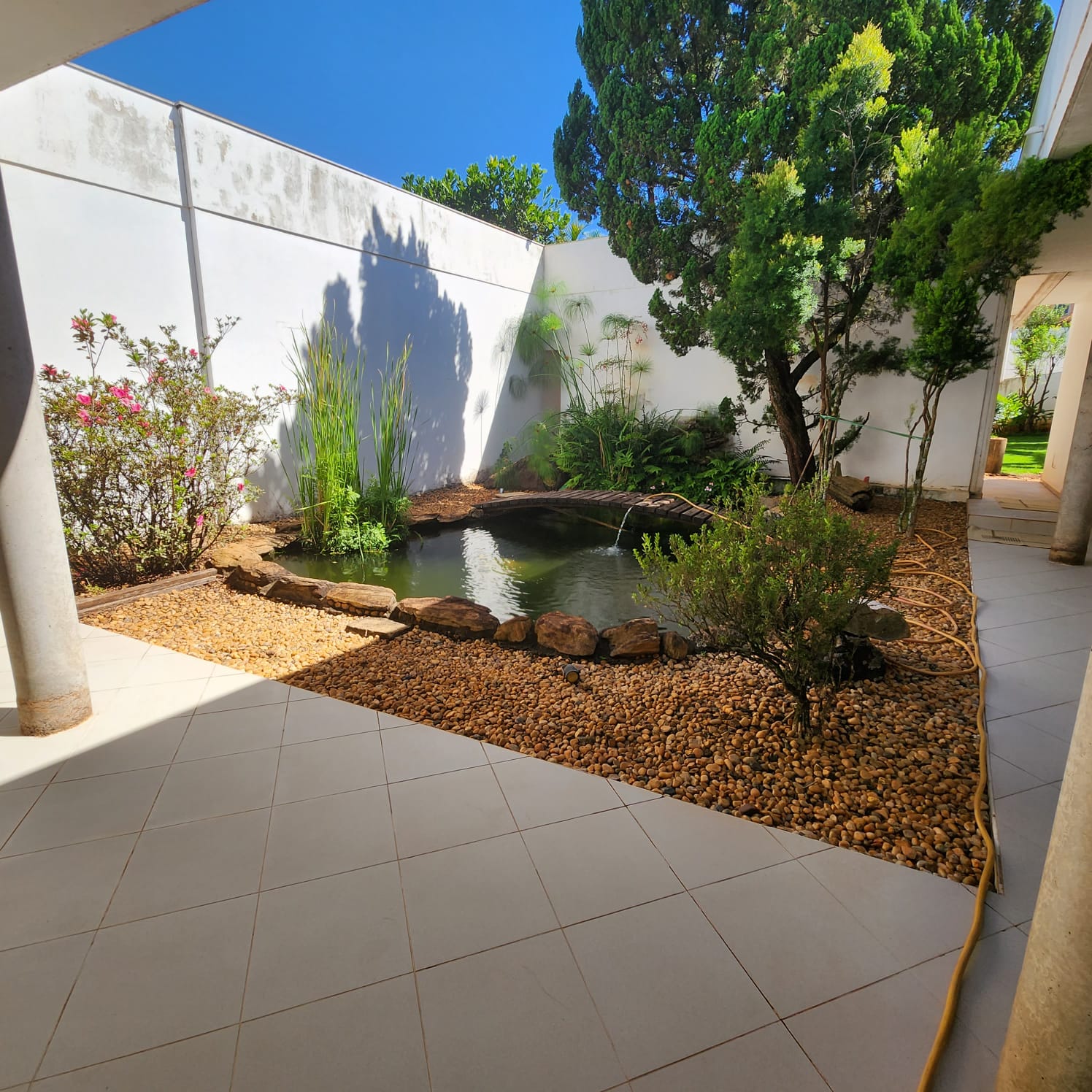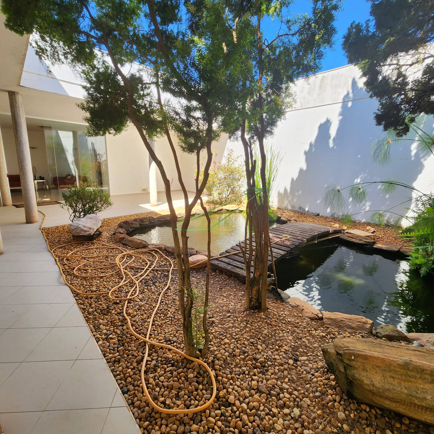 Descrição: 01 suíte com armário, 02 dormitórios, 01 w.c. social, escritório, sala ampla, sala de visita com blindex, sala de TV, área de estar com aquário e plantas, cozinha com armário e balcão, sala de jantar, área de lazer com academia, piscina com jardins. Fundos: 01 suíte com armário, área de serviço coberta com armário, garagem para vários carros, portão eletrônico, cerca elétrica, sauna, 01 w.c. externo.