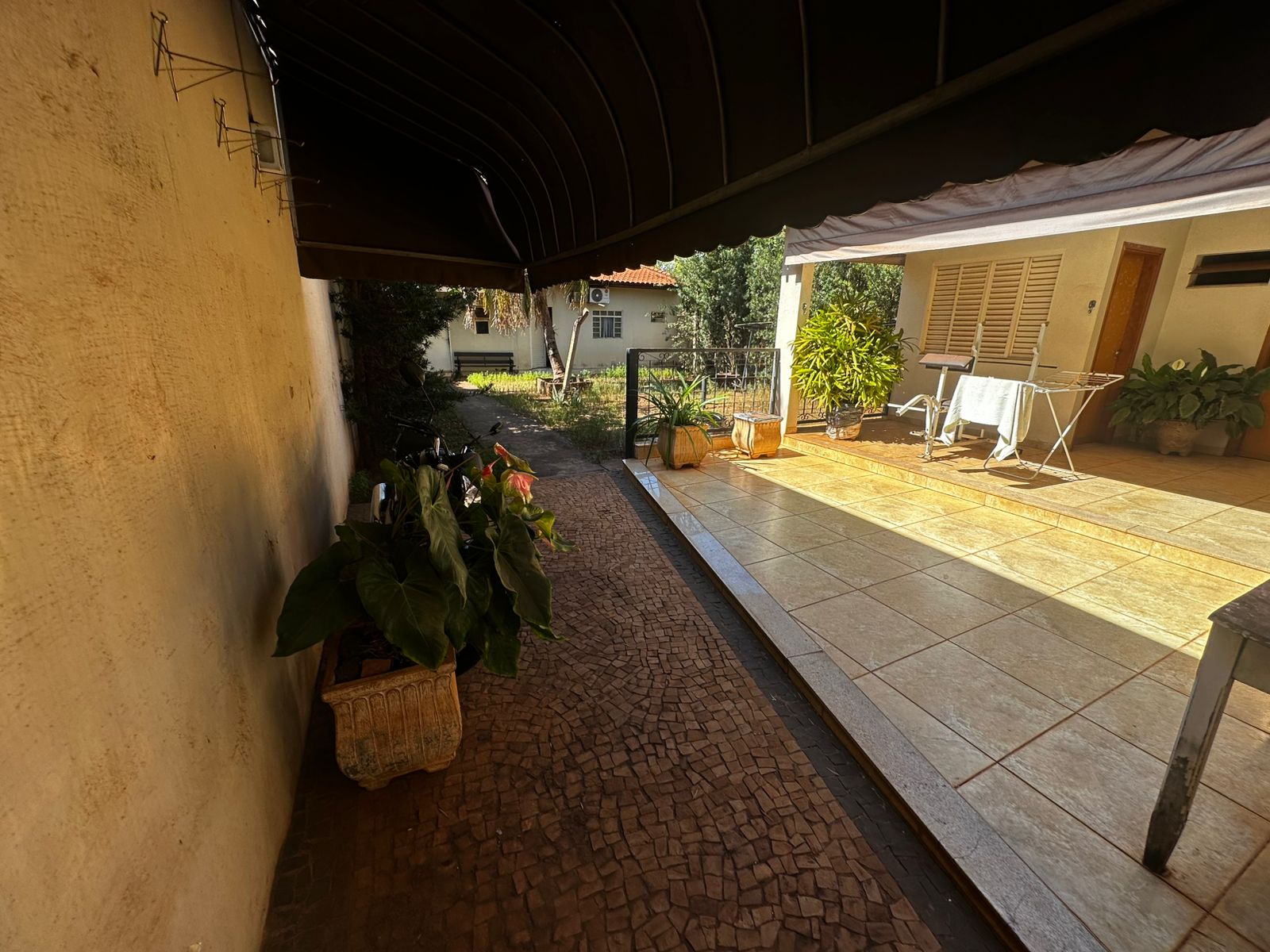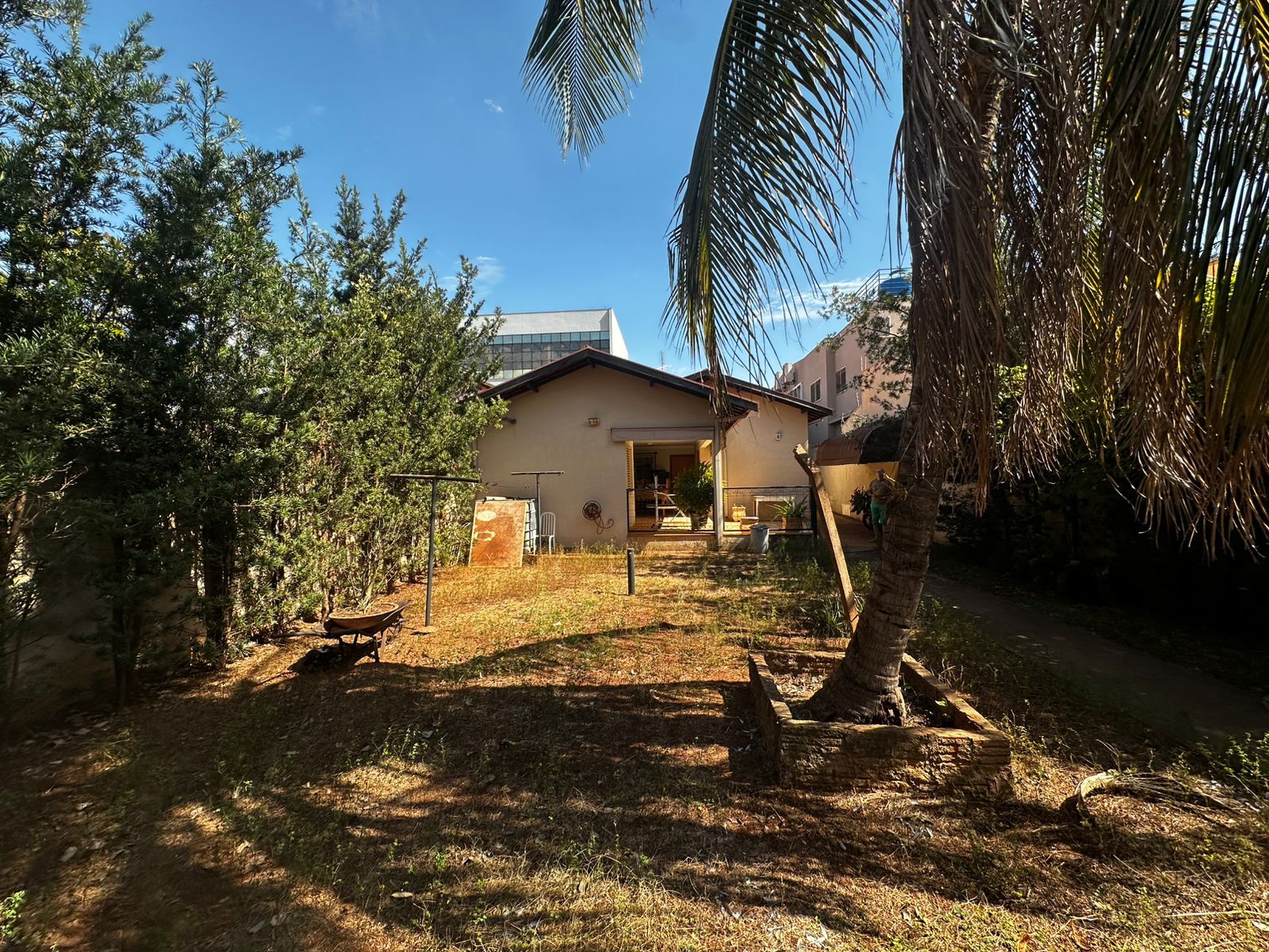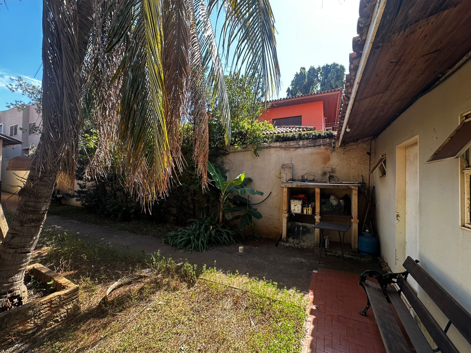 Casa fundos: 02 dormitórios, wc social, sala, cozinha, laje, piso frio, despensa, área de serviço coberta, sala e jardins.