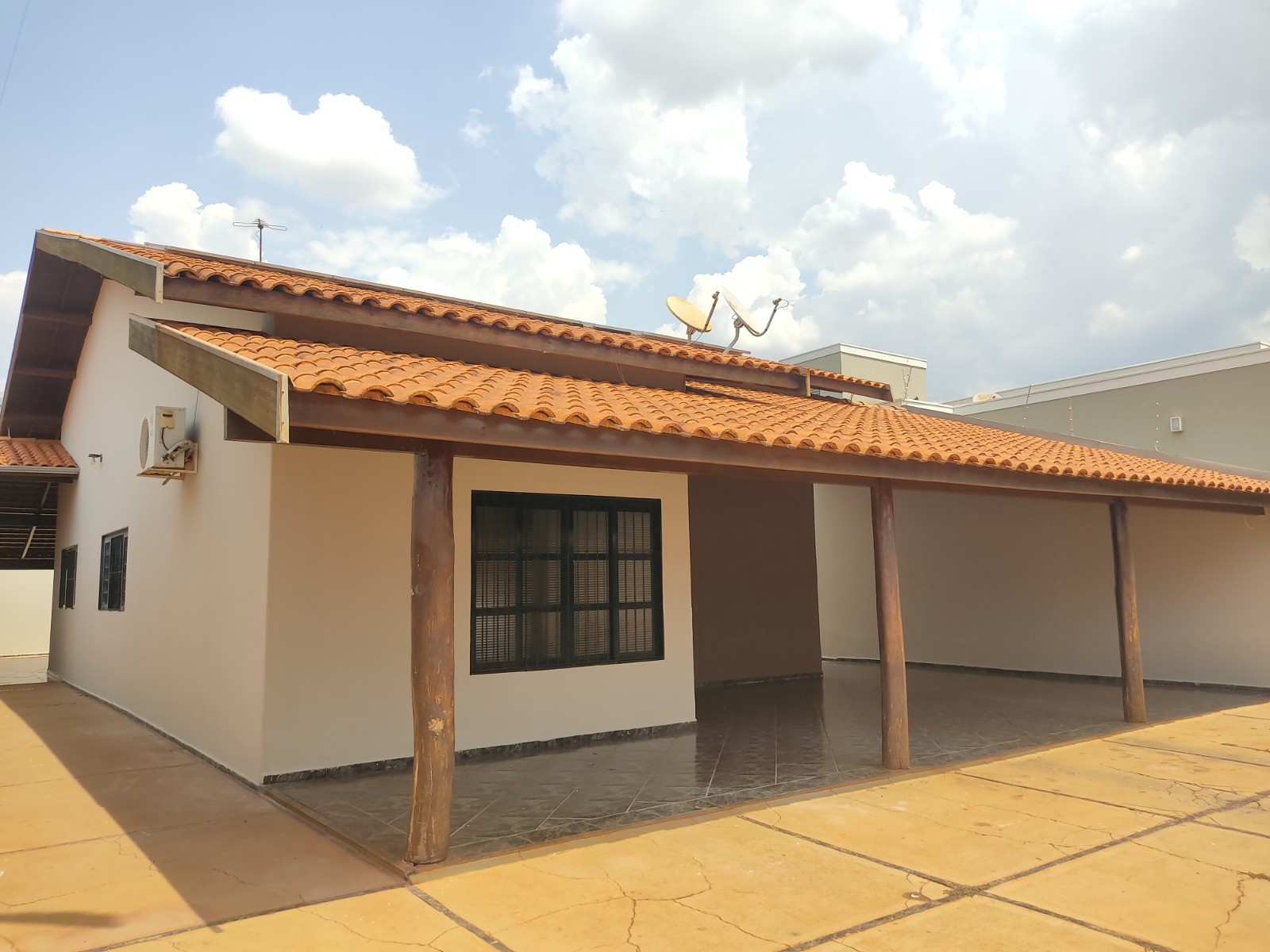 Descrição – 01 dormitórios c/ closet e armários, 01 suíte c/ armários, 01 dormitórios, w.c social, sala de jantar, cozinha c/ armários, laje, piso frio, área de serviço coberta, despejo corredor laterais, energia solar, garagem vários carros, cerca elétrica, portão elétrica.