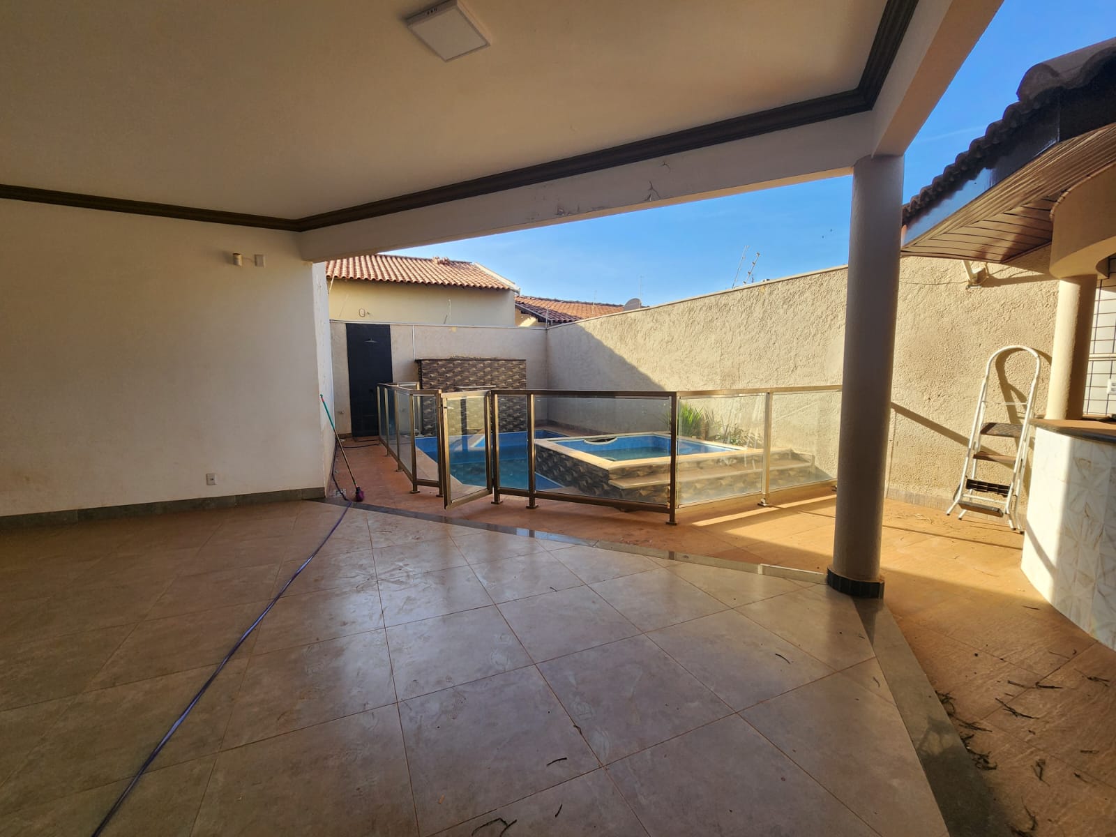 Parte Superior: 02 dormitórios, 01 wc social, 01 suíte ampla c/ hidro, área de lazer c/ piscina, churrasqueria, área de serviço coberta, garagem 03 carros, corredor lateral, cerca elétrica, portão eletrônico.