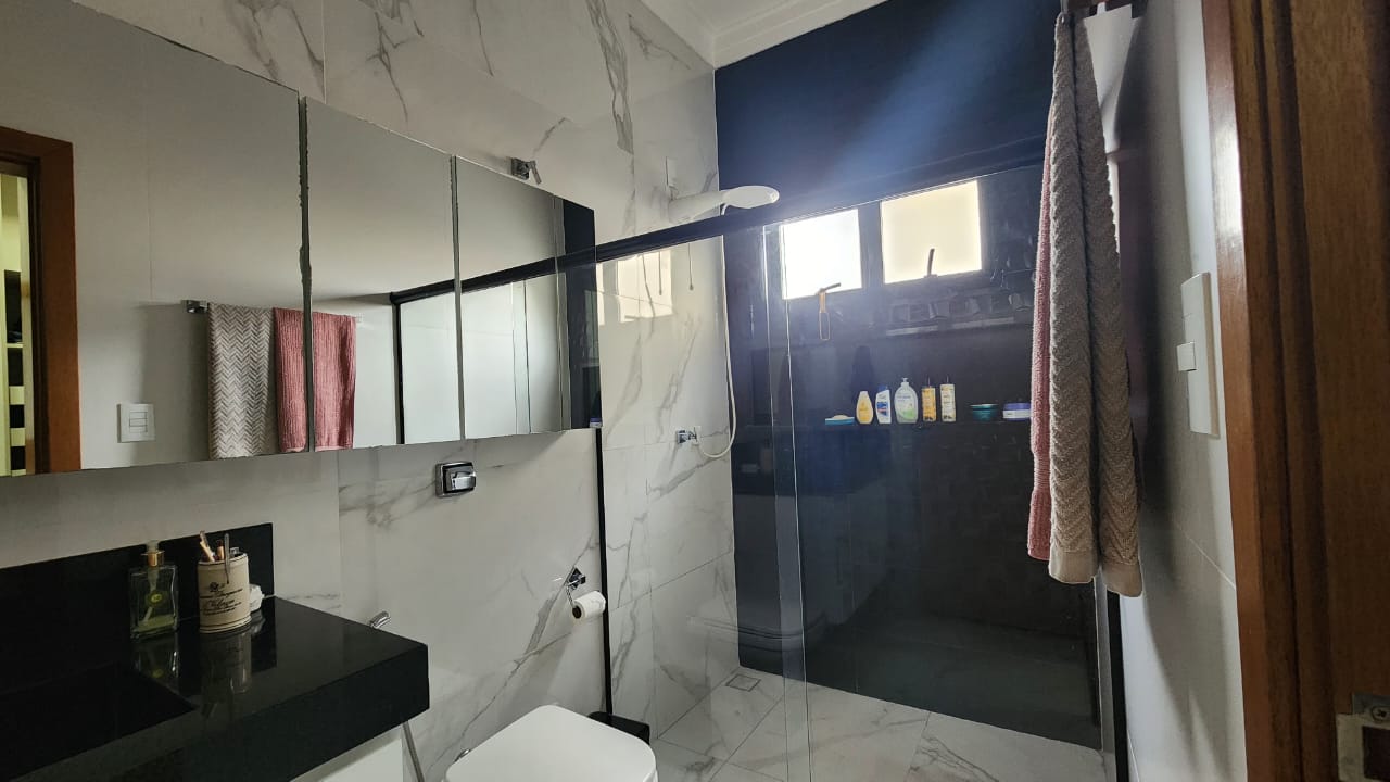 Imóvel residencial no condomínio Campos do Conde, disponível para venda, contando com: 01 suíte c/ closet c/ ar, 02 suítes c/ ar, haal de entrada, sala TV, cozinha ampla c/ ilha, armários cooktop, churrasqueira,01 wc social, área de lazer c/ piscina, área de serviço coberta, quintal c/ pedra, chuveirão, dispensa, laje, porcelanato, garagem.