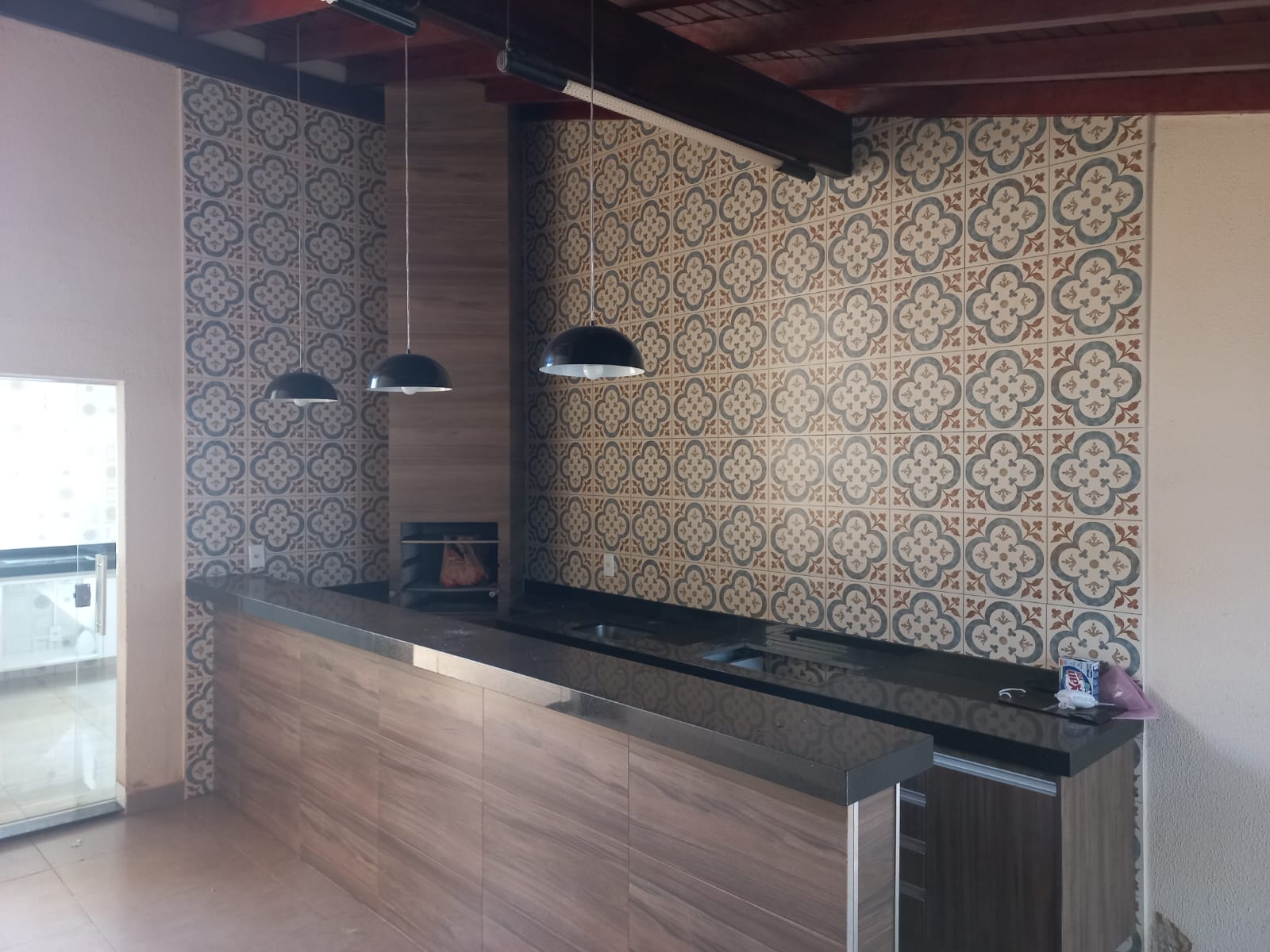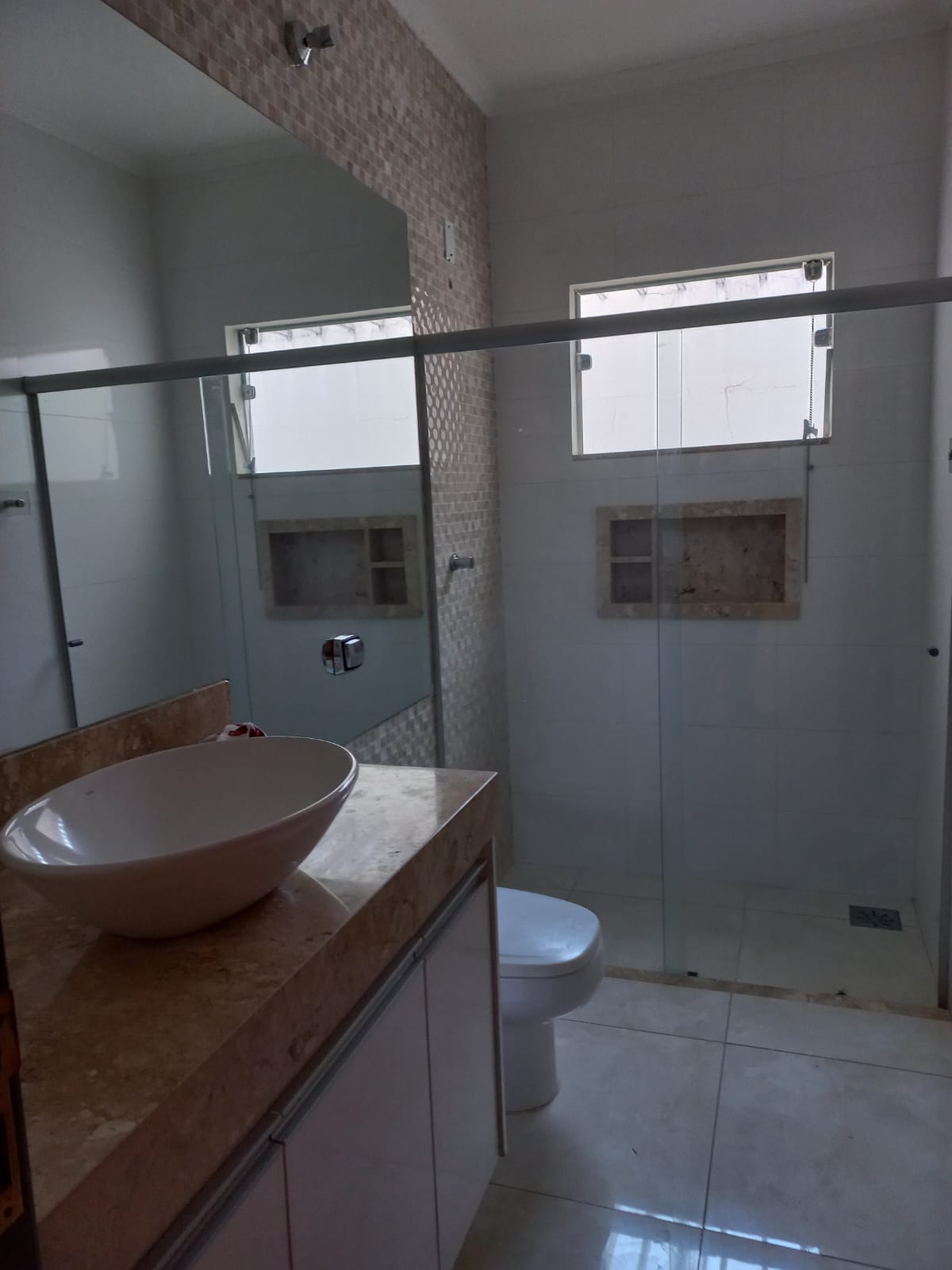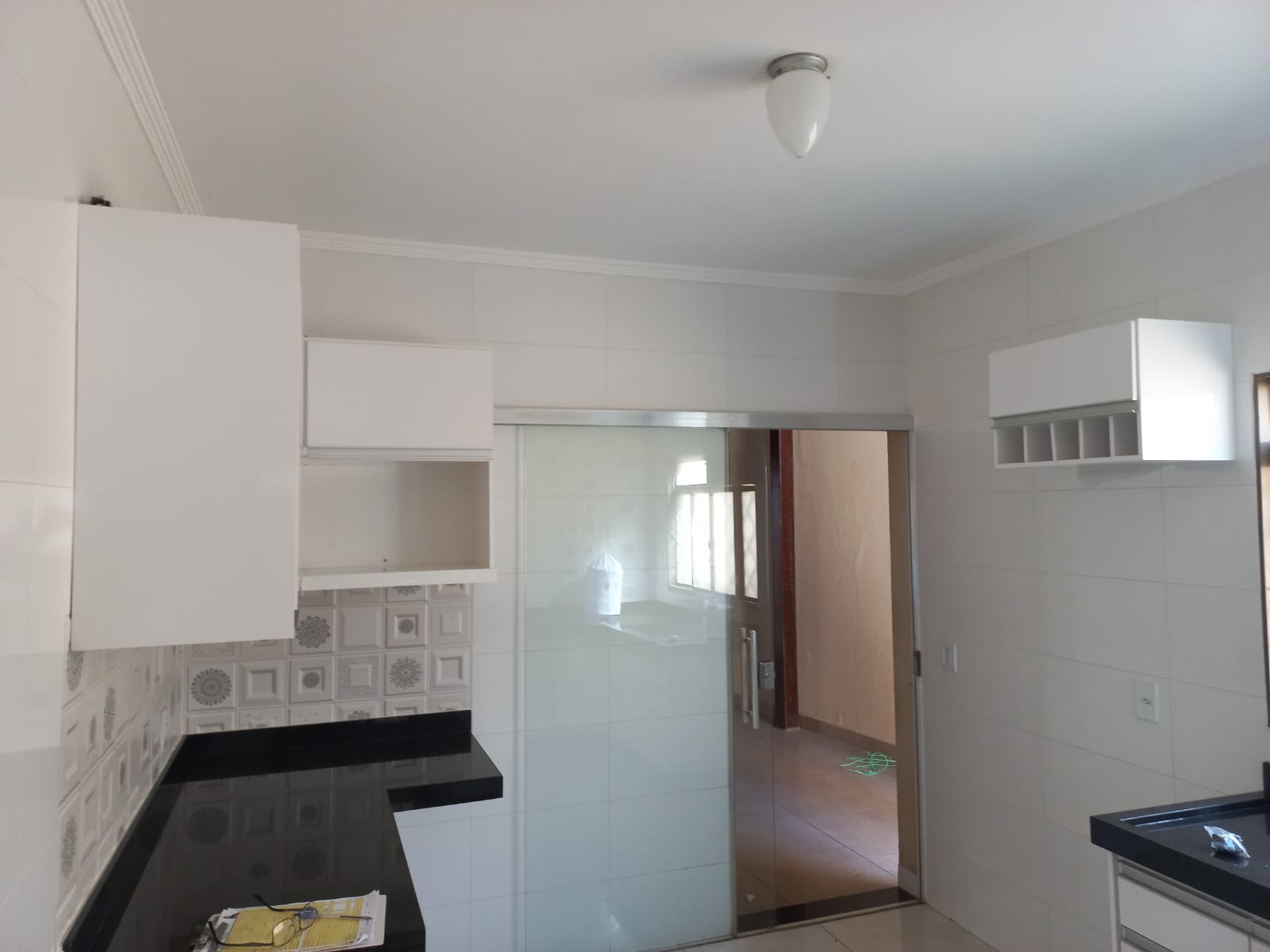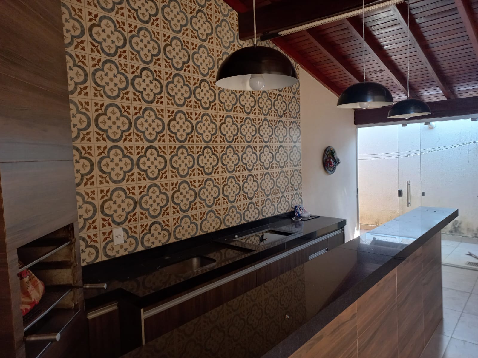 Descrição: 01 suíte com jardim, ventilador e ar condicionado, 01 dormitório com armário, 01 w.c. social, sala, sala de visita, cozinha com armários, área de lazer com churrasqueira, balcão, armários, blindex, corredor lateral, forro lambril, laje, porcelanato, 01 w.c. externo, área de serviço coberta, quintal com piso, garagem para 03 carros, concertina, cerca elétrica.