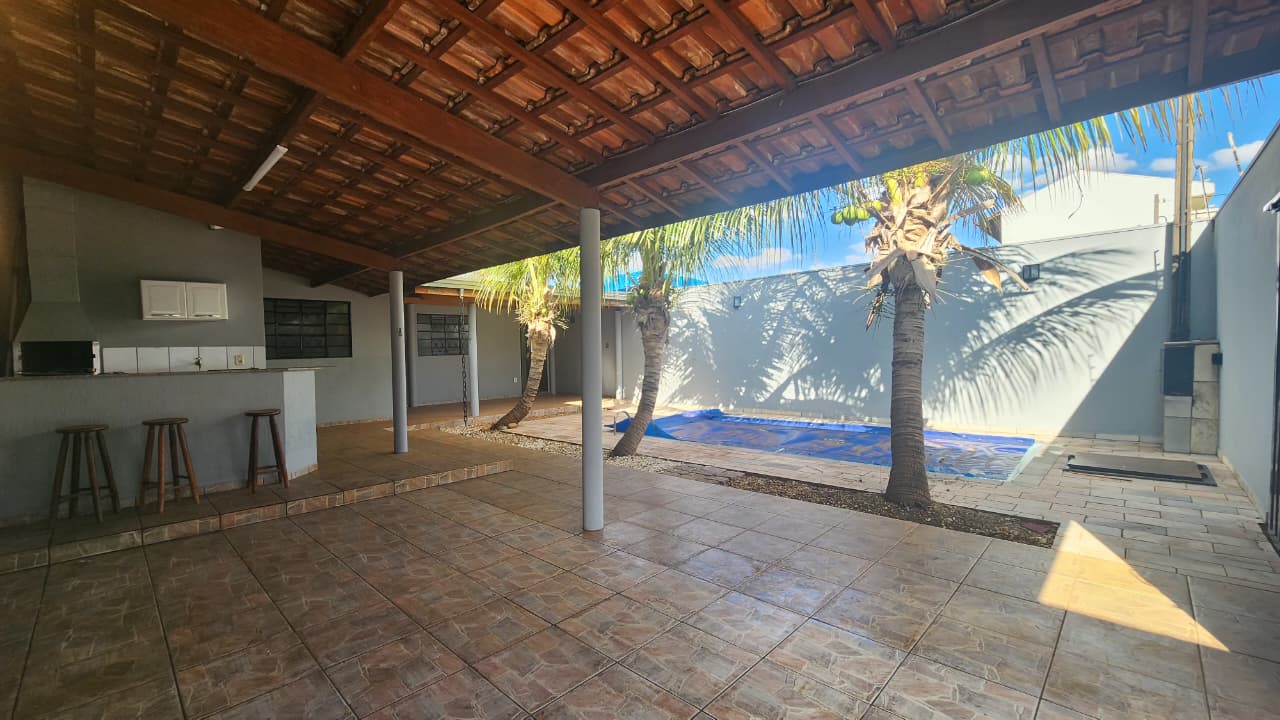 Imóvel residencial no bairro Jardim Alvorada, disponível para venda, contando com:01 suíte com ar condicionado, 02 dormitórios com ar condicionado, wc social, sala, cozinha, laje, piso frio, área de serviço, área de lazer com piscina e cascata, chuveirão e jardins. 01 wc social externo, balcão, pia, portão eletrônico, e placa solar.