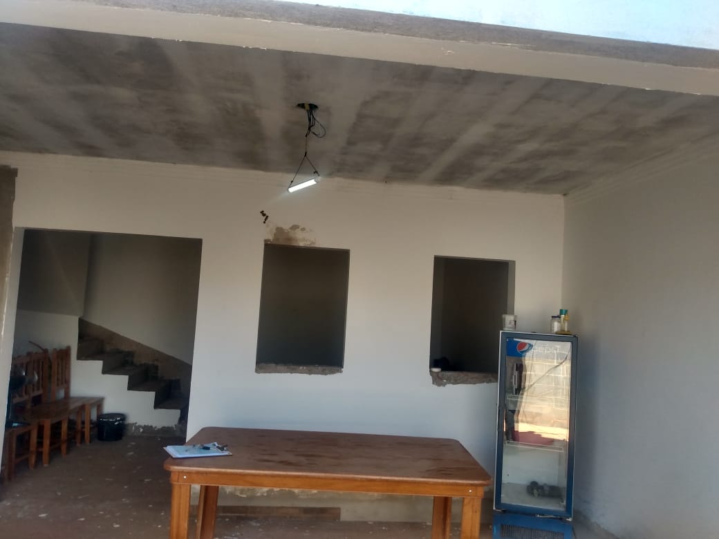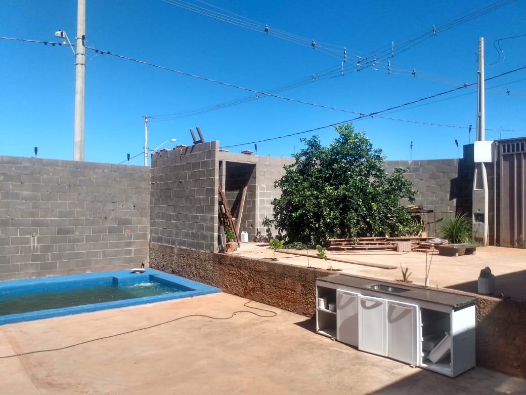 Inferior: sala, cozinha e piscina em fase de acabamento.