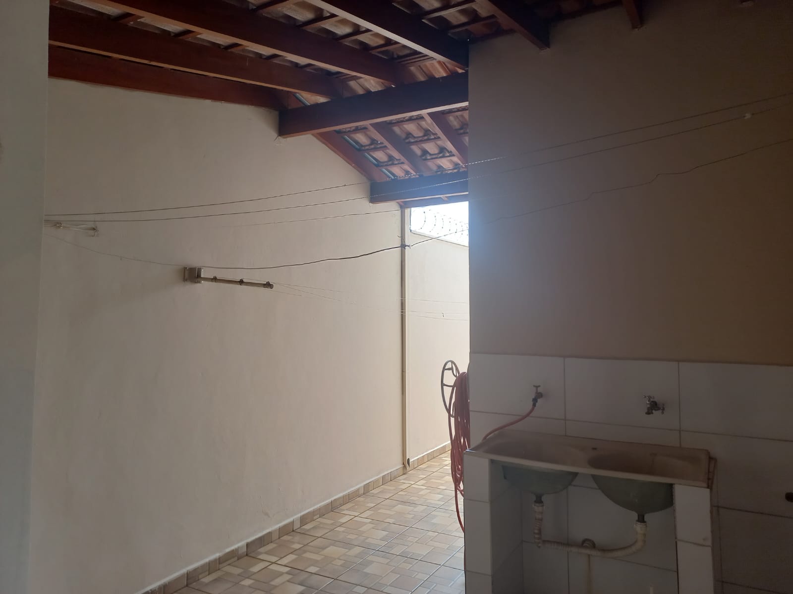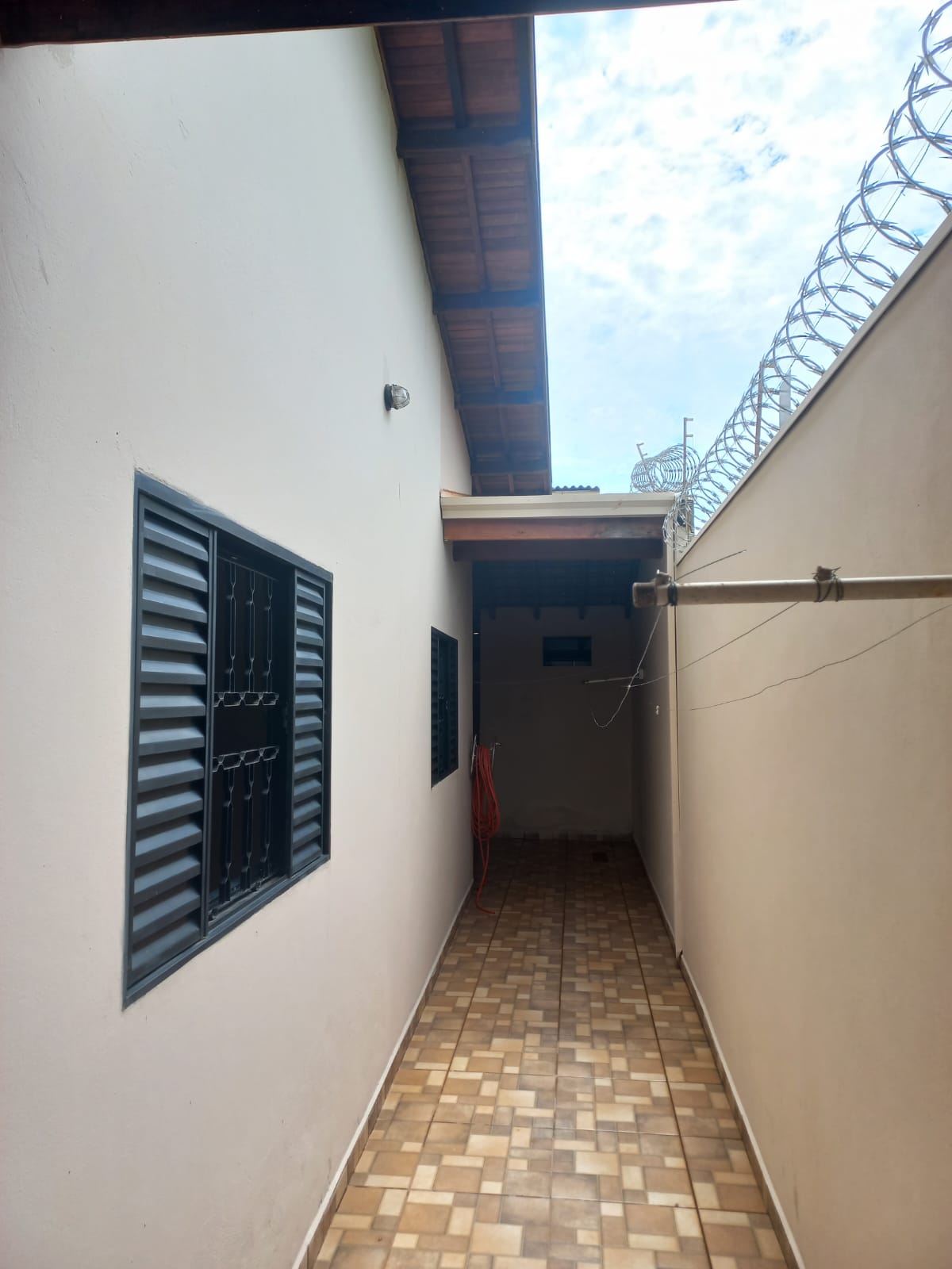 Descrição: 01 suite c/ jardim inverno, 02 dormitórios, 01 wc social, sala de jantar, sala de TV, cozinha c/ armários e cooktop, laje, piso frio, área de serviço coberta, despejo, 01 wc social, área de lazer com churrasqueira, pia, garagem para 03 carros, portão eletrônico, interfone, concertina, cerca elétrica.