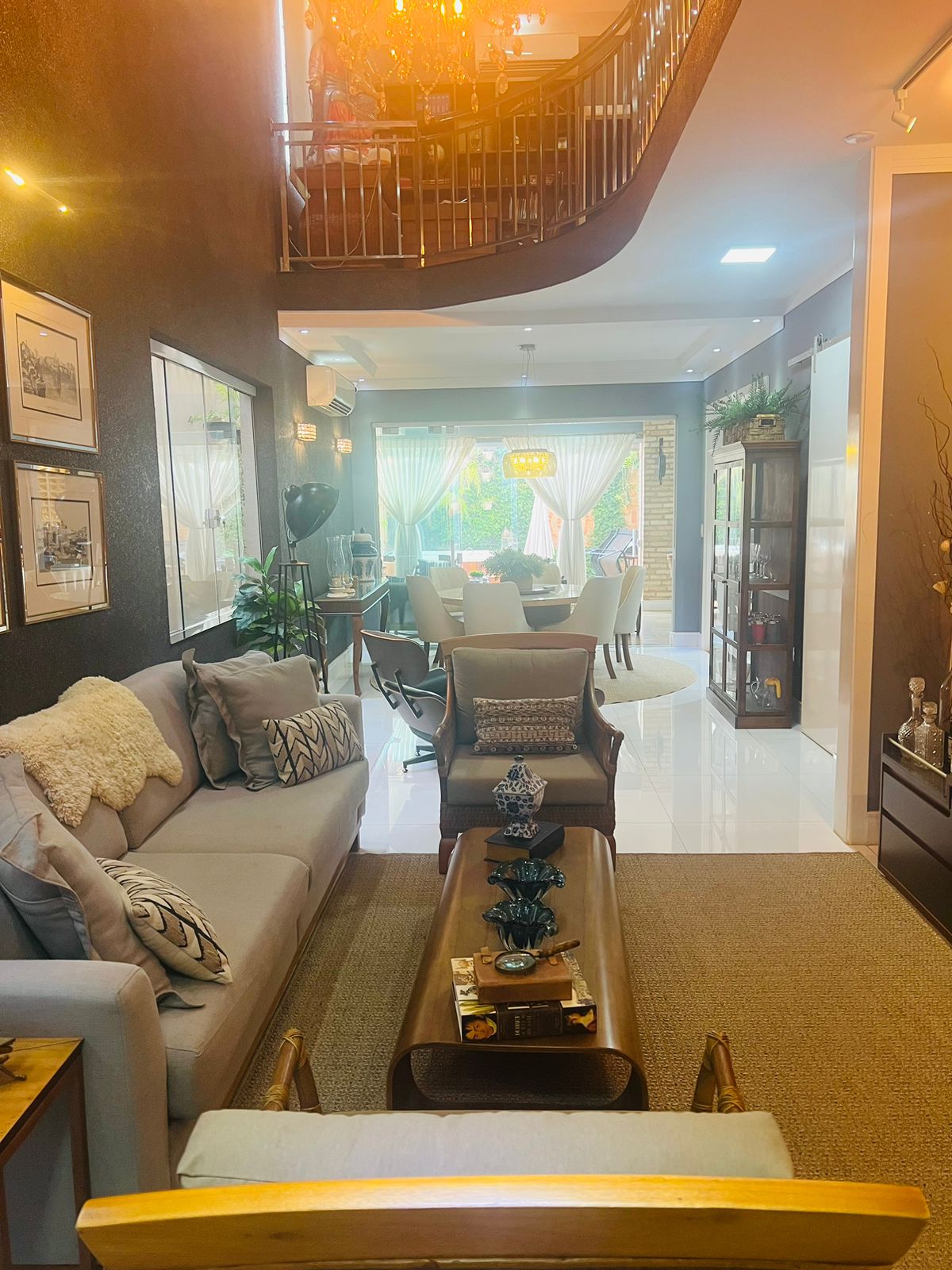 Inferior: Sala de visita c/ jardim inverno, 01 suíte, sala de jantar, cozinha com coifa, armários, sala de TV c/ blindex, área de lazer.