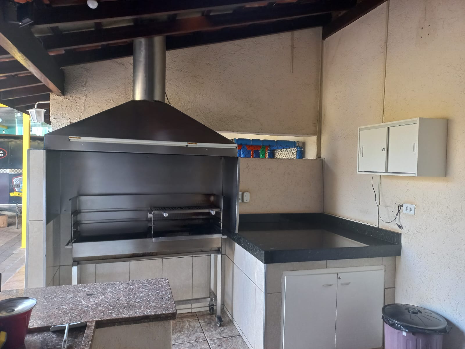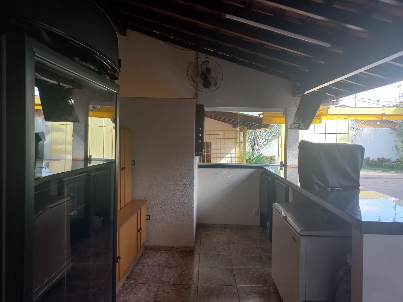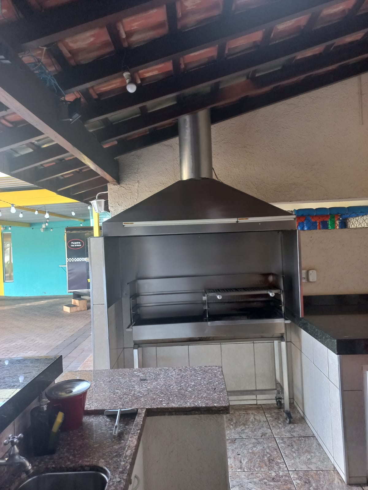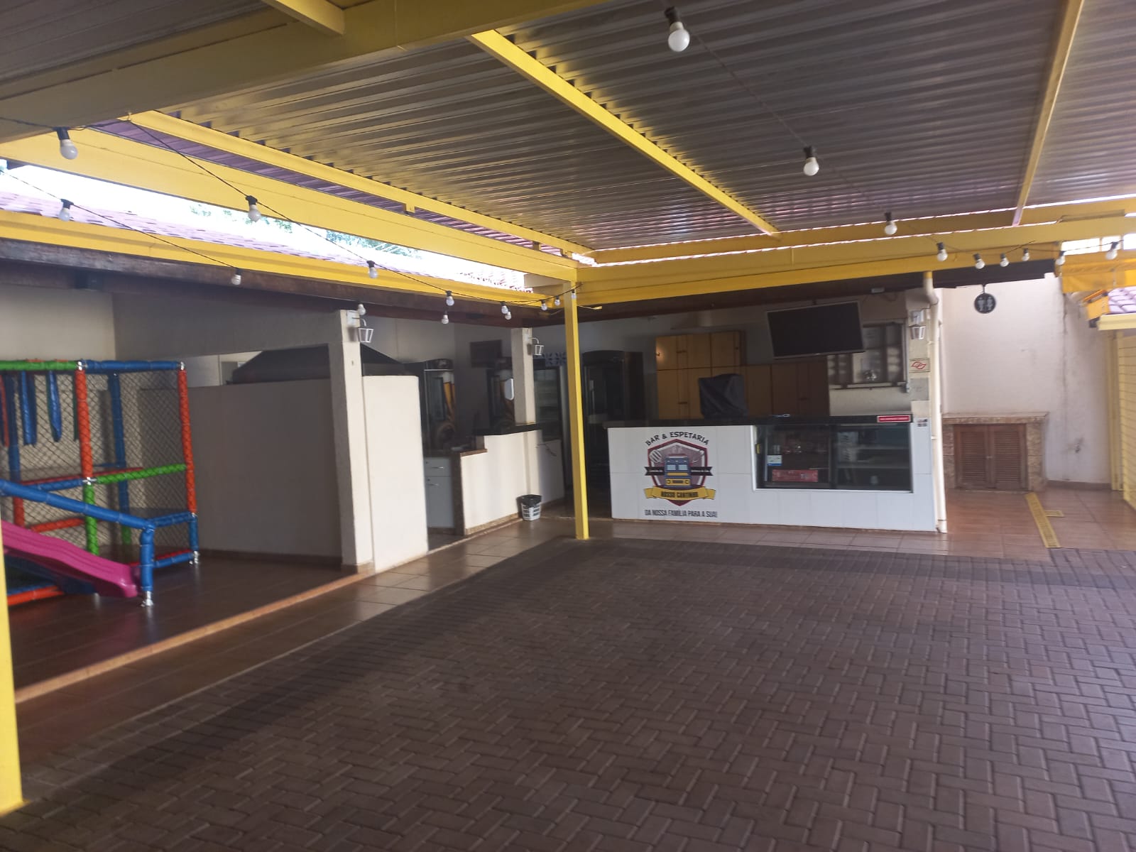 Descrição: Salão amplo, com 02 w.c. social, piso frio, ar condicionado, cozinha, escritório, hall de entrada, área externa com depósito, varanda do espaço kids, varanda, w.c. social, cobertura móvel do pátio.