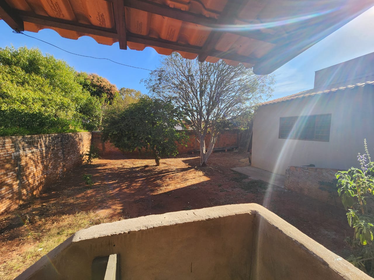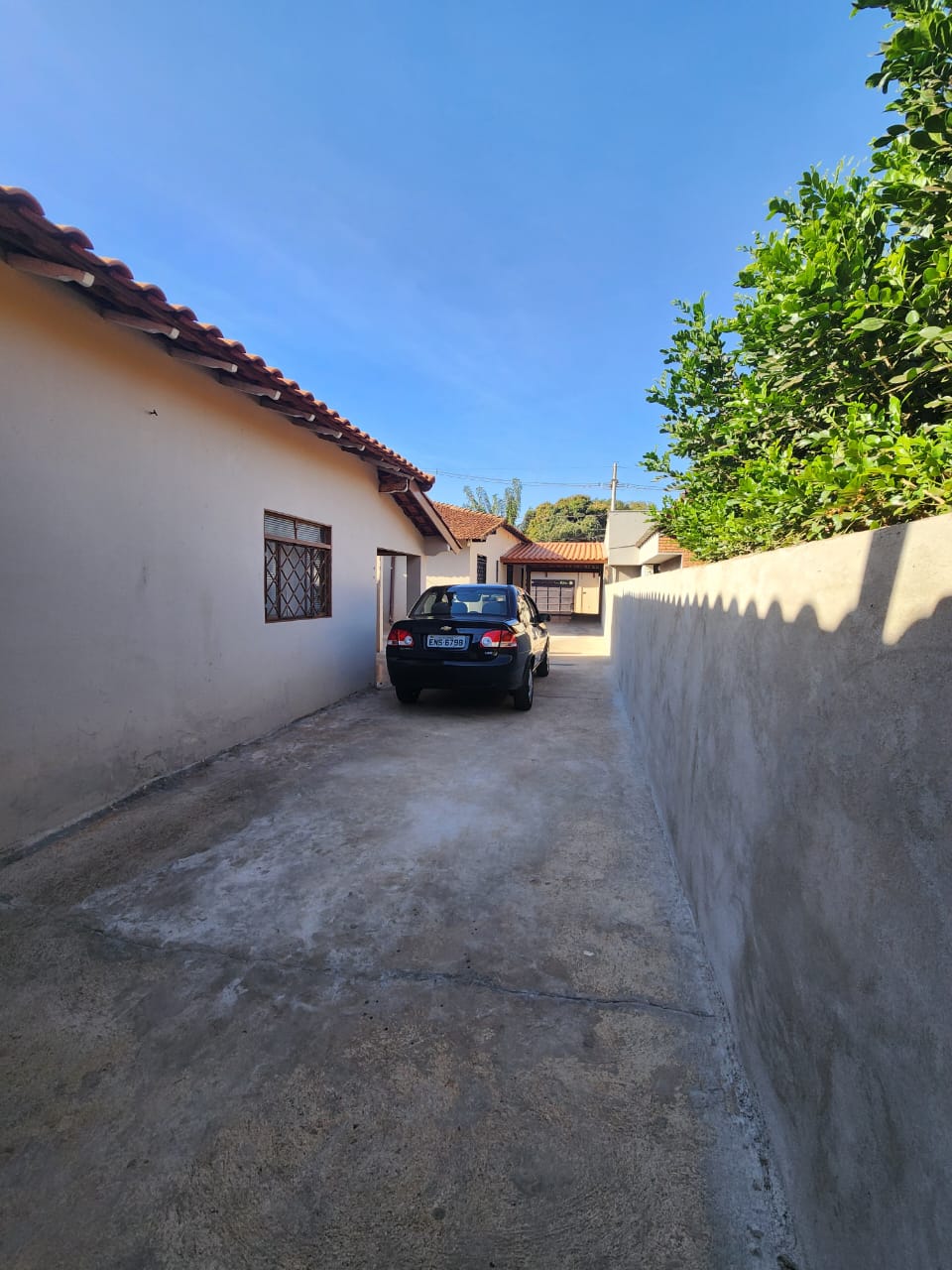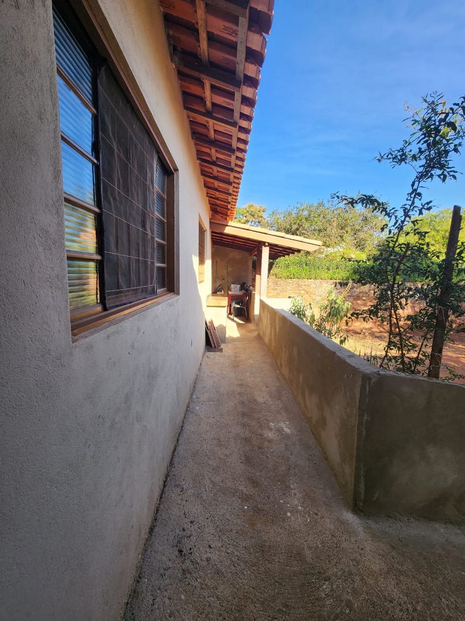 Externo: 01 wc social, 01 sala, despejo, quintal cimentado e terra, pés de frutas.