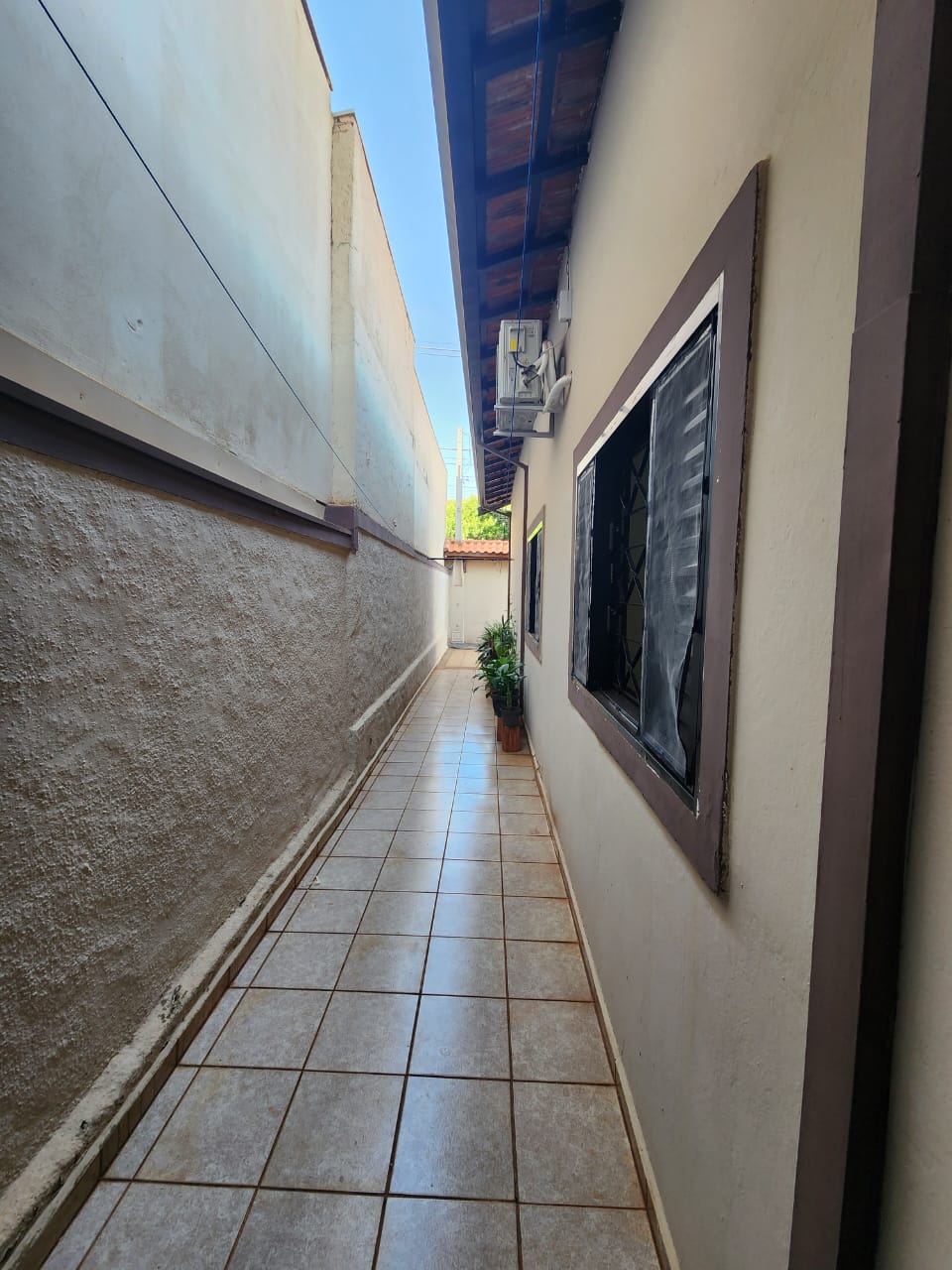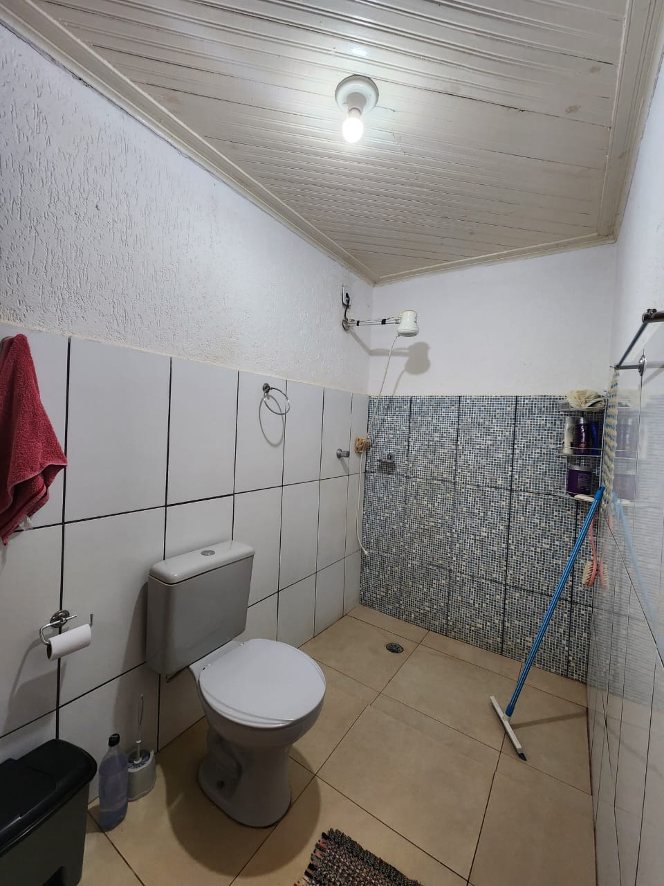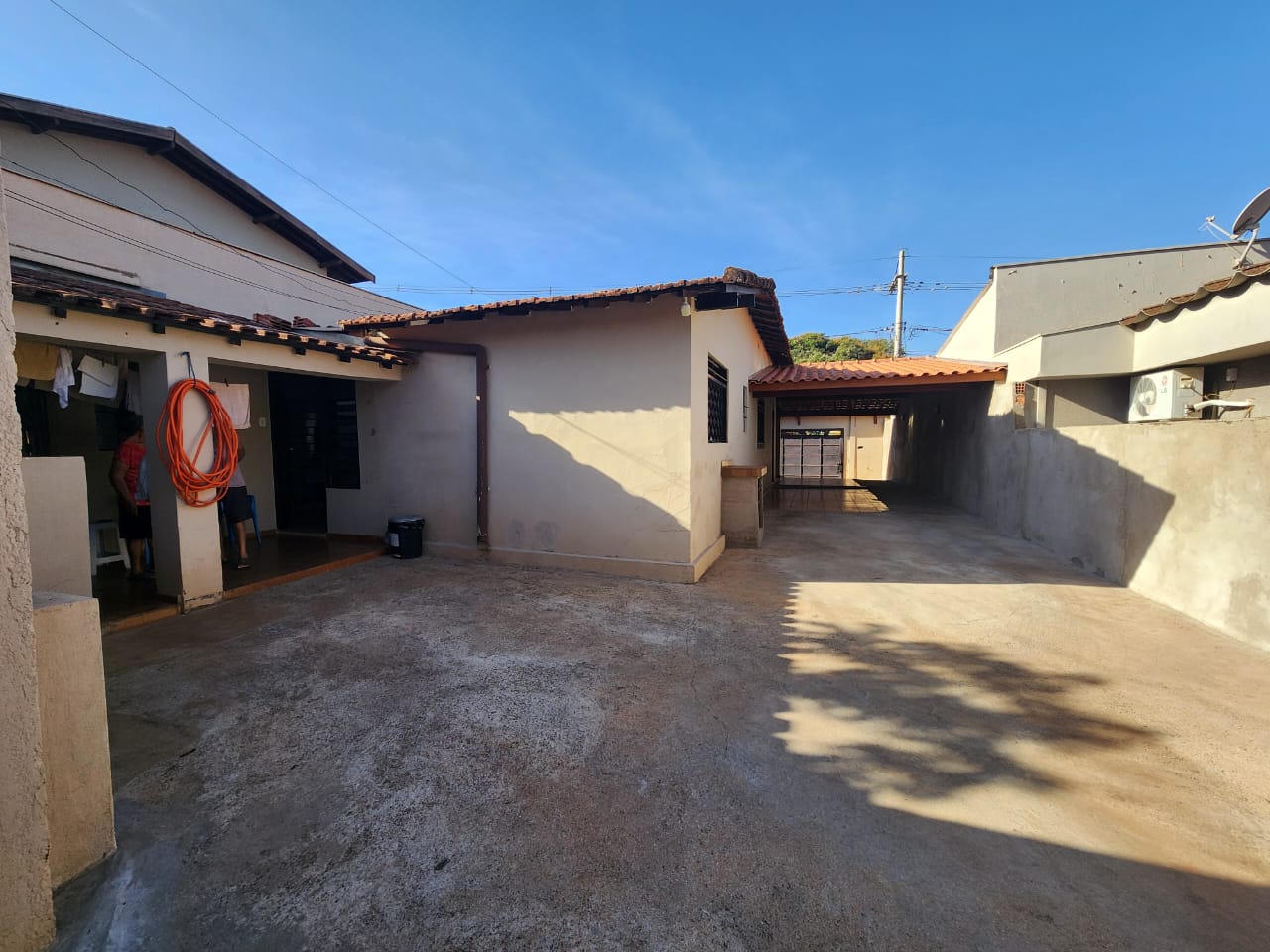 Externo: 01 wc social, 01 sala, despejo, quintal cimentado e terra, pés de frutas.