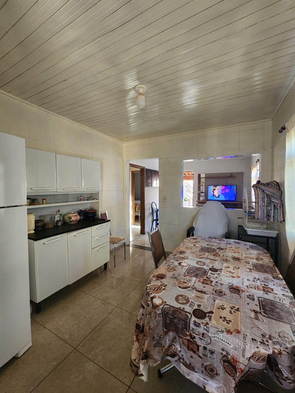 Casa 2: 02 dormitórios, 01 wc social, sala, copa, cozinha, área de serviço coberta, forro, piso frio.