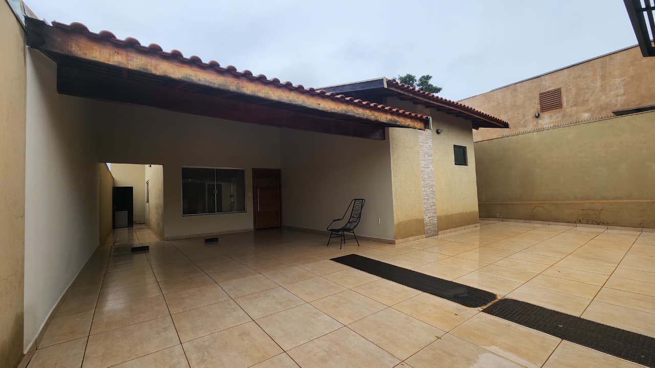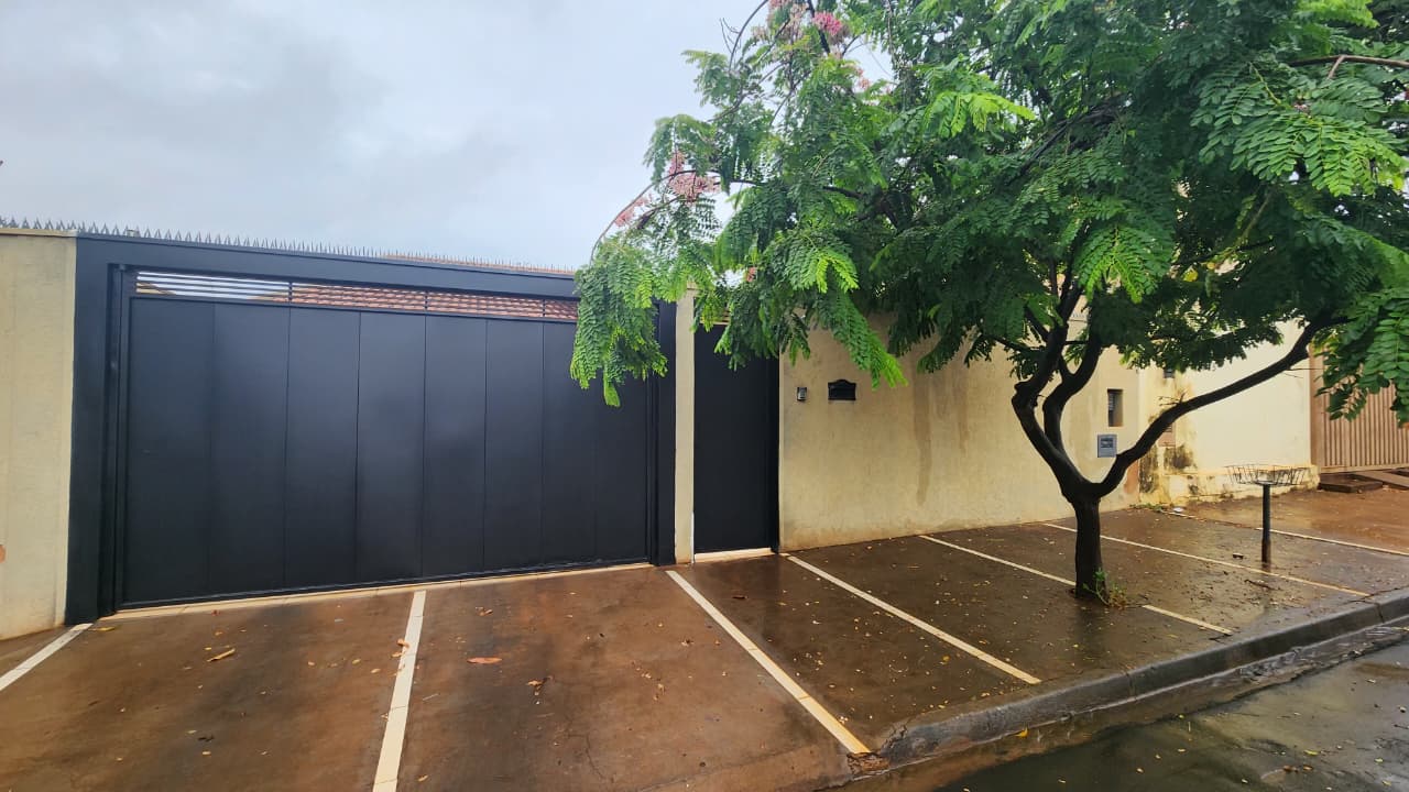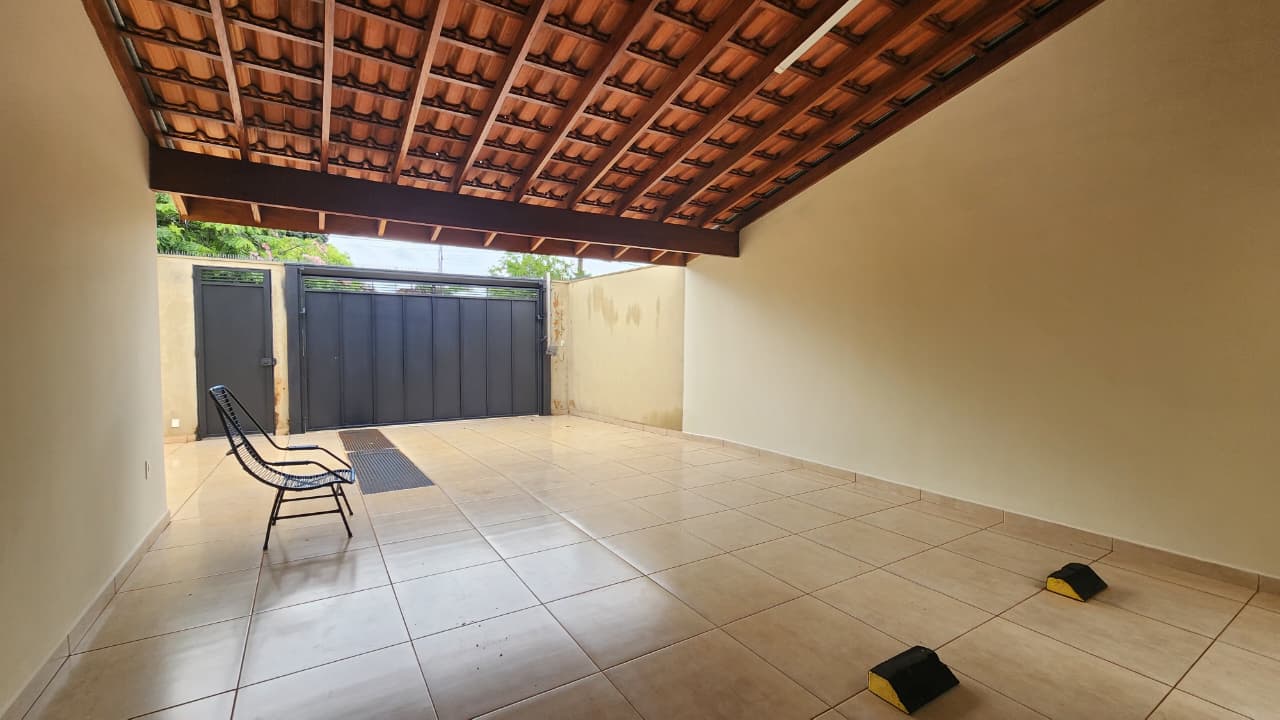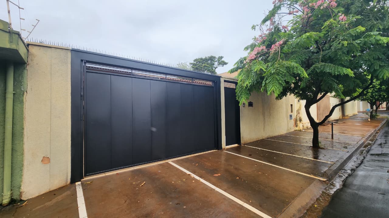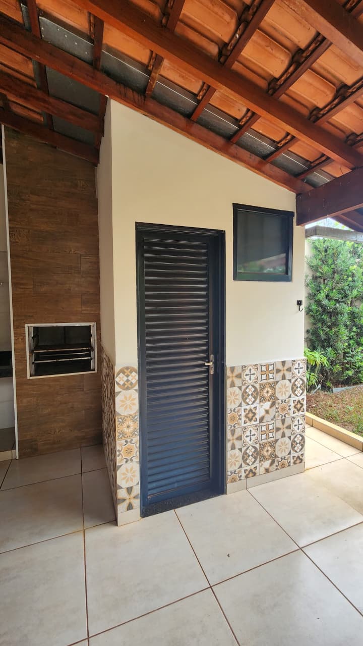 área de lazer: com churrasqueira, bancada, wc social, área de serviço, quintal com grama e jardim, garagem para 03 carros e portão elétrico.