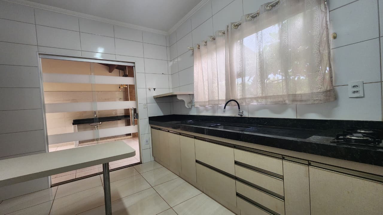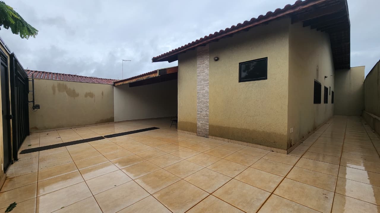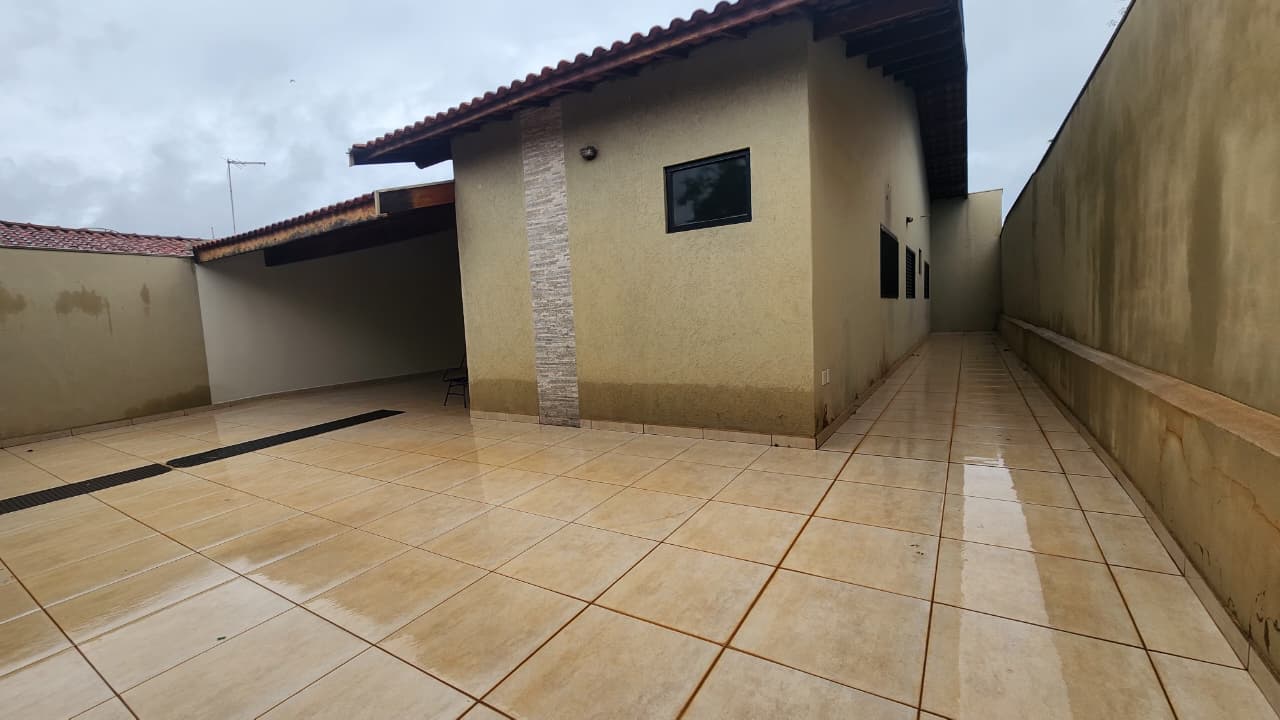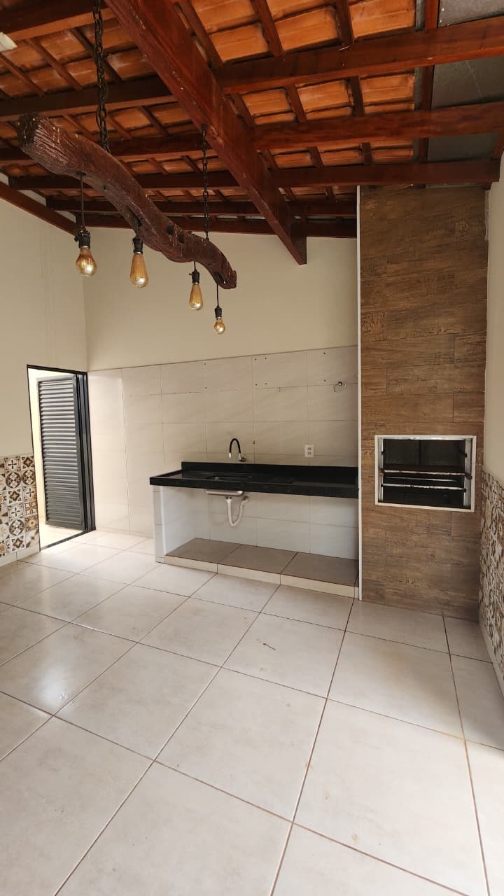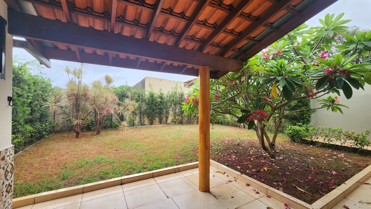 área de lazer: com churrasqueira, bancada, wc social, área de serviço, quintal com grama e jardim, garagem para 03 carros e portão elétrico.