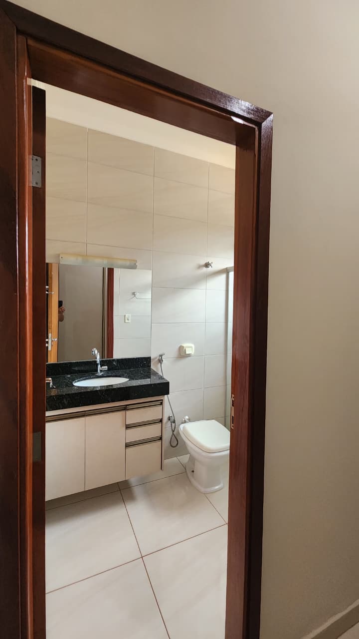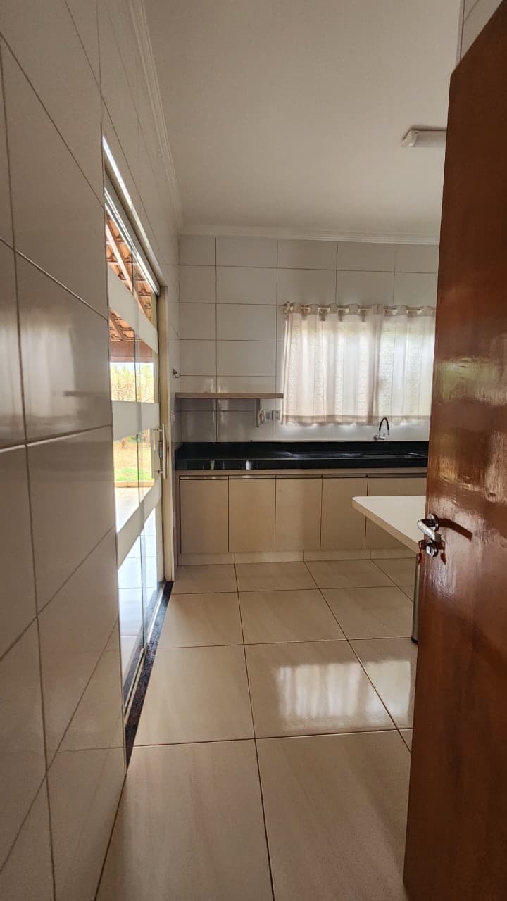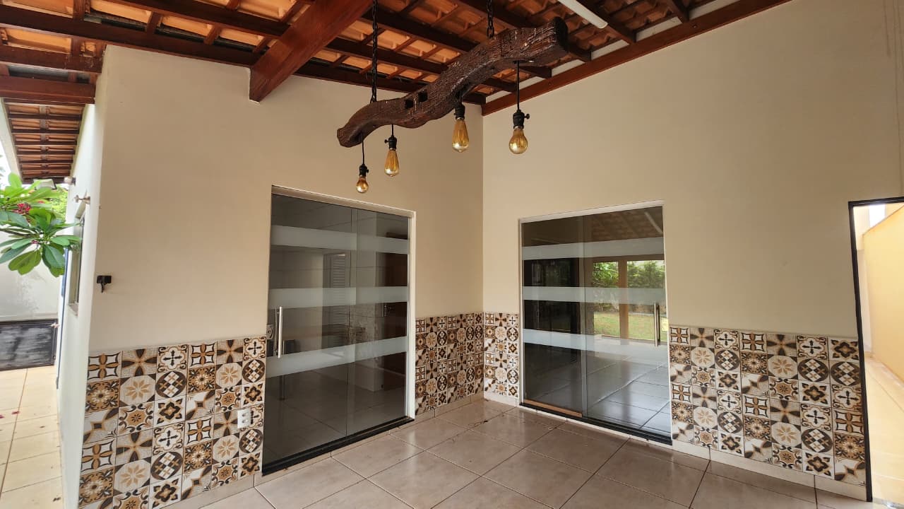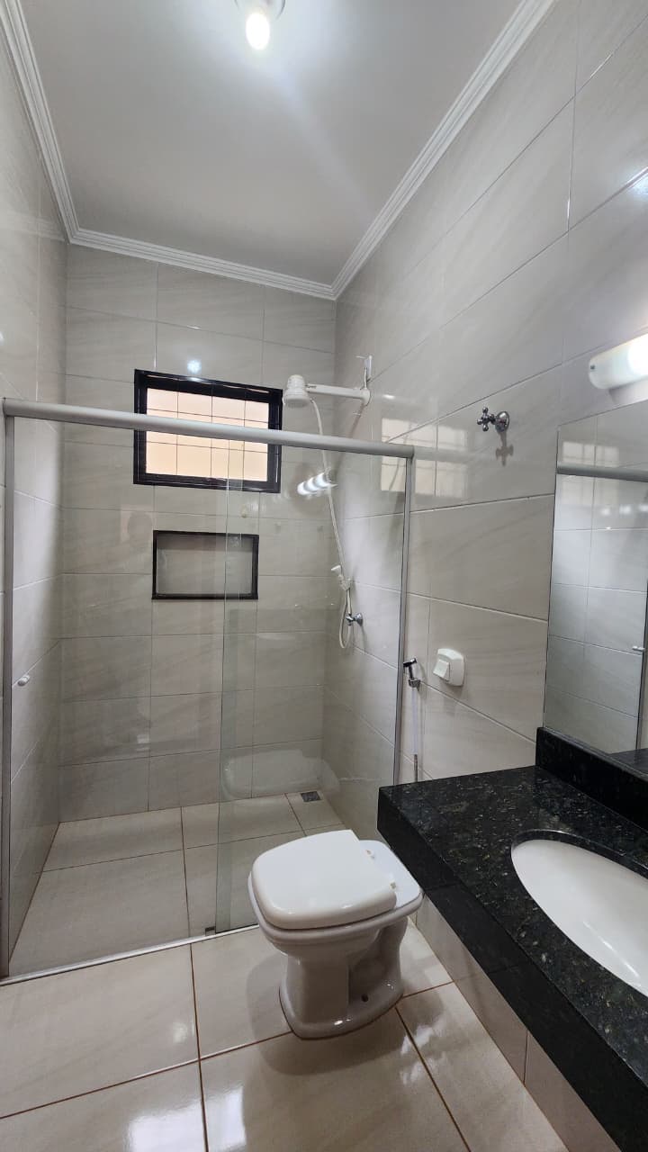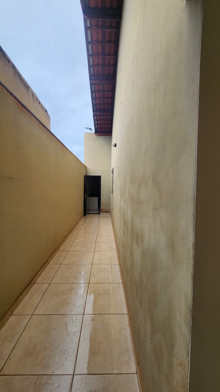 área de lazer: com churrasqueira, bancada, wc social, área de serviço, quintal com grama e jardim, garagem para 03 carros e portão elétrico.
