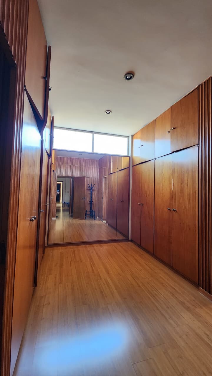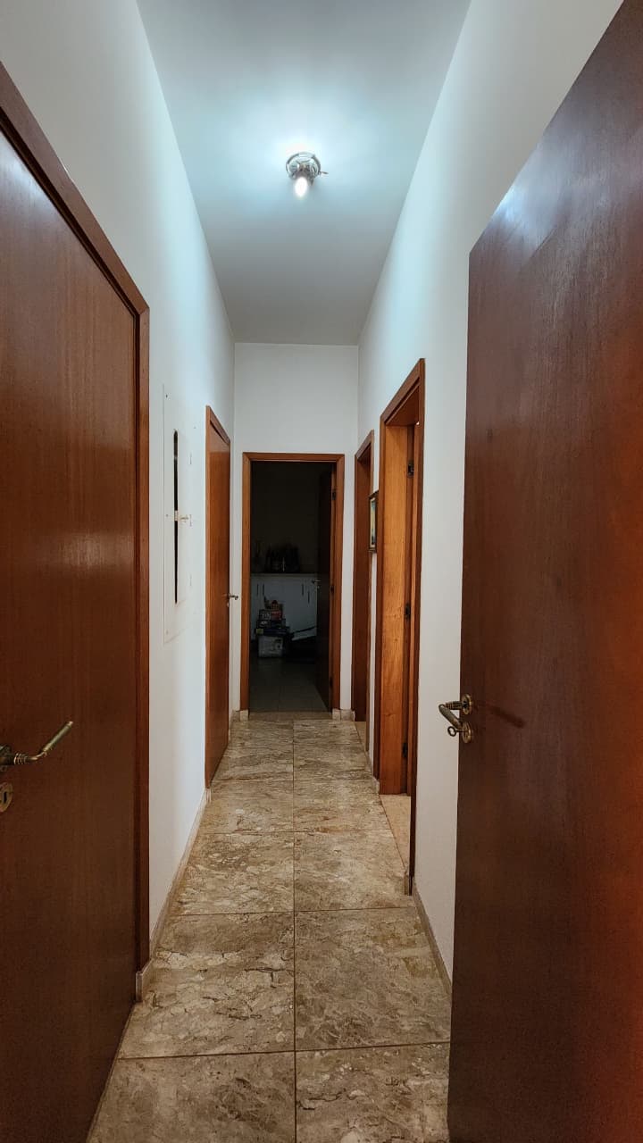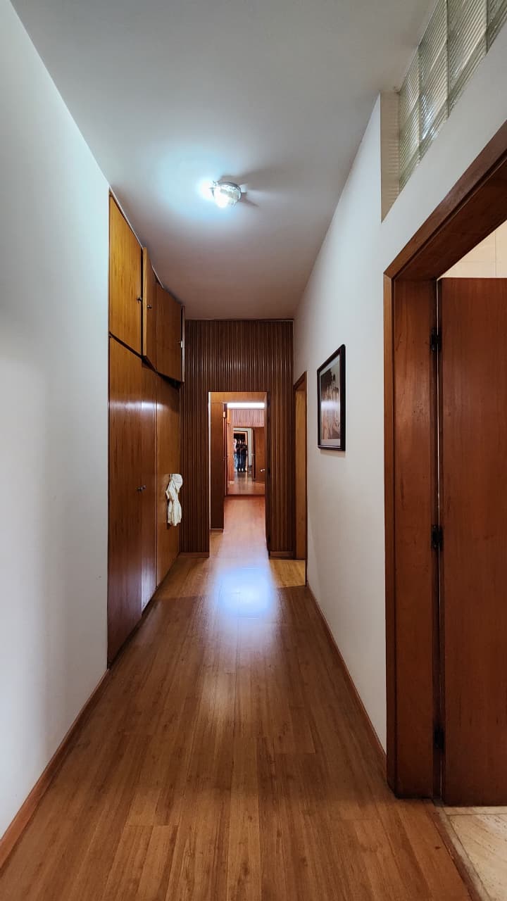 Corredor, lavabo, hall de entrada, sala de tv com armários.