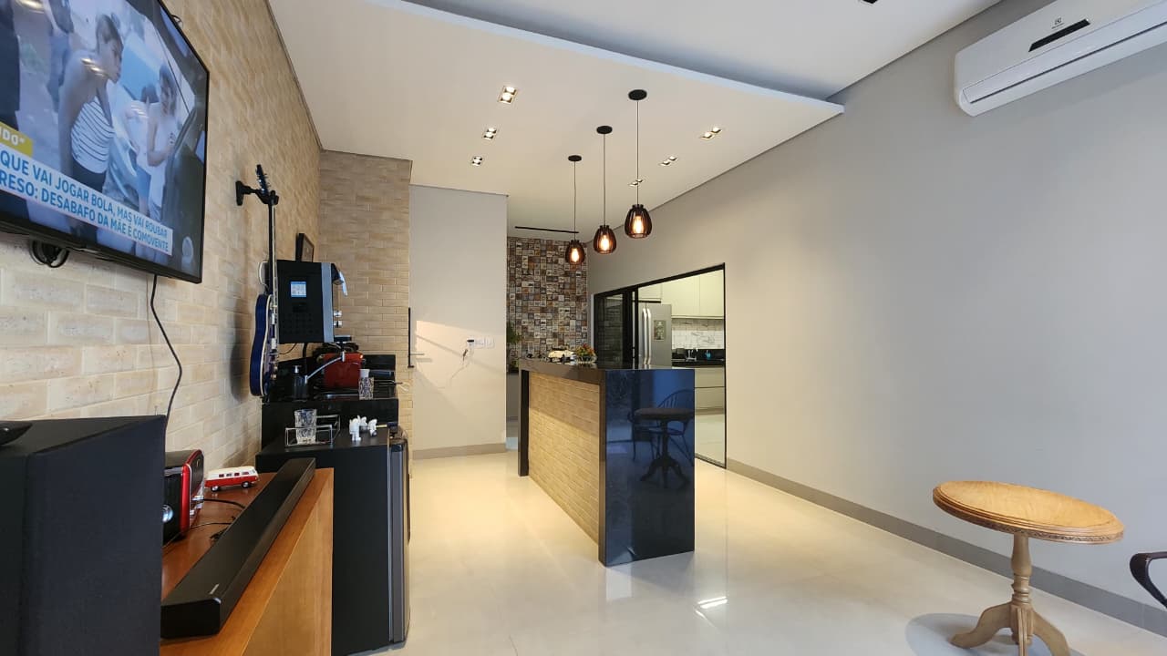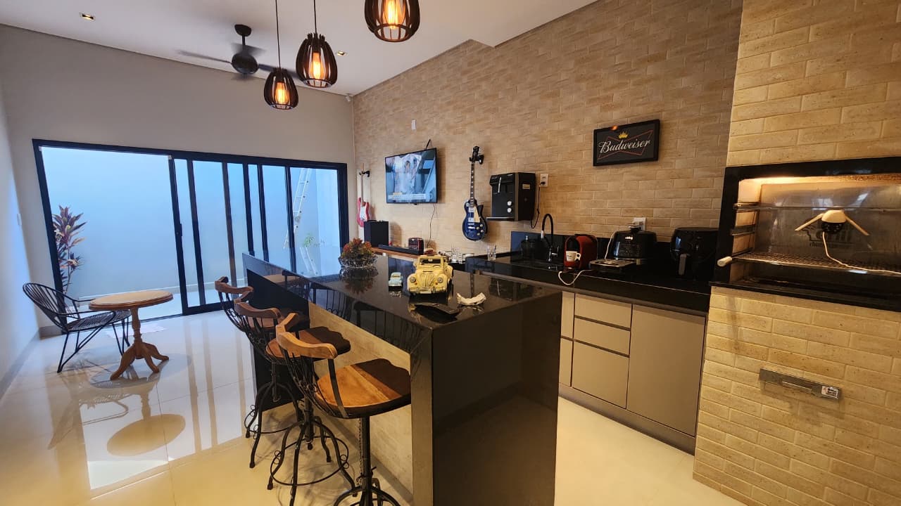 Descriçao: 01 suite com armarios planejados, 01 dormitorio, wc social, sala, sala de jantar com cozinha conjugada, area gourmet com churrasqueira, area de serviço coberta garagem para 02 carros portao eletronico