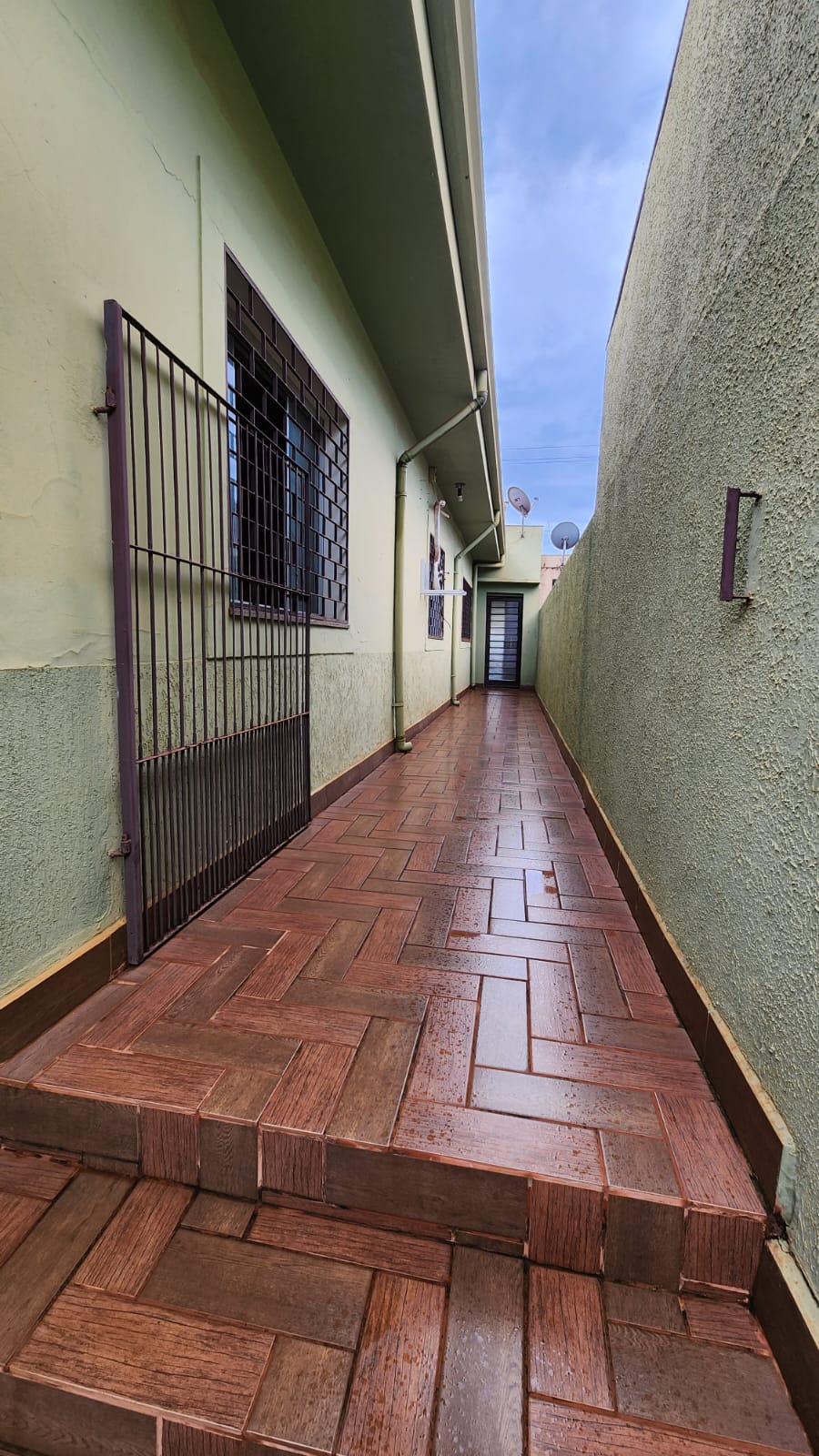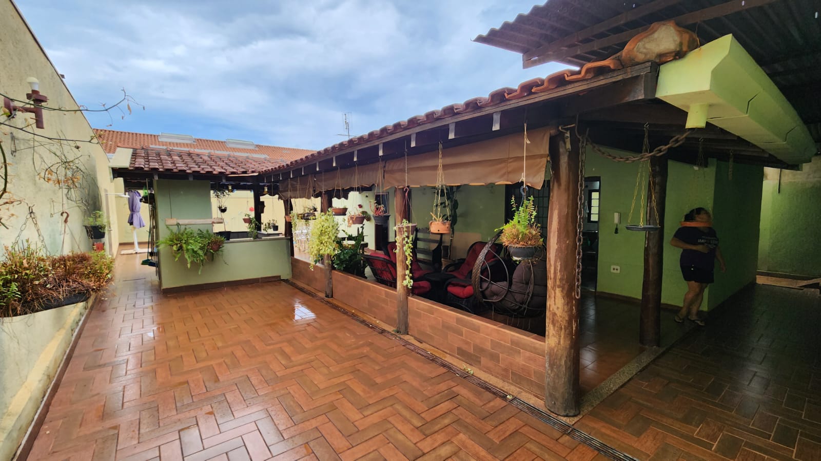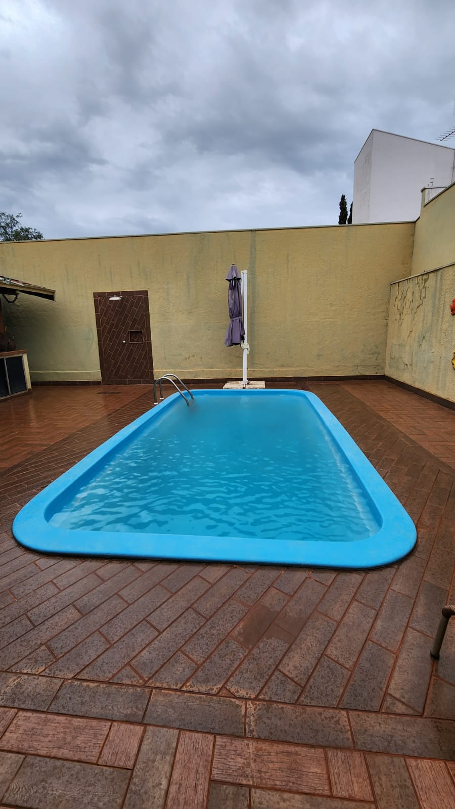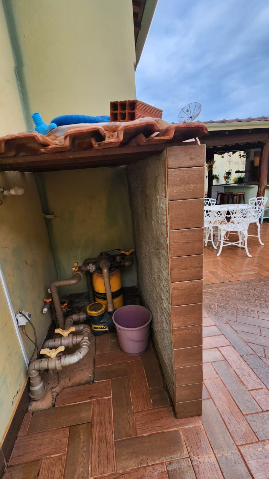 Parte externo: 01 dormitório, despejo, 01 w.c social, laje, piso frio, área de serviço coberta, área de lazer com piscina, balcão, corredor lateral, garagem vários carros, cerca elétrica, portão elétrico.
