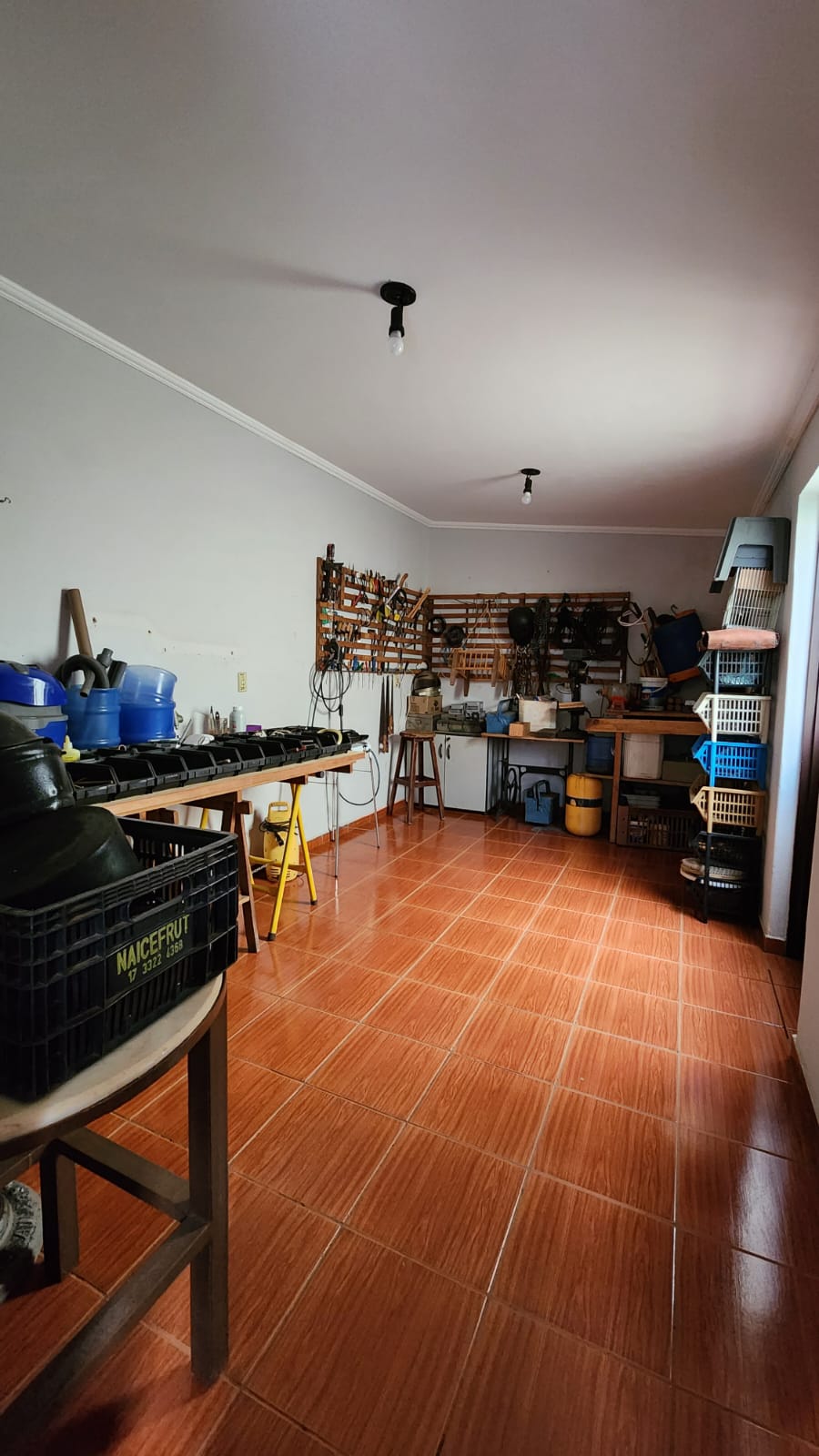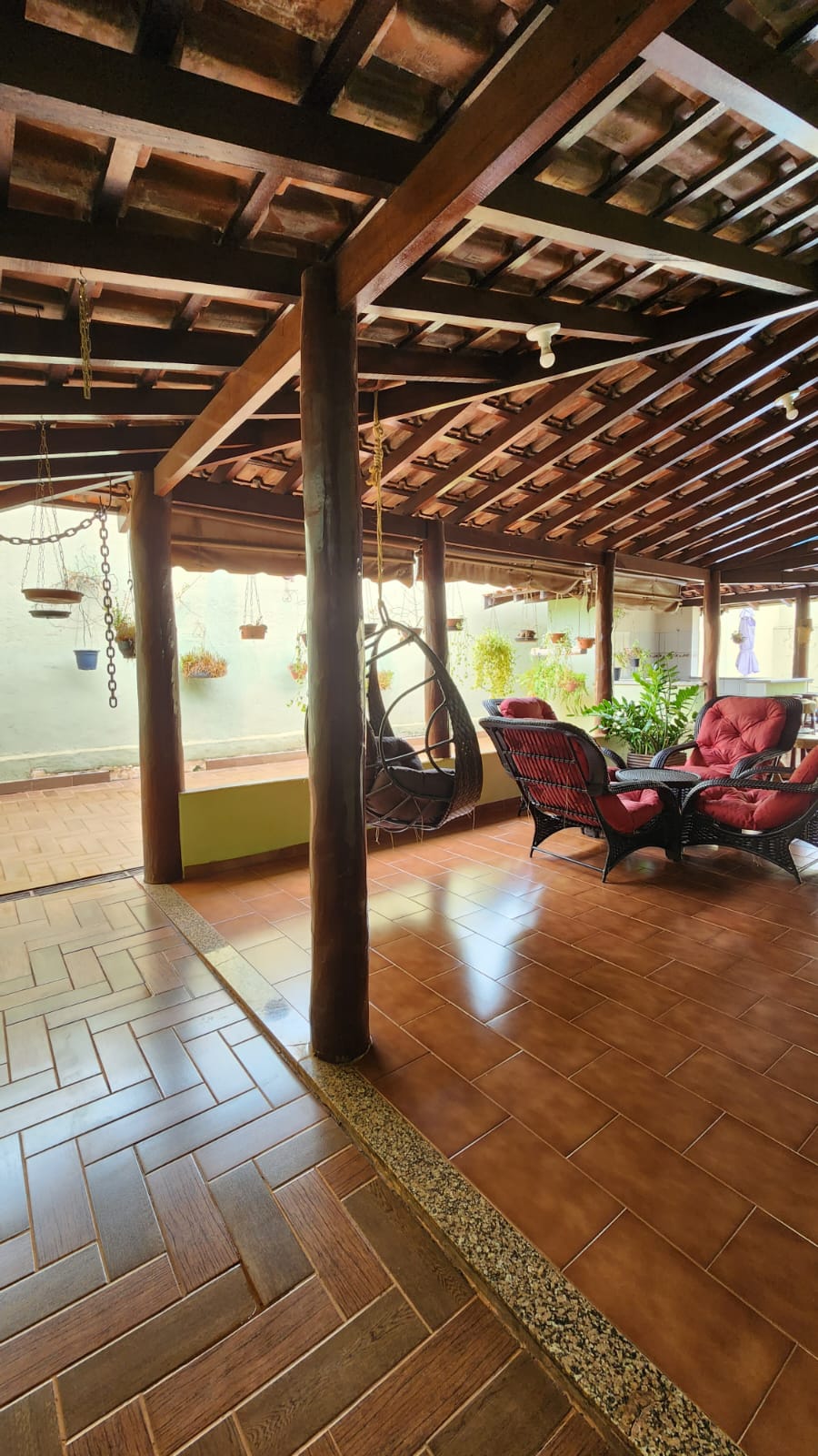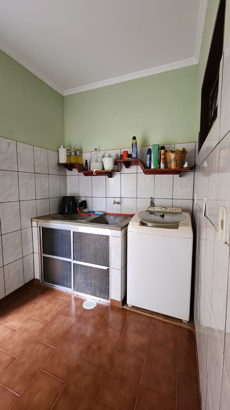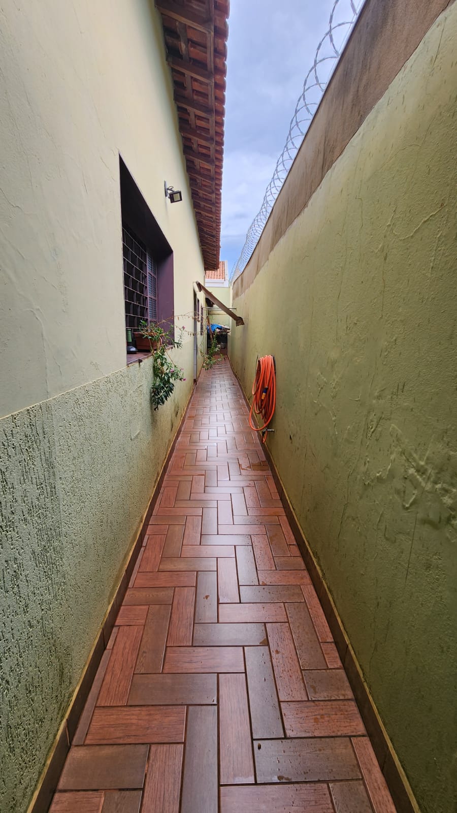 Parte externo: 01 dormitório, despejo, 01 w.c social, laje, piso frio, área de serviço coberta, área de lazer com piscina, balcão, corredor lateral, garagem vários carros, cerca elétrica, portão elétrico.