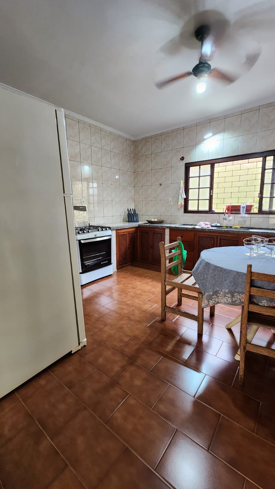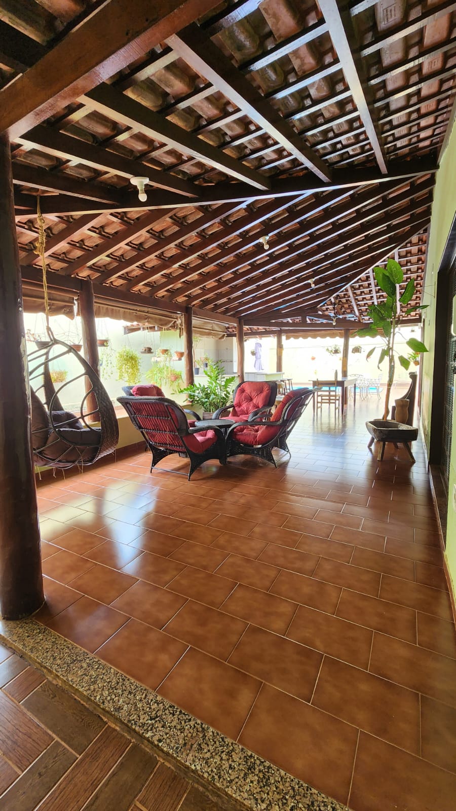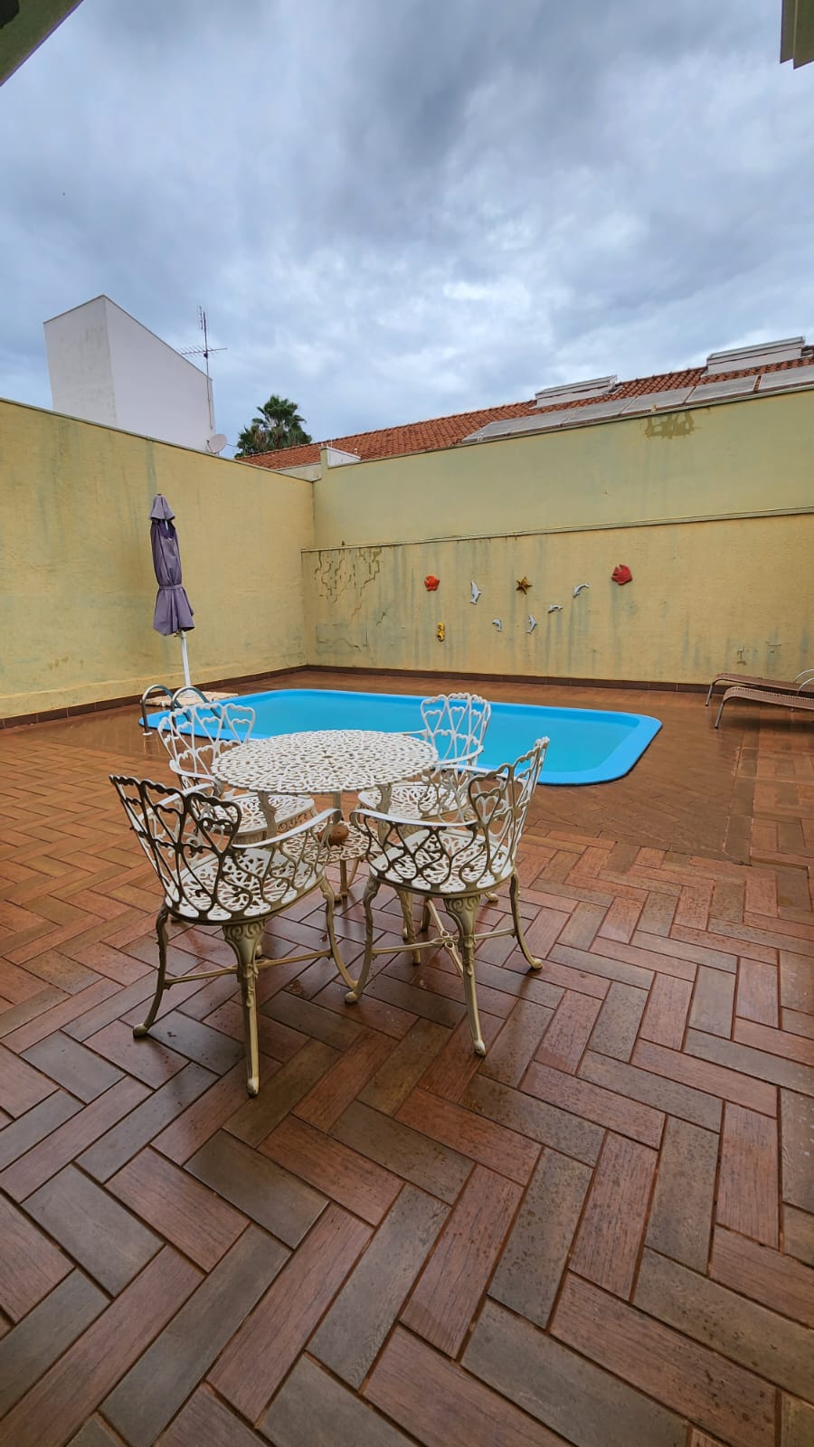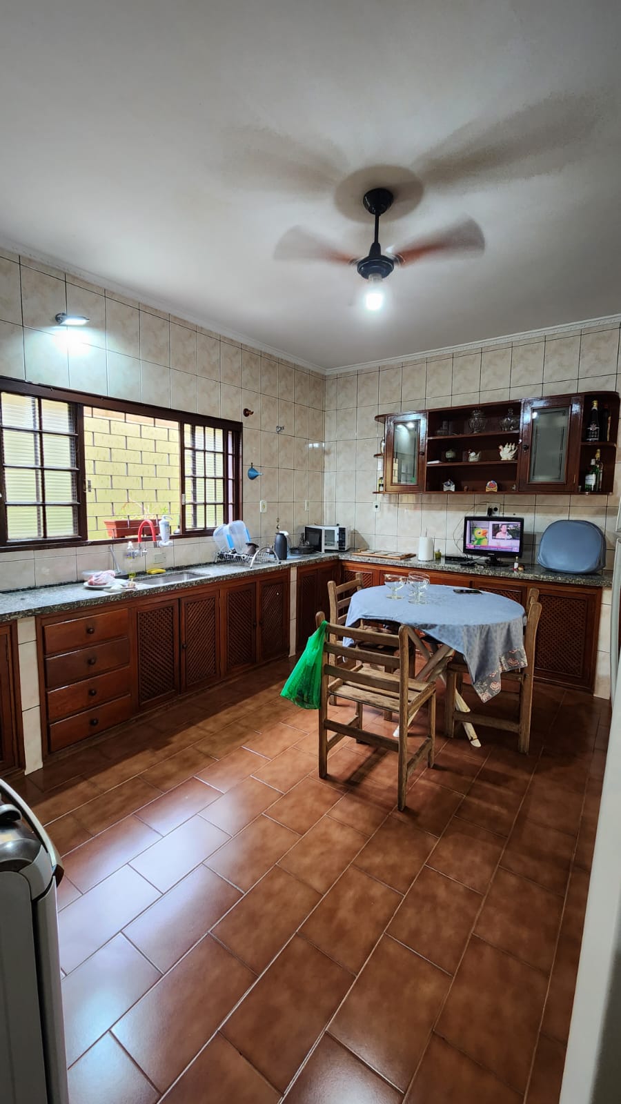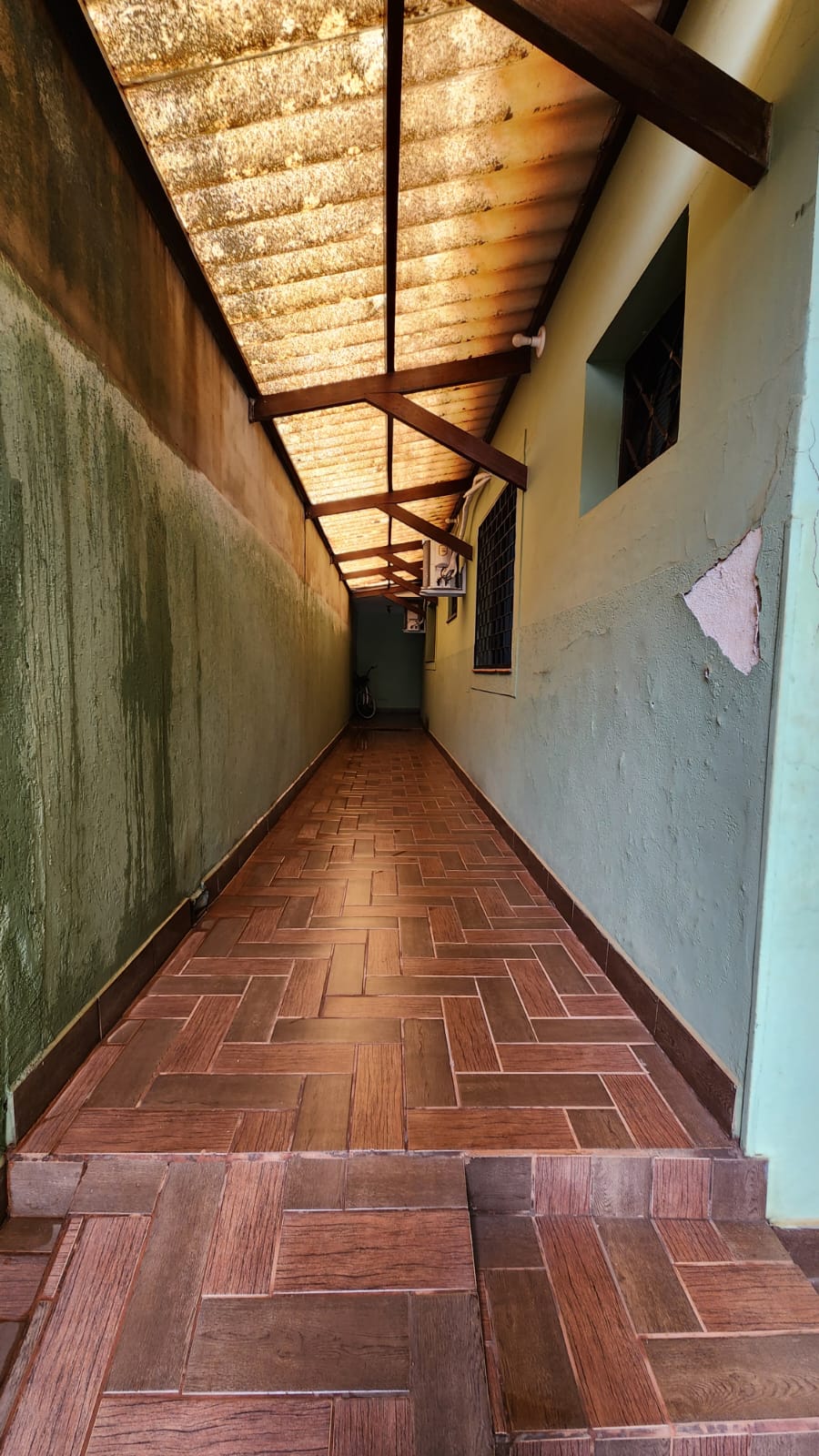 Parte externo: 01 dormitório, despejo, 01 w.c social, laje, piso frio, área de serviço coberta, área de lazer com piscina, balcão, corredor lateral, garagem vários carros, cerca elétrica, portão elétrico.