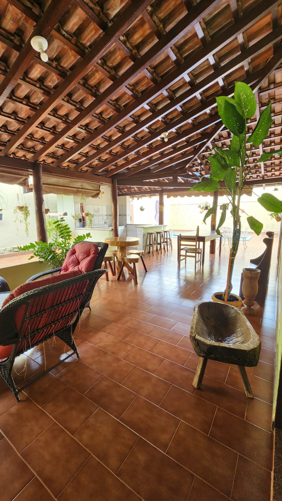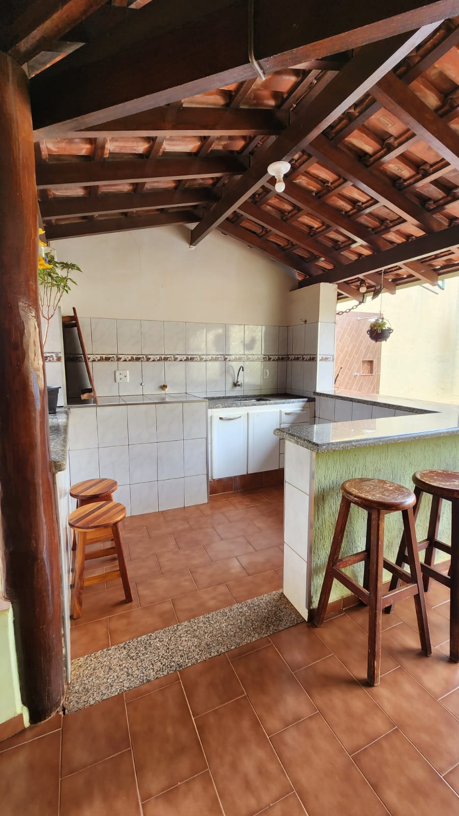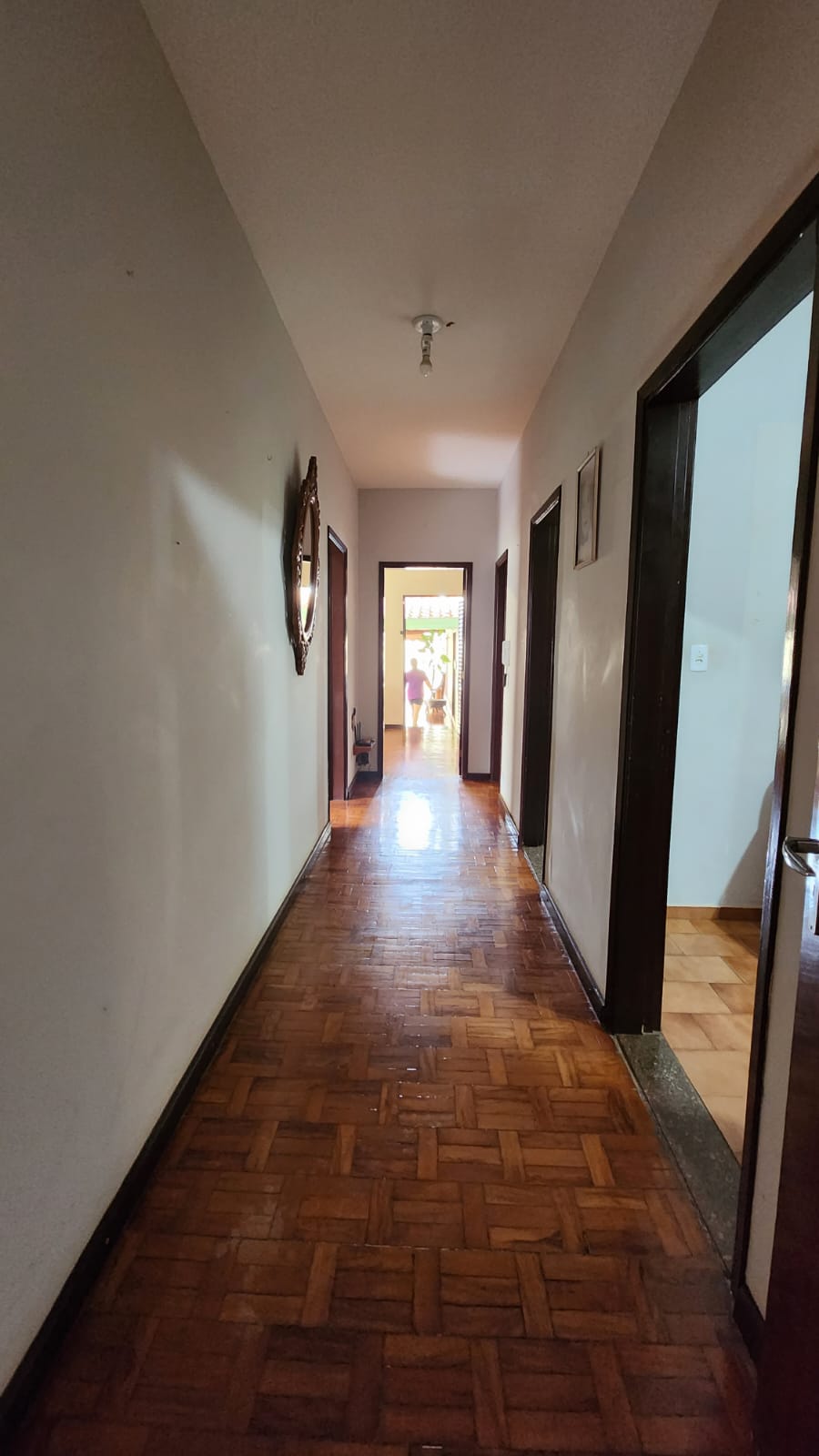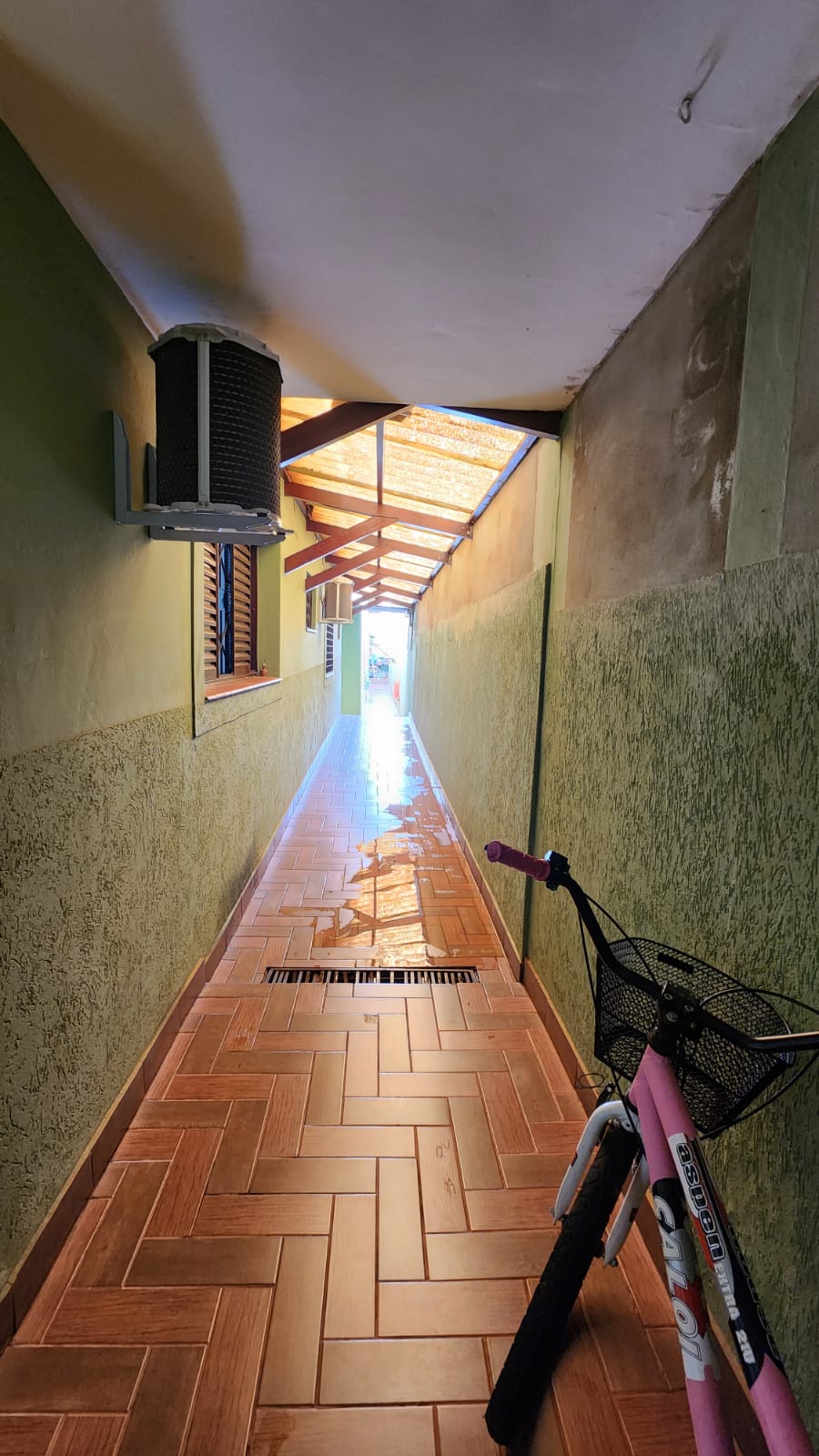 Parte externo: 01 dormitório, despejo, 01 w.c social, laje, piso frio, área de serviço coberta, área de lazer com piscina, balcão, corredor lateral, garagem vários carros, cerca elétrica, portão elétrico.