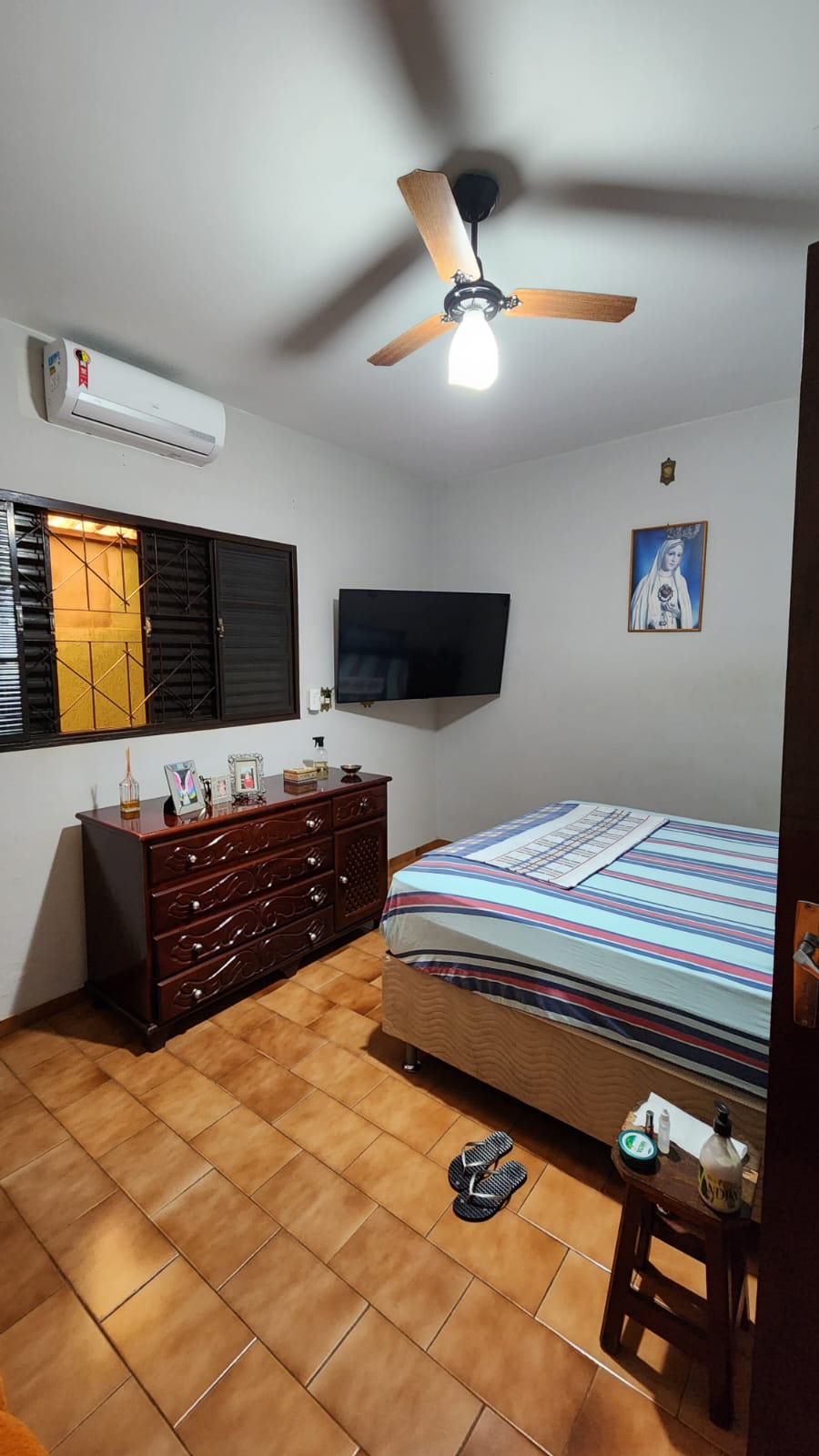 Imóvel residencial no bairro Primavera, disponível para venda, contando com 01 suíte com guarda roupa, 02 dormitórios com guarda roupa, 01 dormitórios, 01 w.c social, sala visita, sala estar, sala TV, cozinha com dispensa e armários